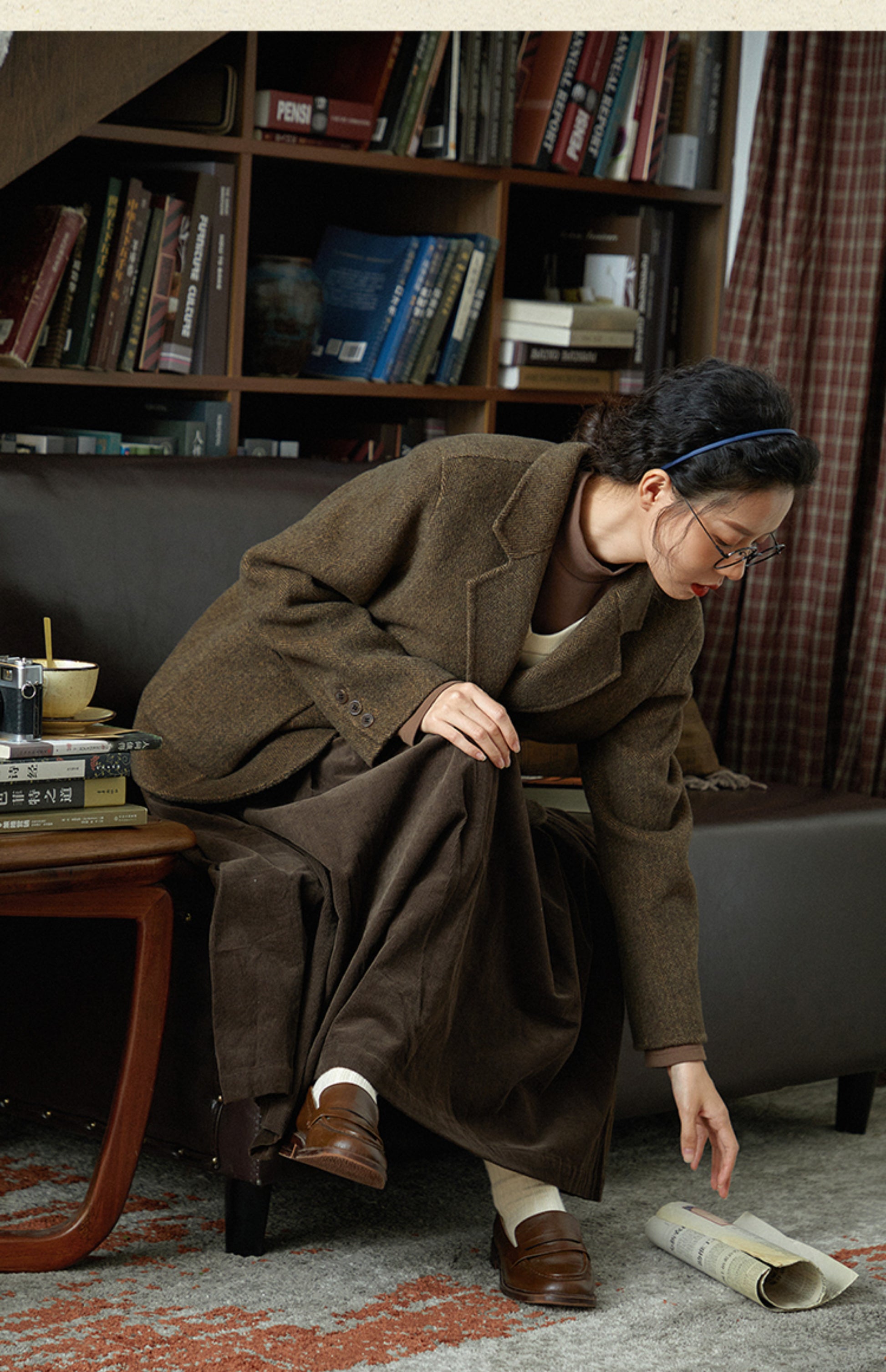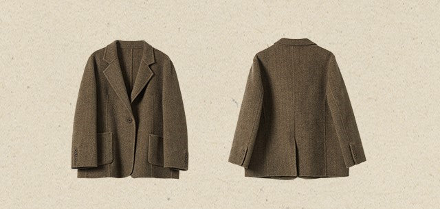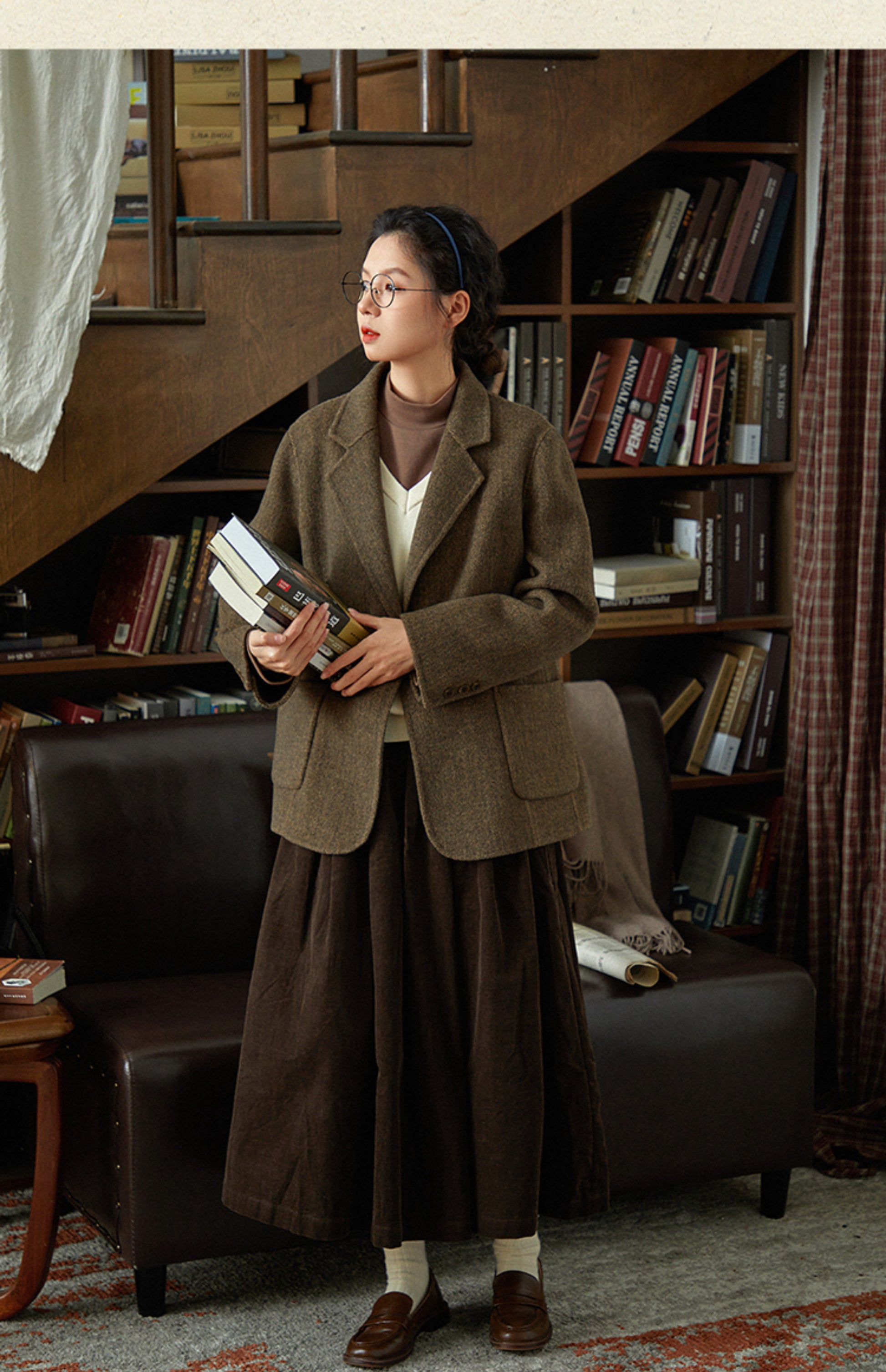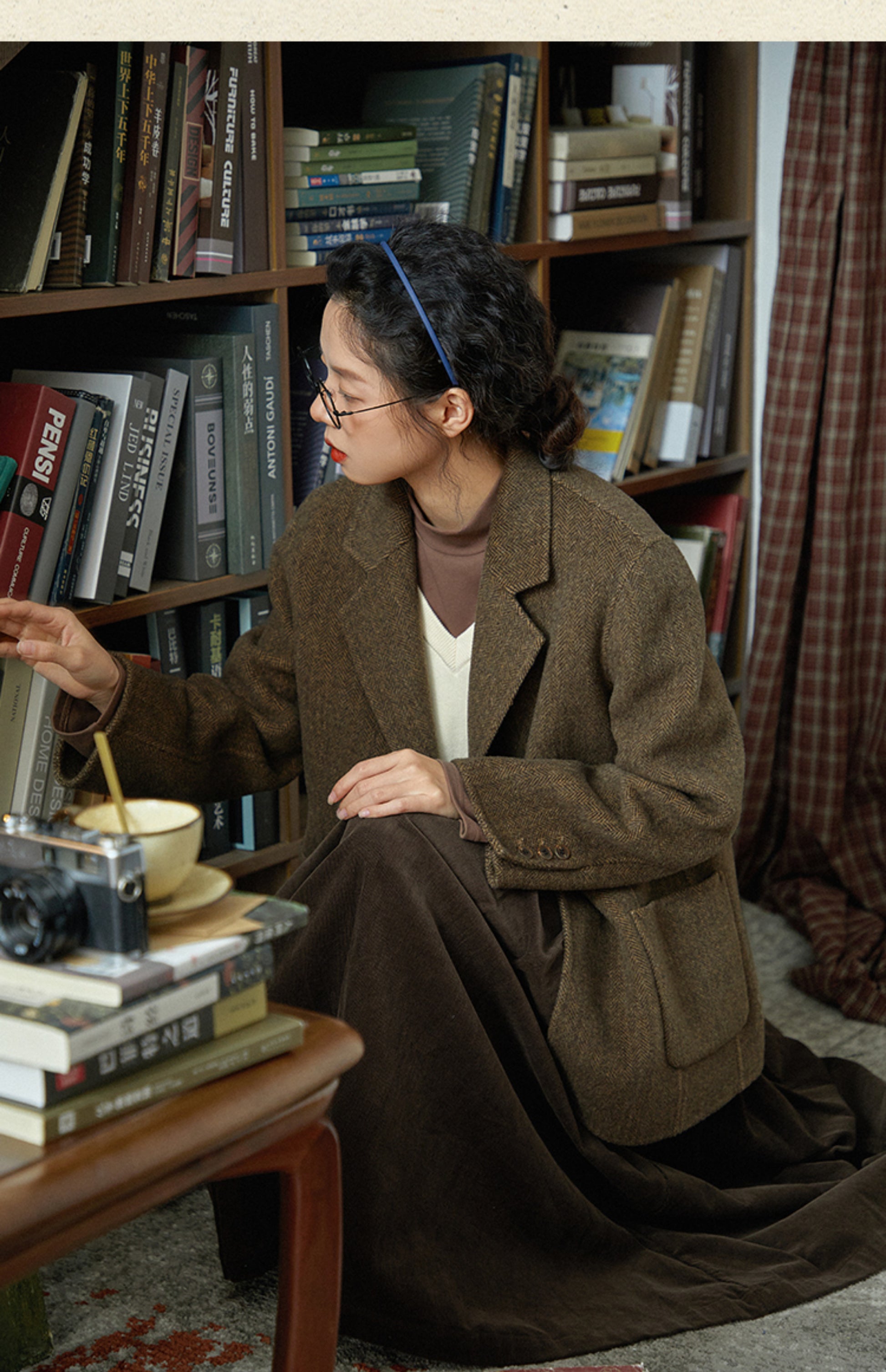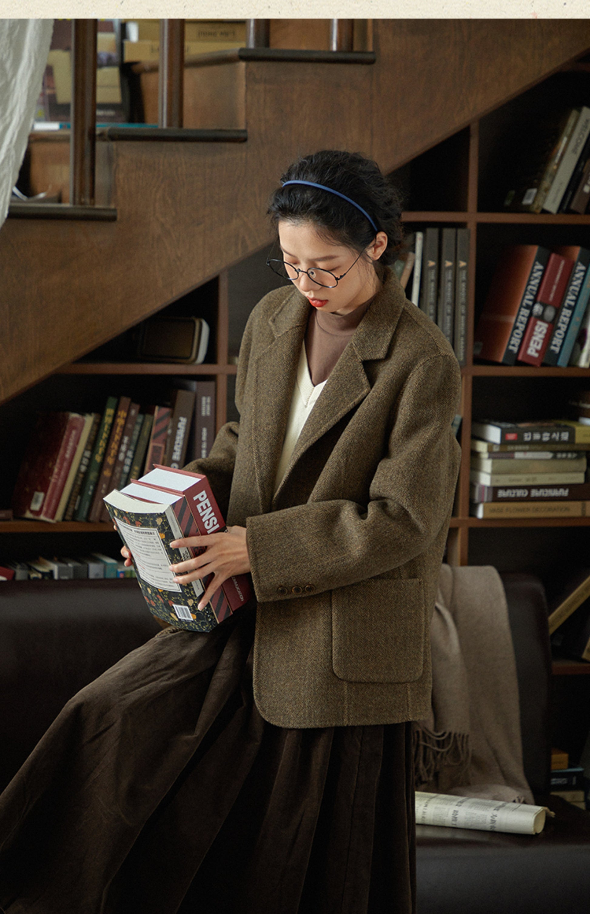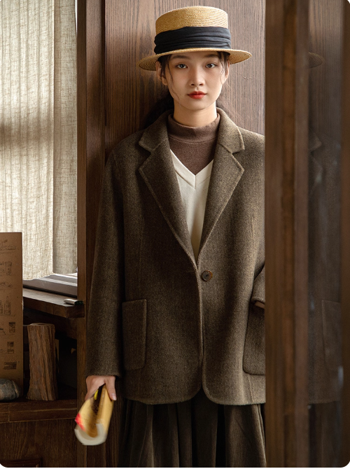 ジャストサイズで着て綺麗なシルエット△渋い色味のヘリンボーンウール100% 1つボタン テーラード ジャケット△