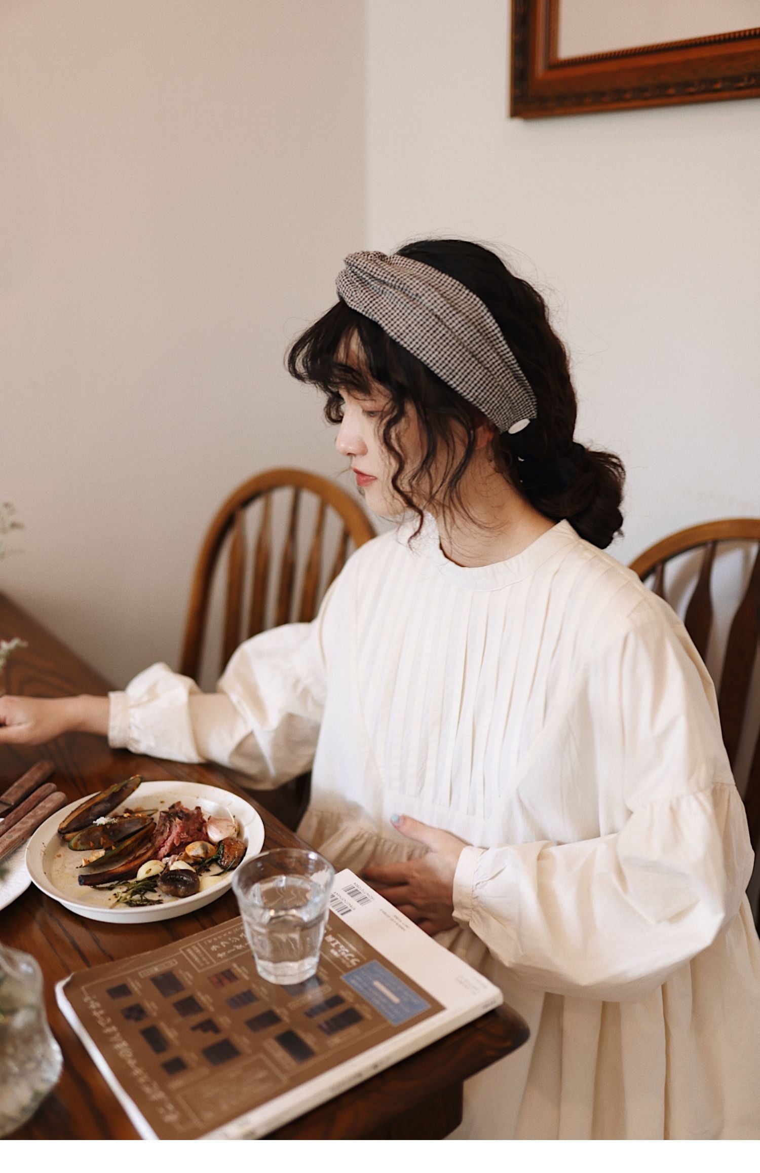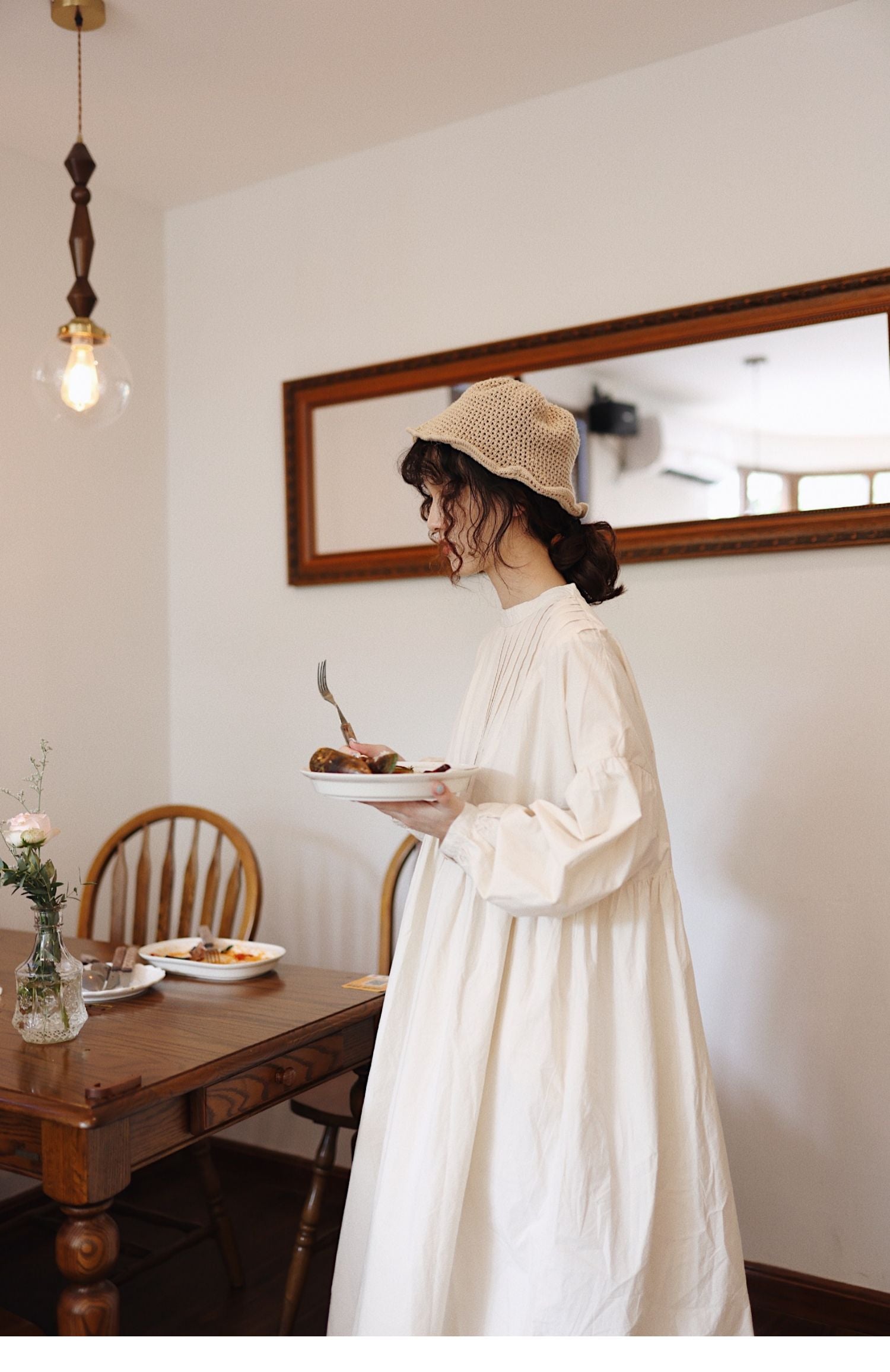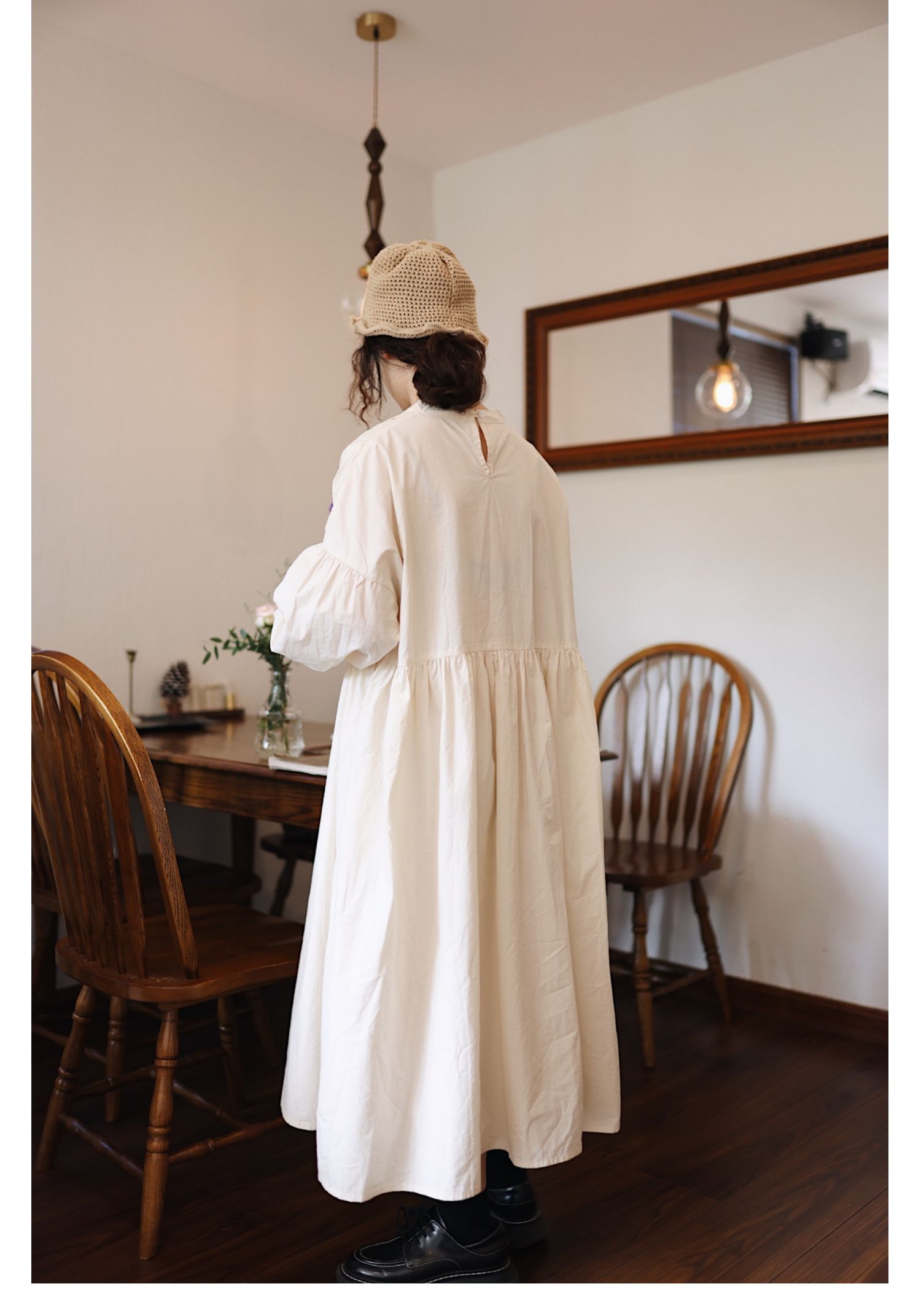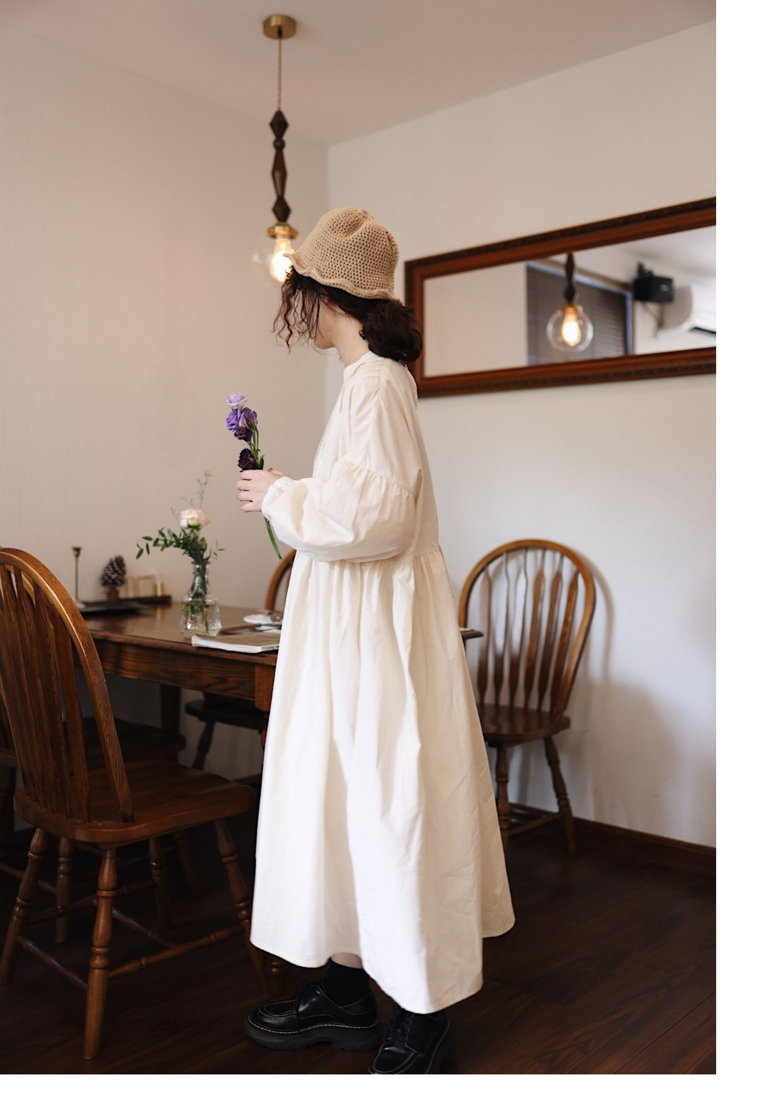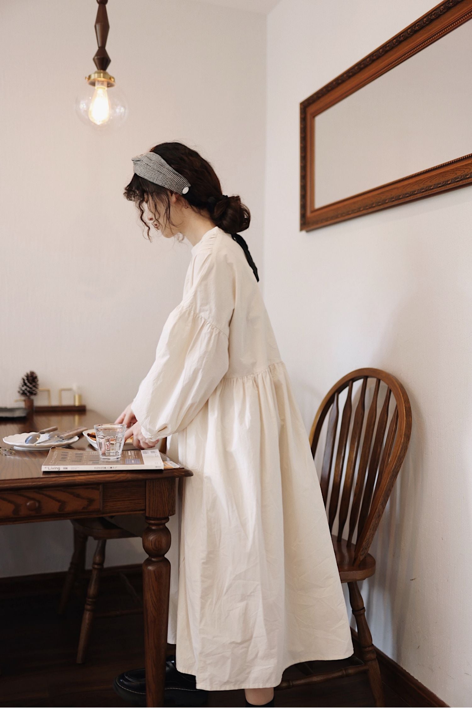 ピンタックとギャザー装飾が美しい△タイプライターコットン ロングワンピース△