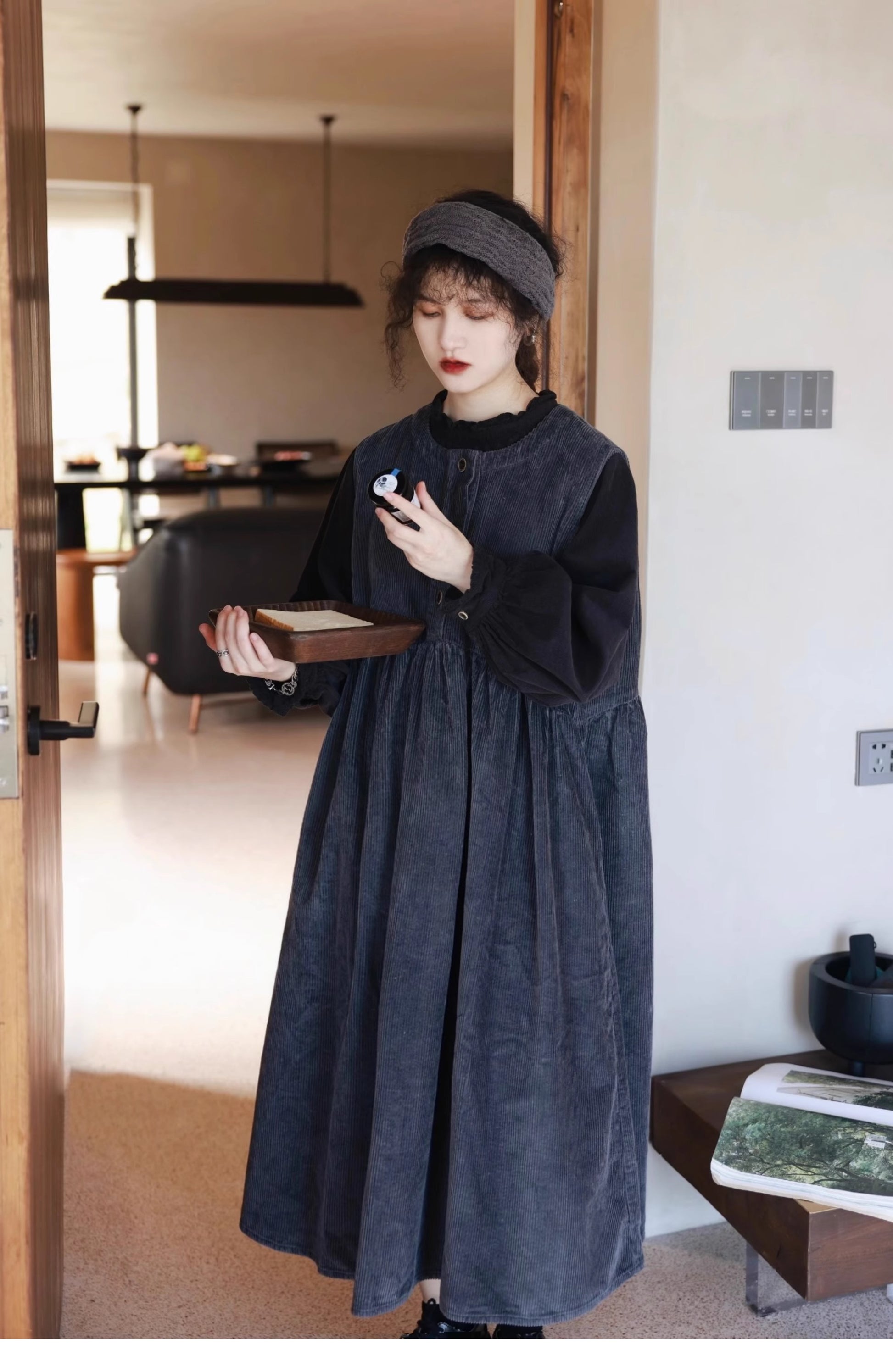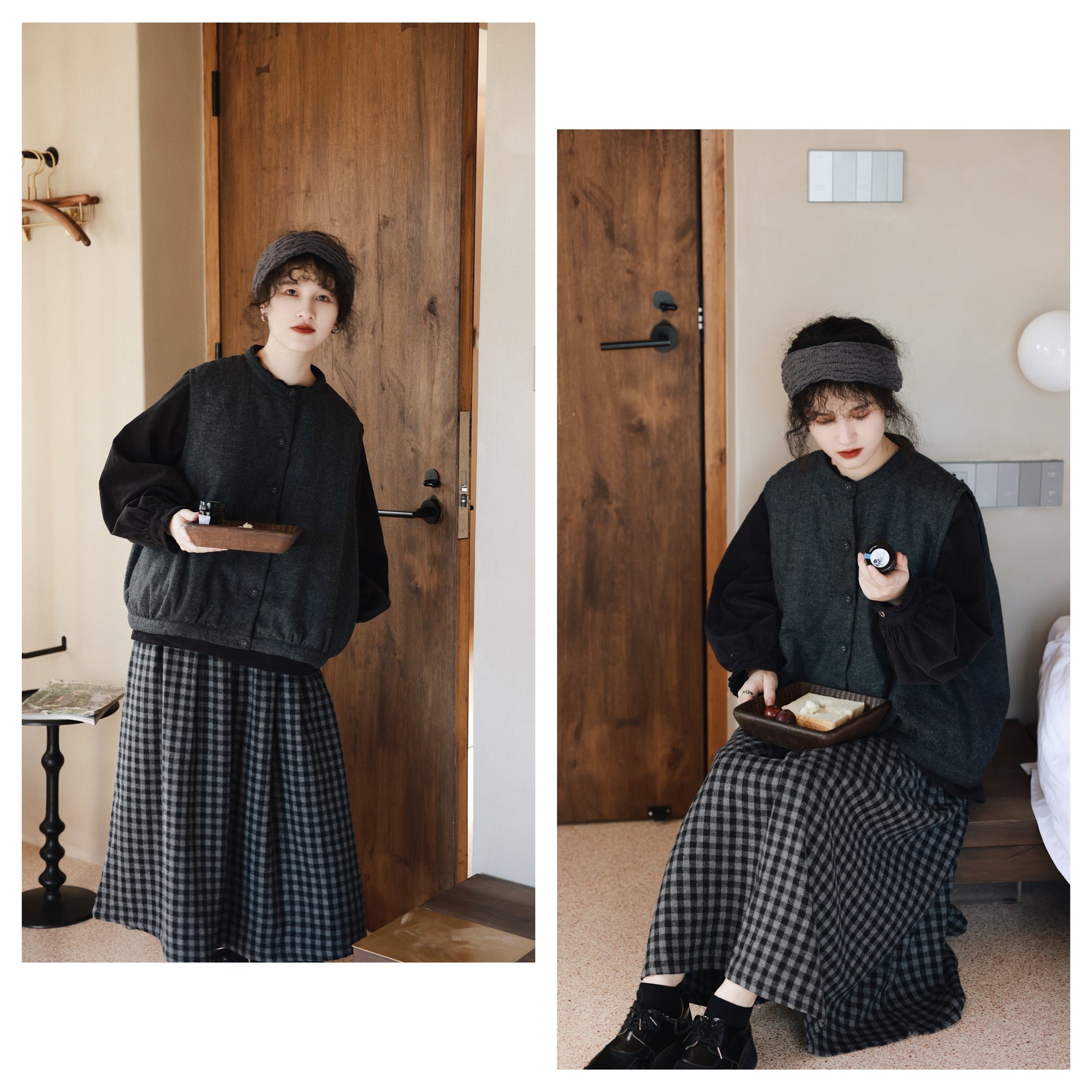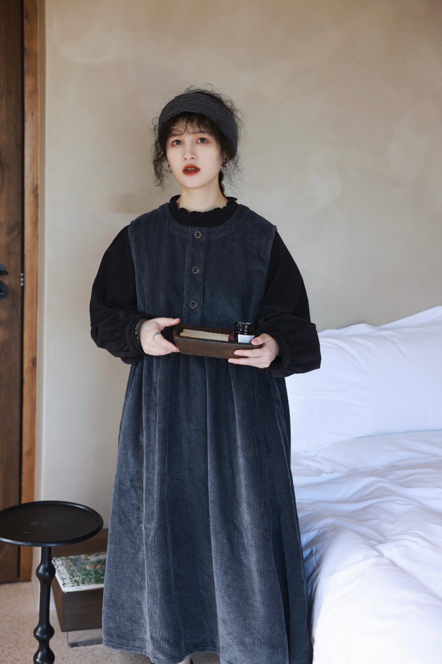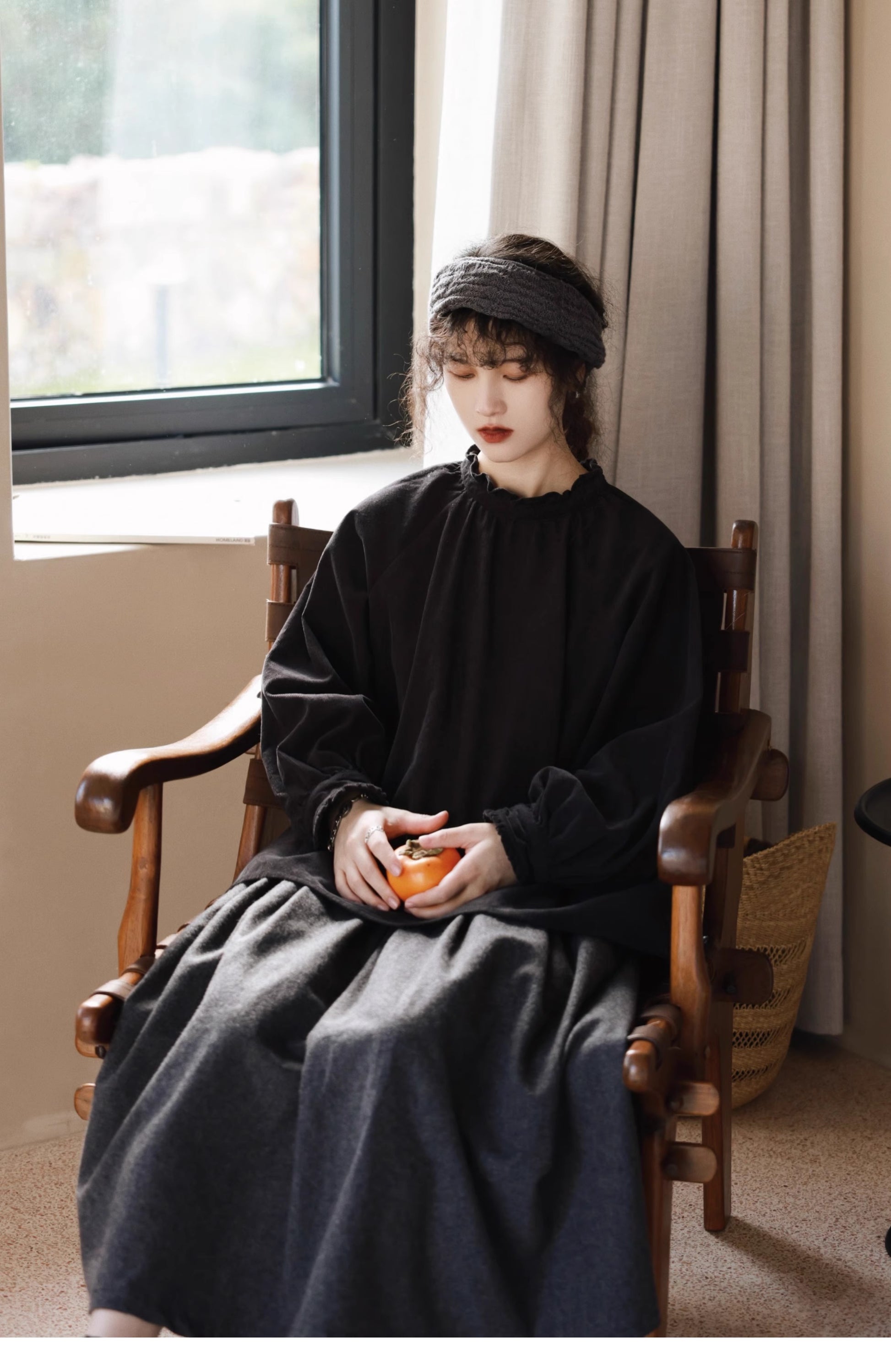 ◆ドロップショルダー フリルネックリネン バックボタン ブラウス◆