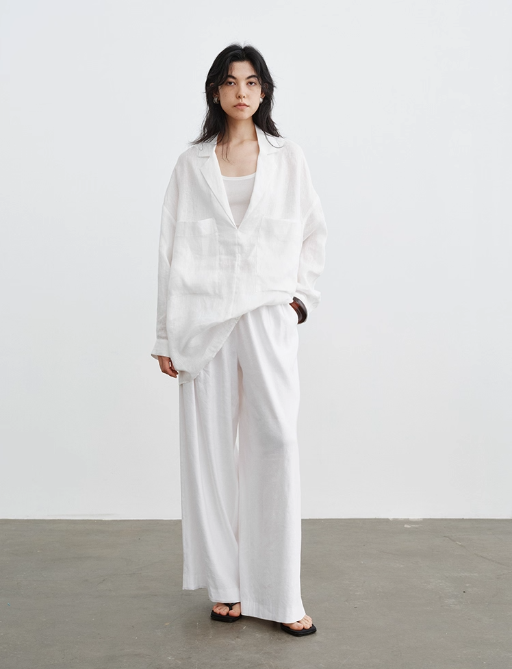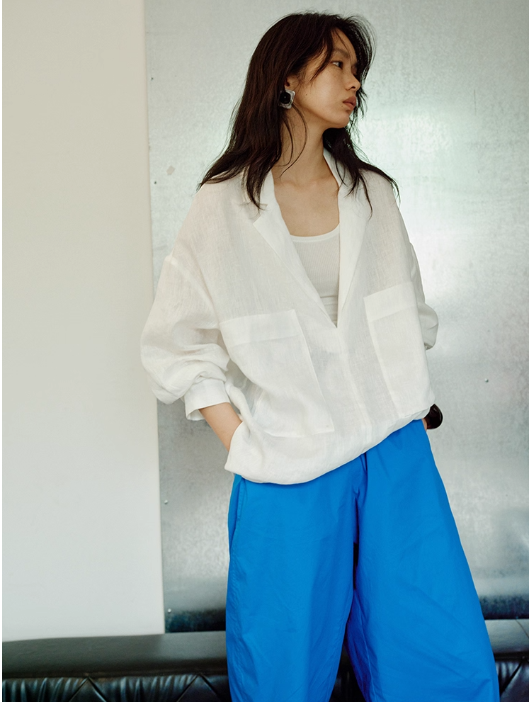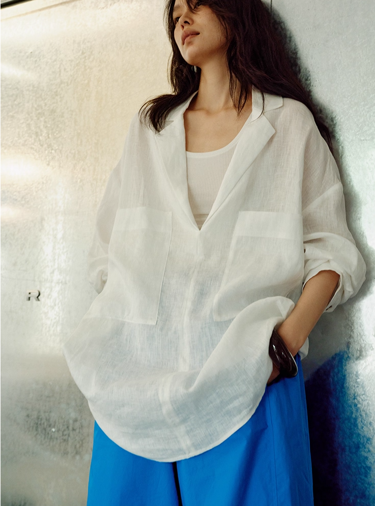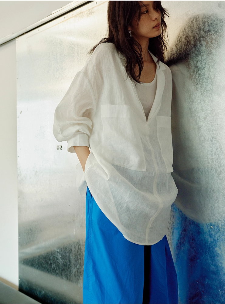◇リネン ドロップショルダー スキッパーブラウス◇ M/Lサイズ