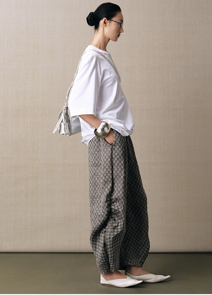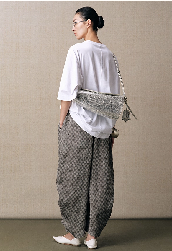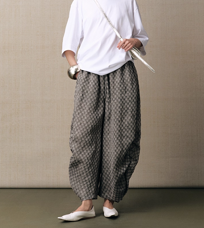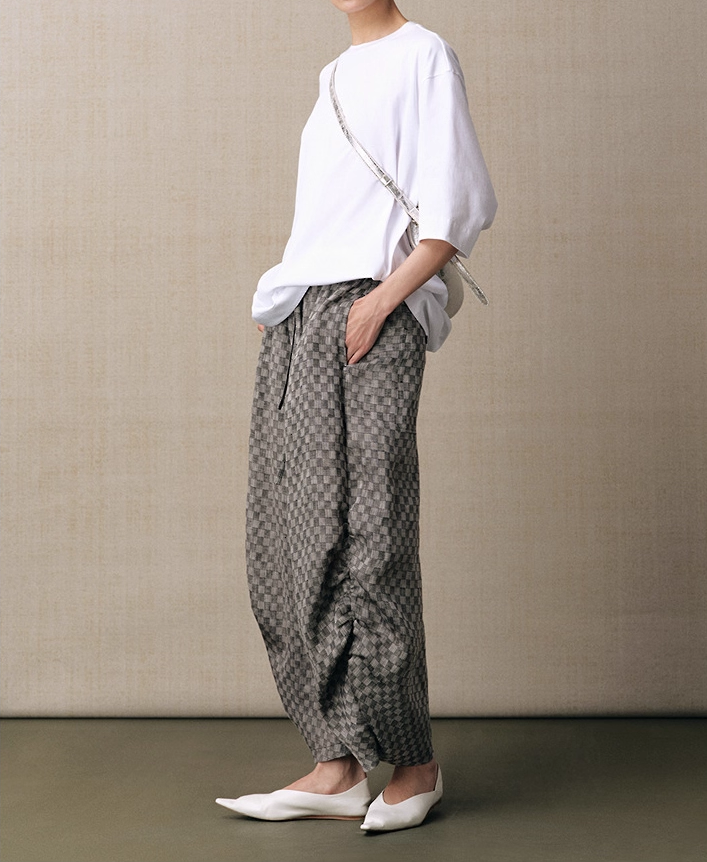 ◇格子柄リネン イージーバルーンシルエットパンツ◇M/Lサイズ