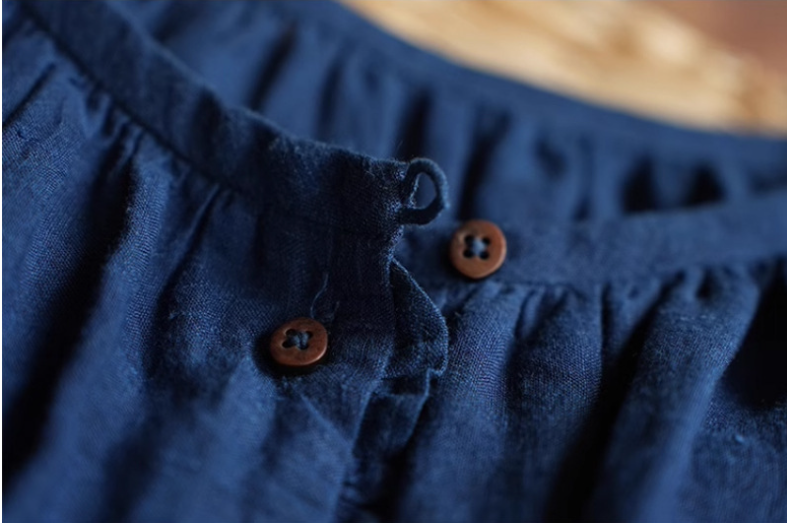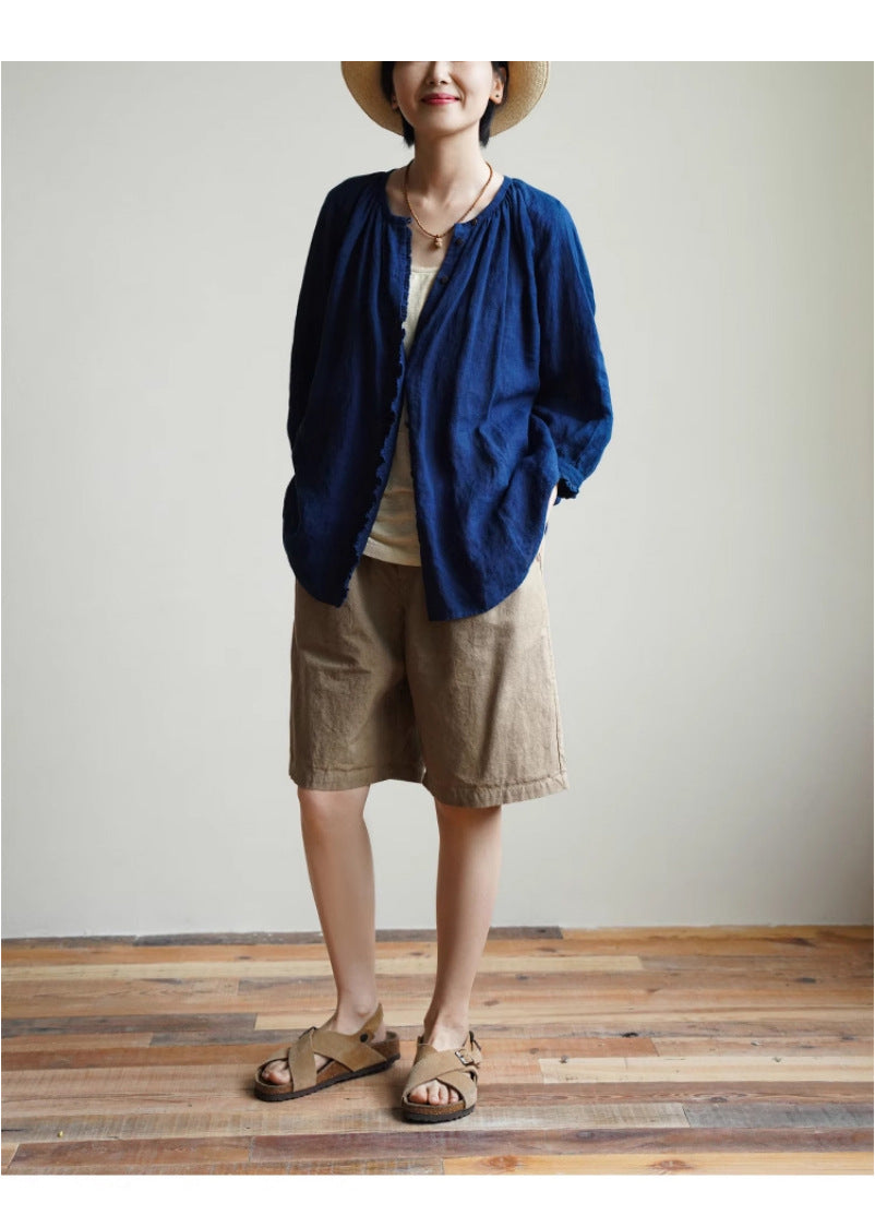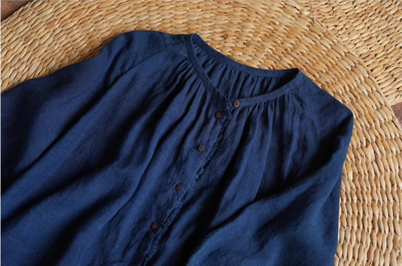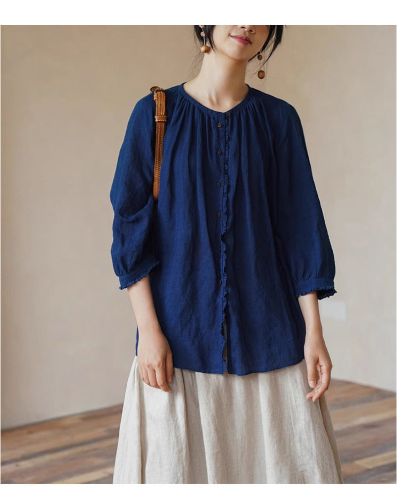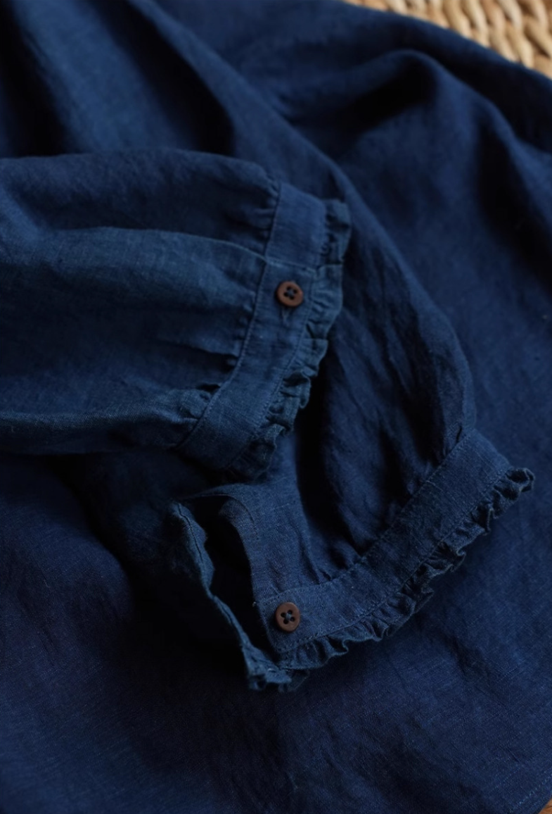 残りわずか✩インディゴ本藍染め✩フリル使いがポイント✩リネンシャツ✩