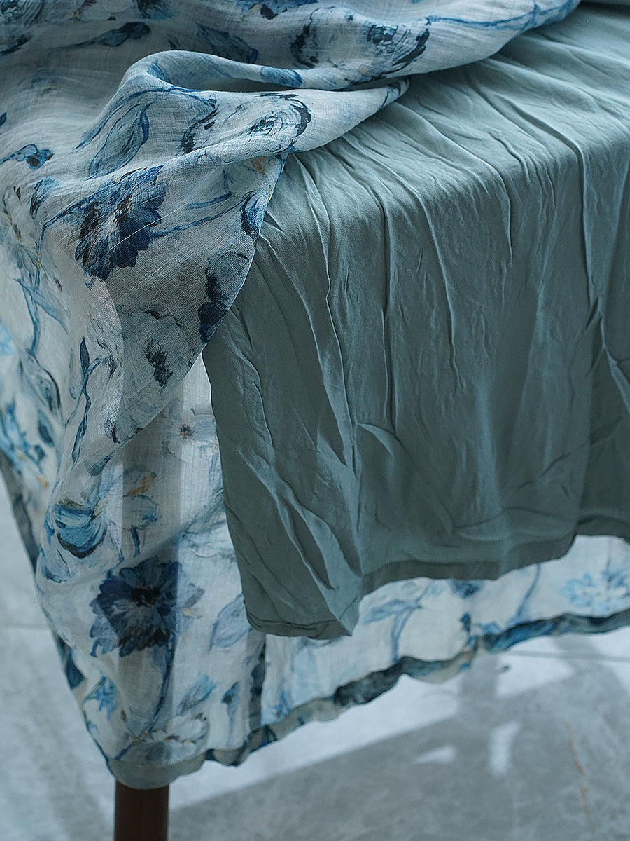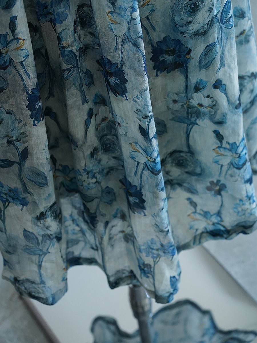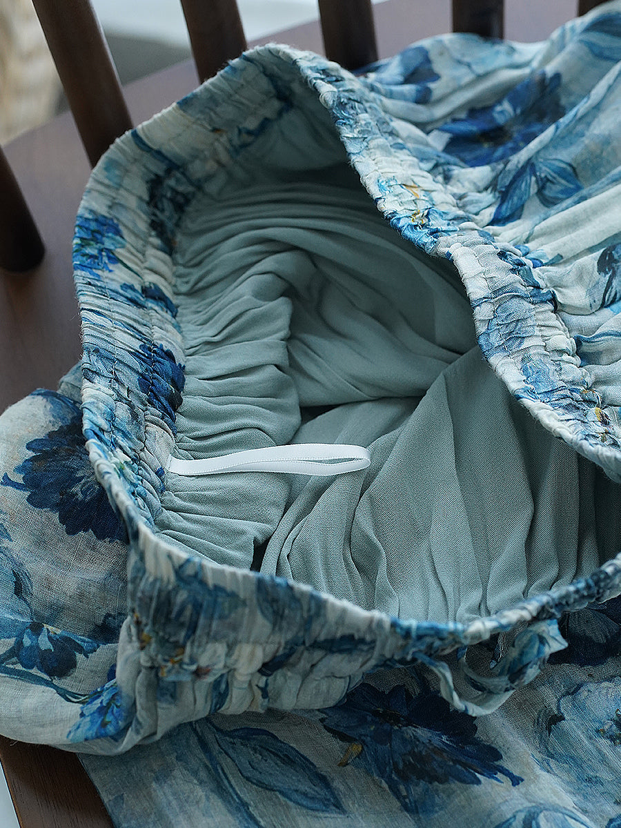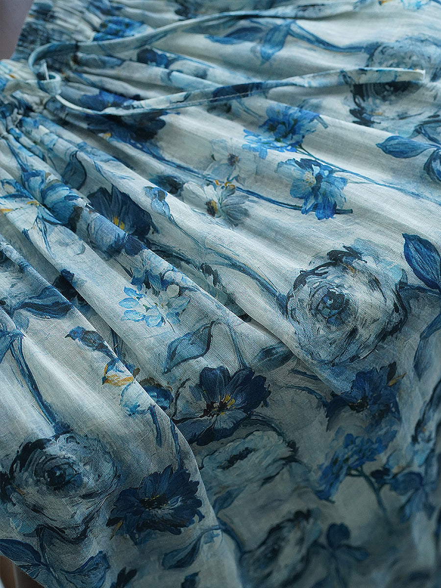 ◇油絵タッチの花柄プリントがエレガント◇ハイカウントラミーが軽やか◇イージーギャザーフラワープリント スカート◇裏地付き