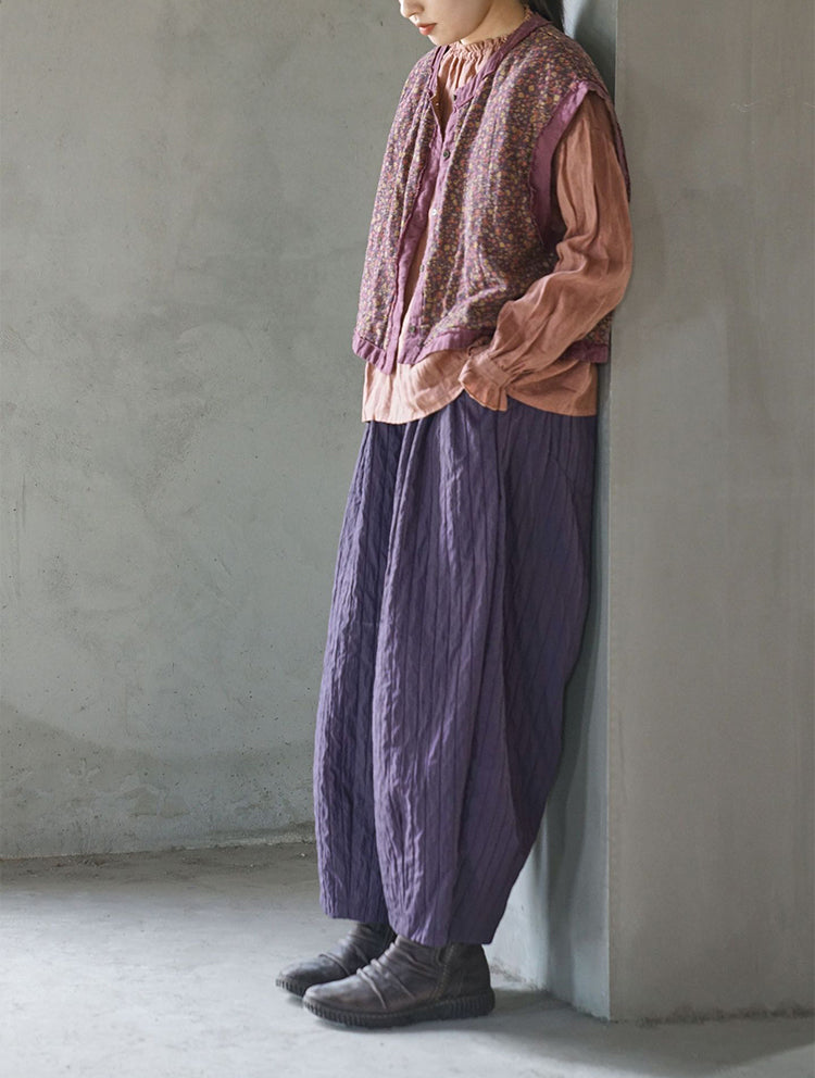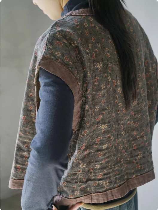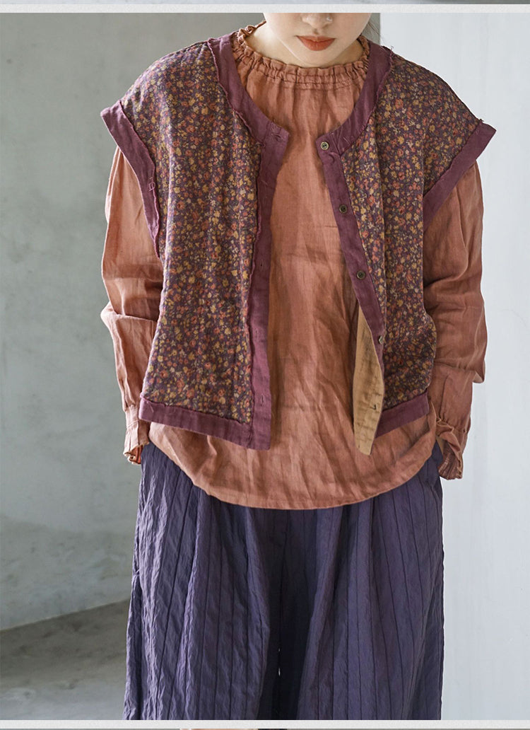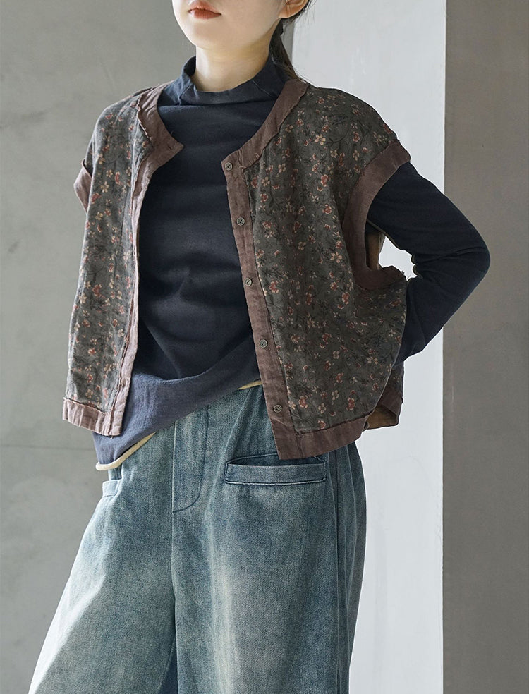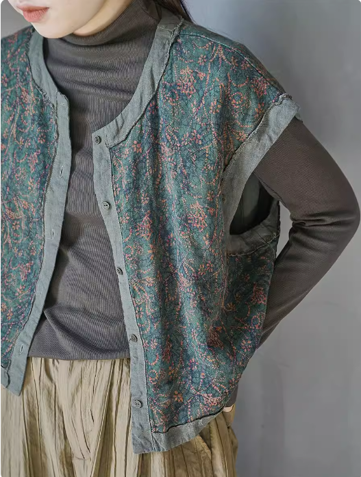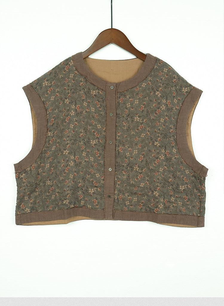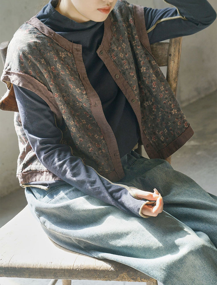3色展開☆絶妙な色味の小花柄が美しい☆切り替えデザインコットンベスト☆