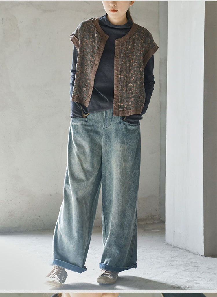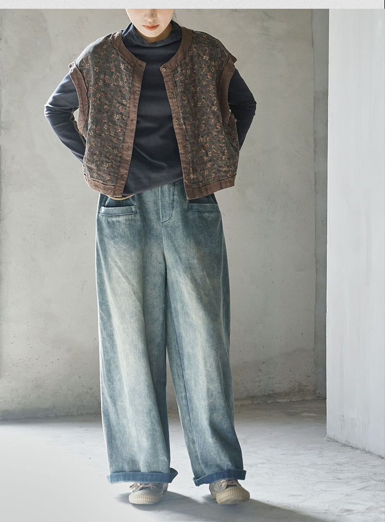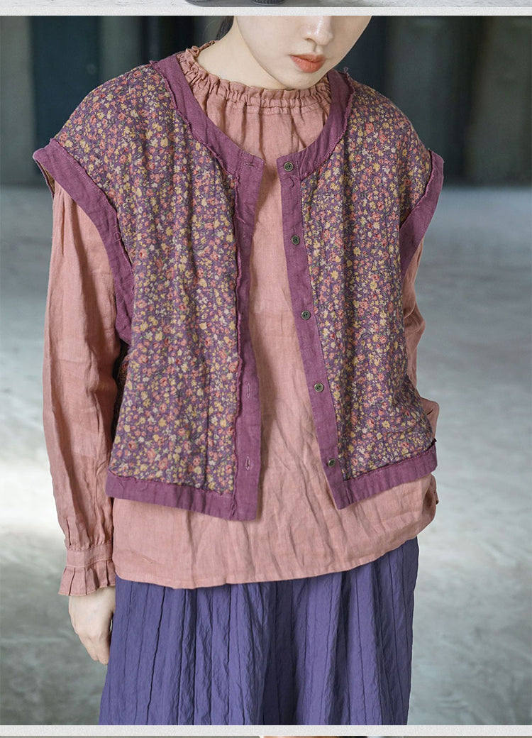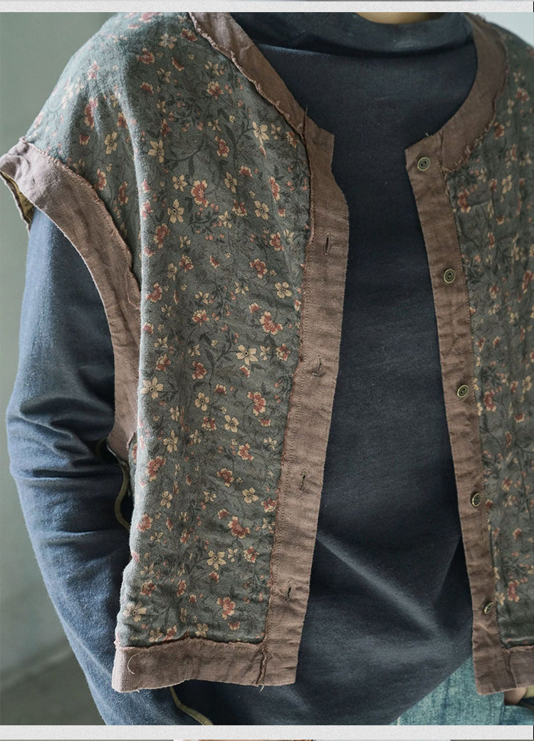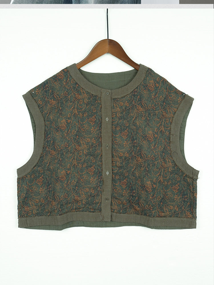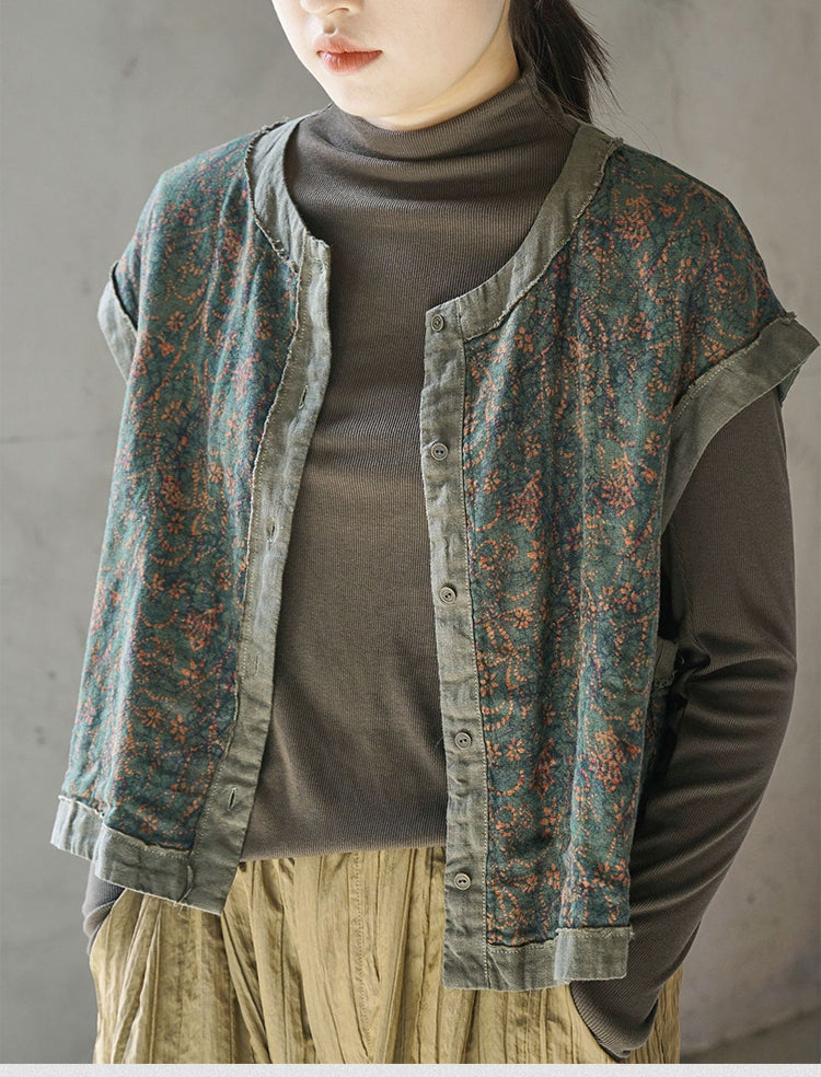 3色展開☆絶妙な色味の小花柄が美しい☆切り替えデザインコットンベスト☆