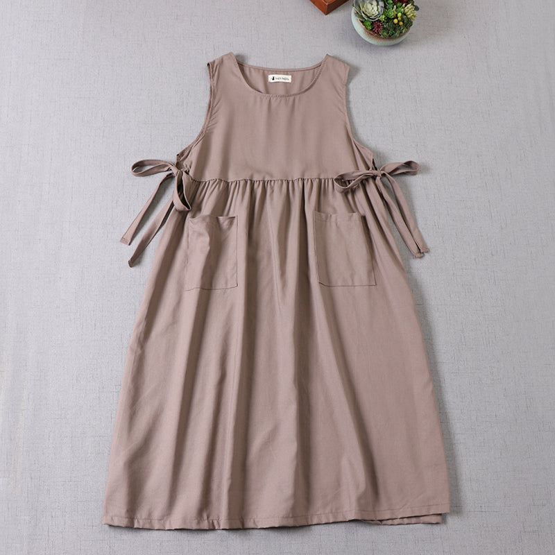 ◇重ね着用◇3色展開◇レディース リネンコットン ロングエプロン ワンピースドレス◇