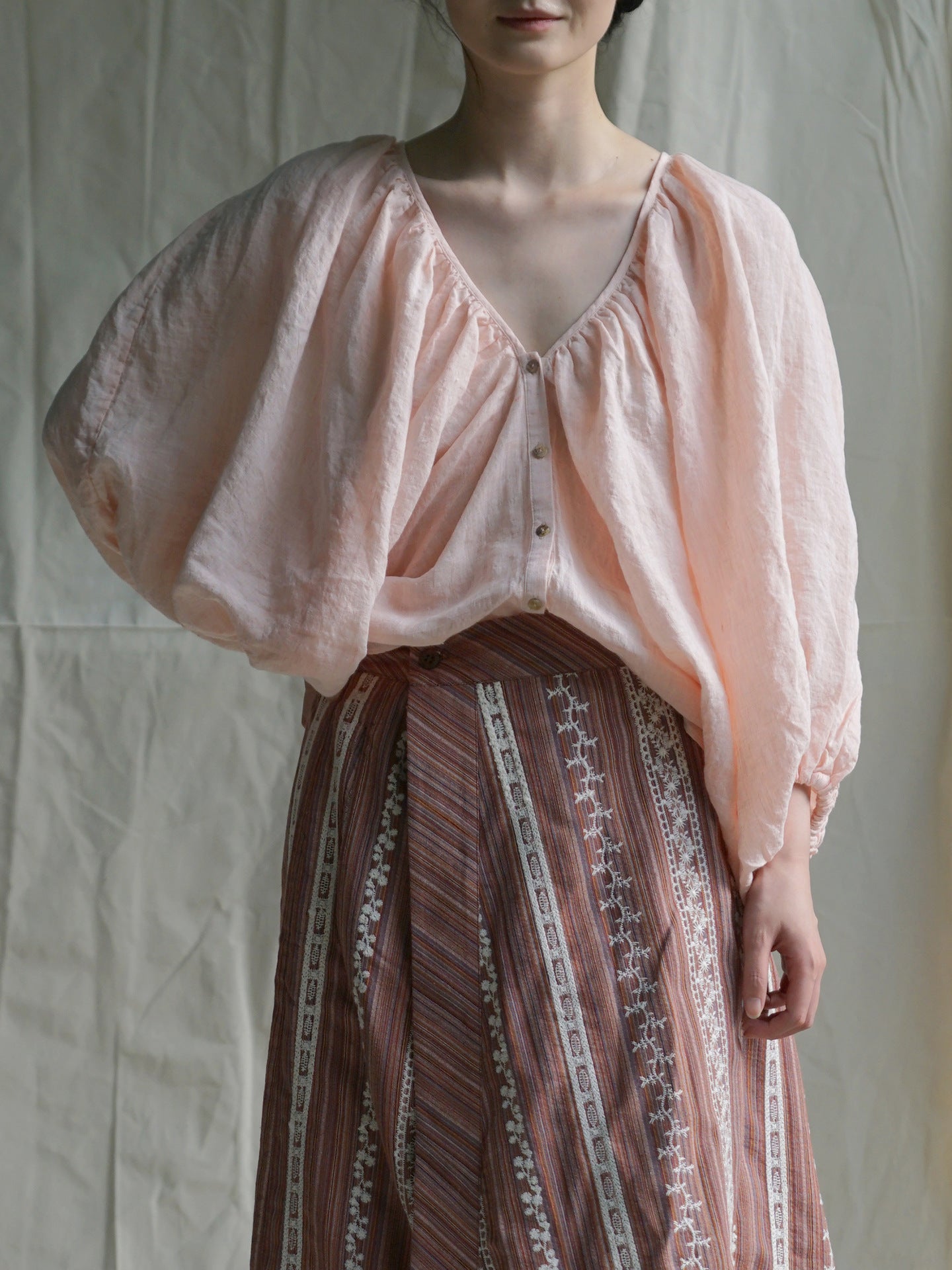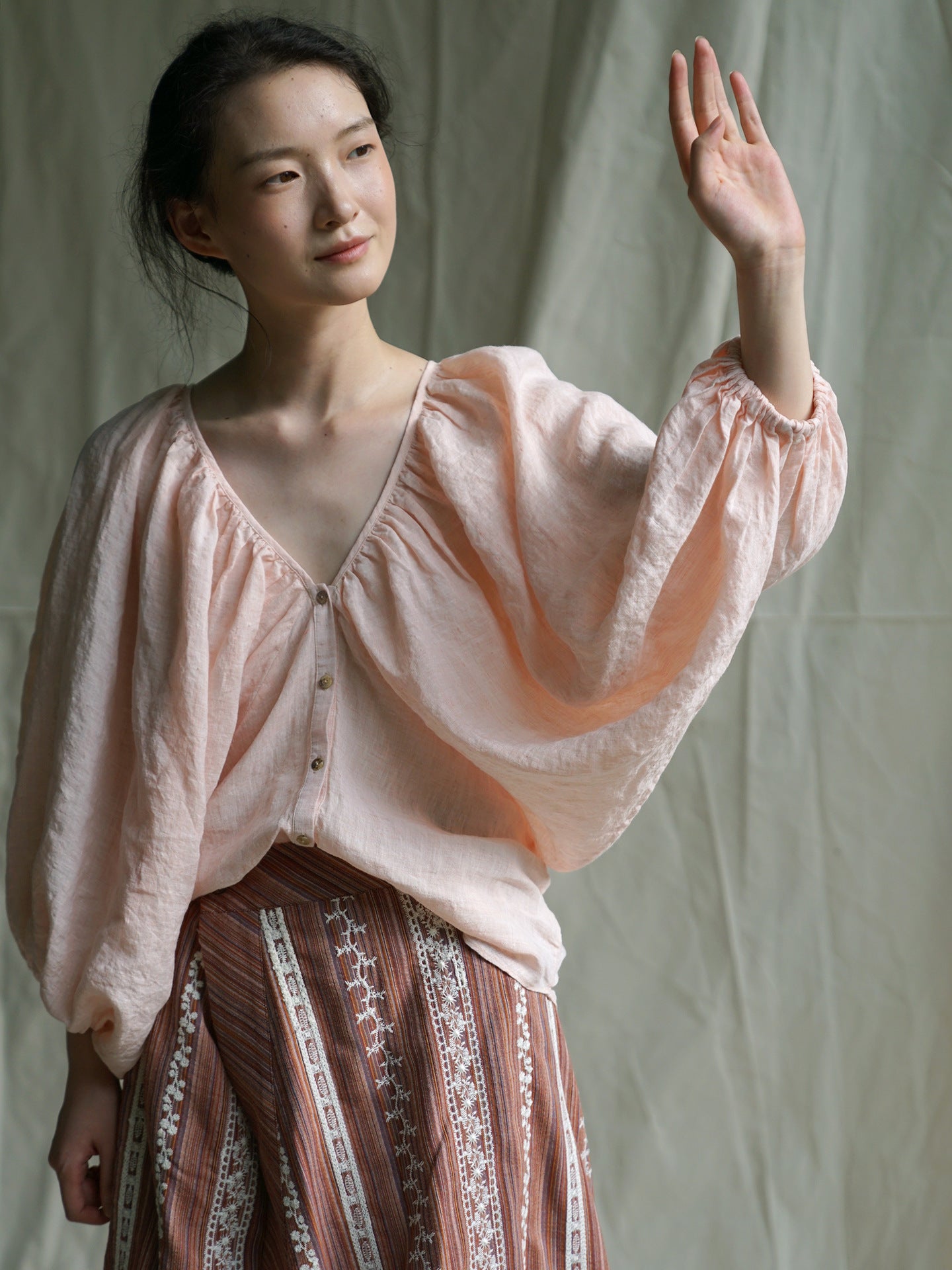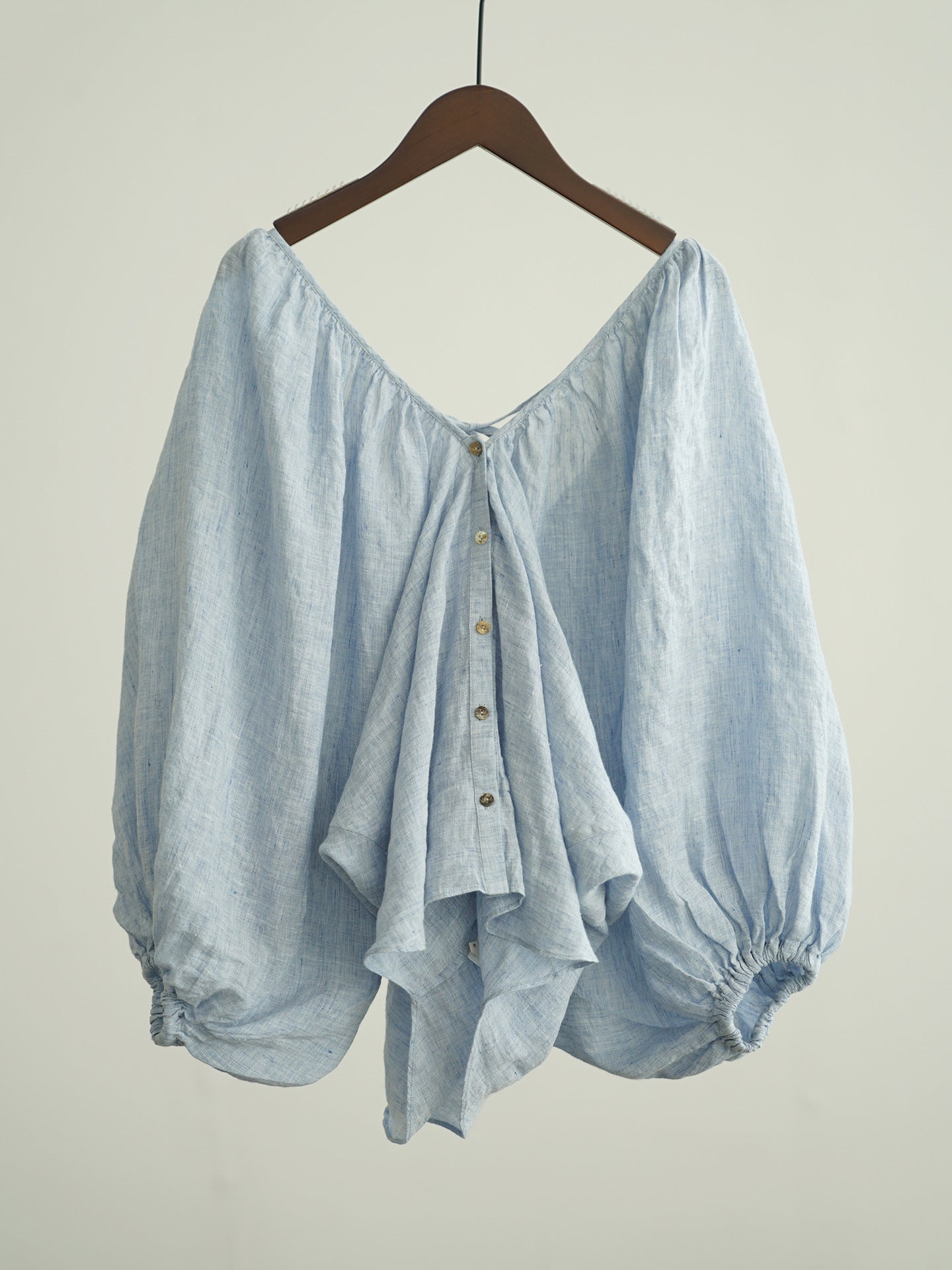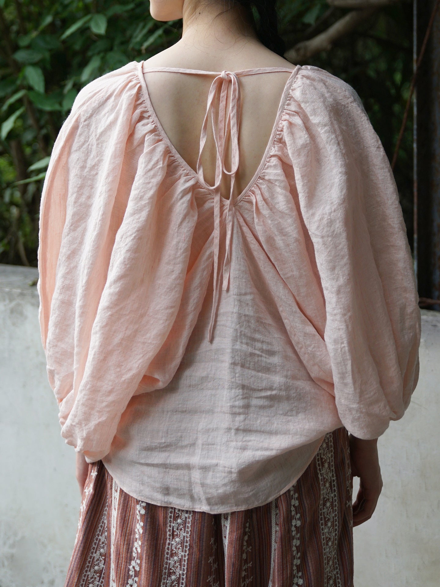 2色展開△たっぷりギャザーリネン ブラウス シャツ△