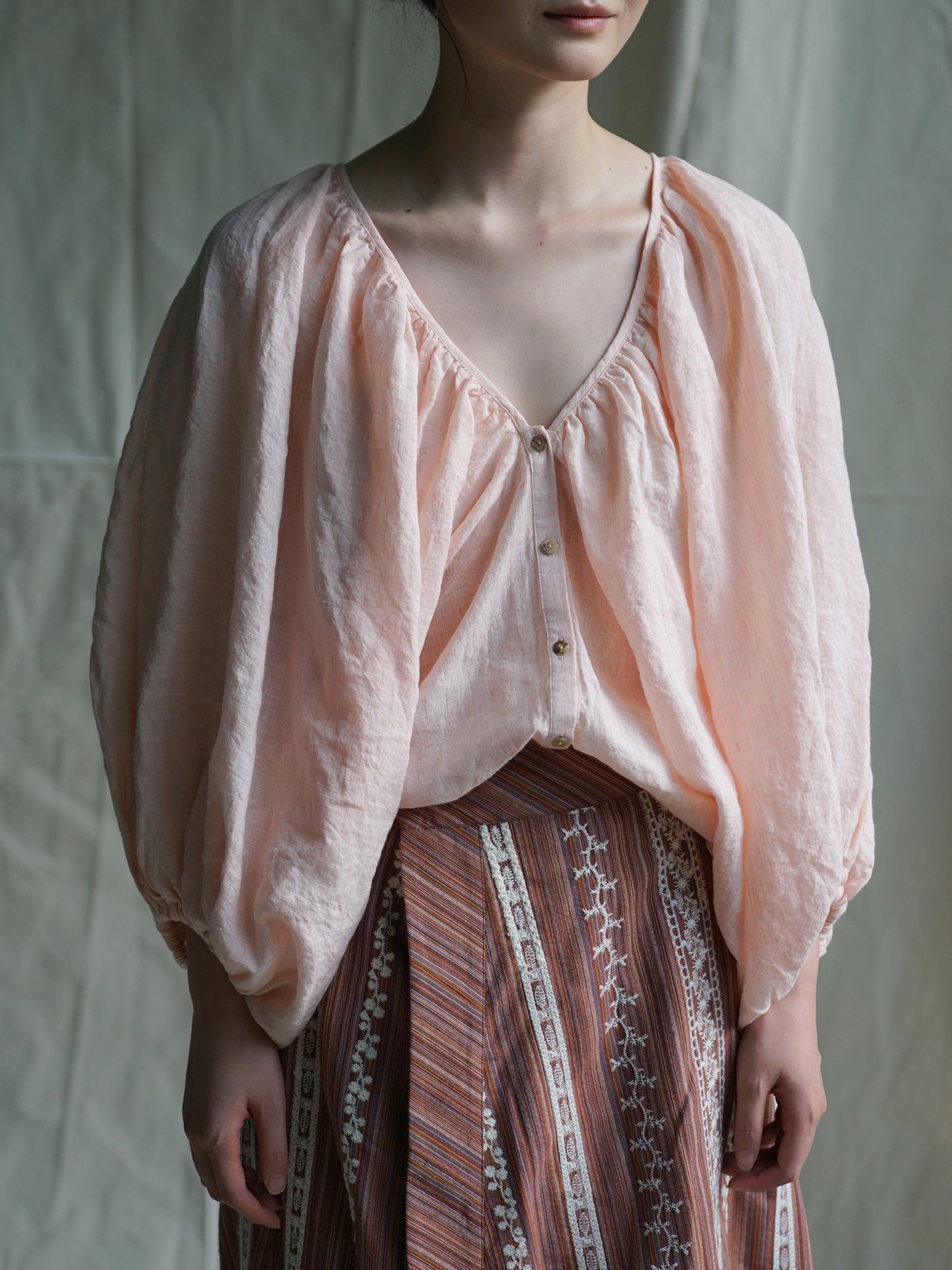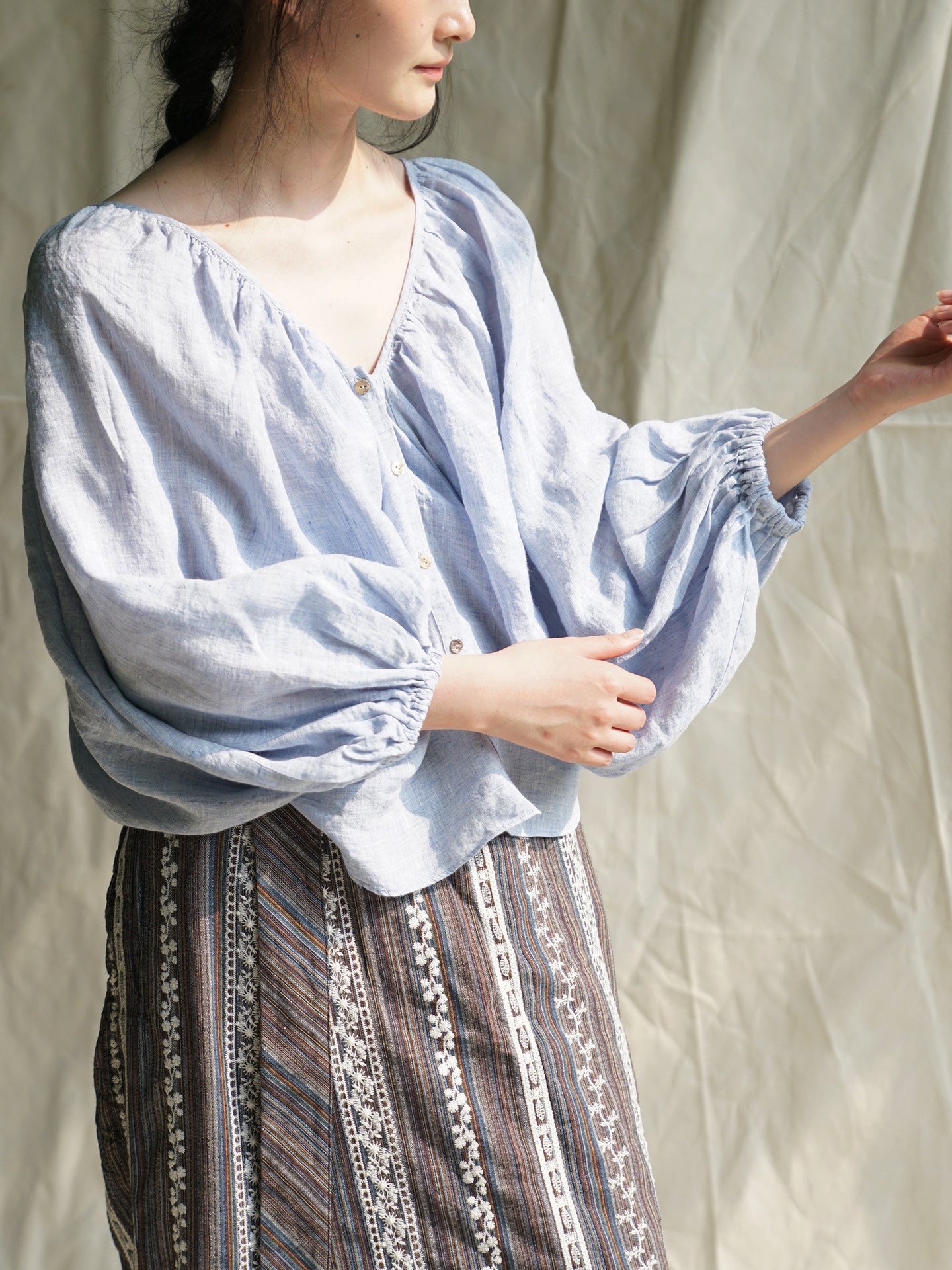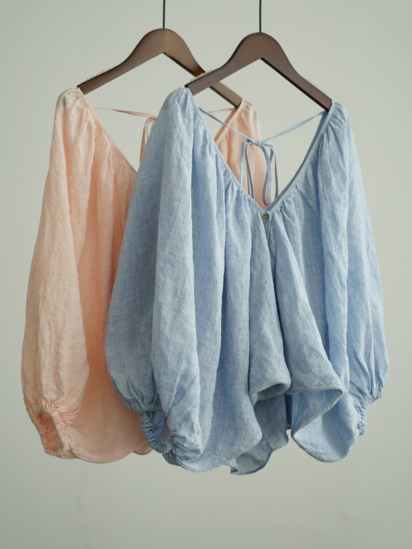 2色展開△たっぷりギャザーリネン ブラウス シャツ△