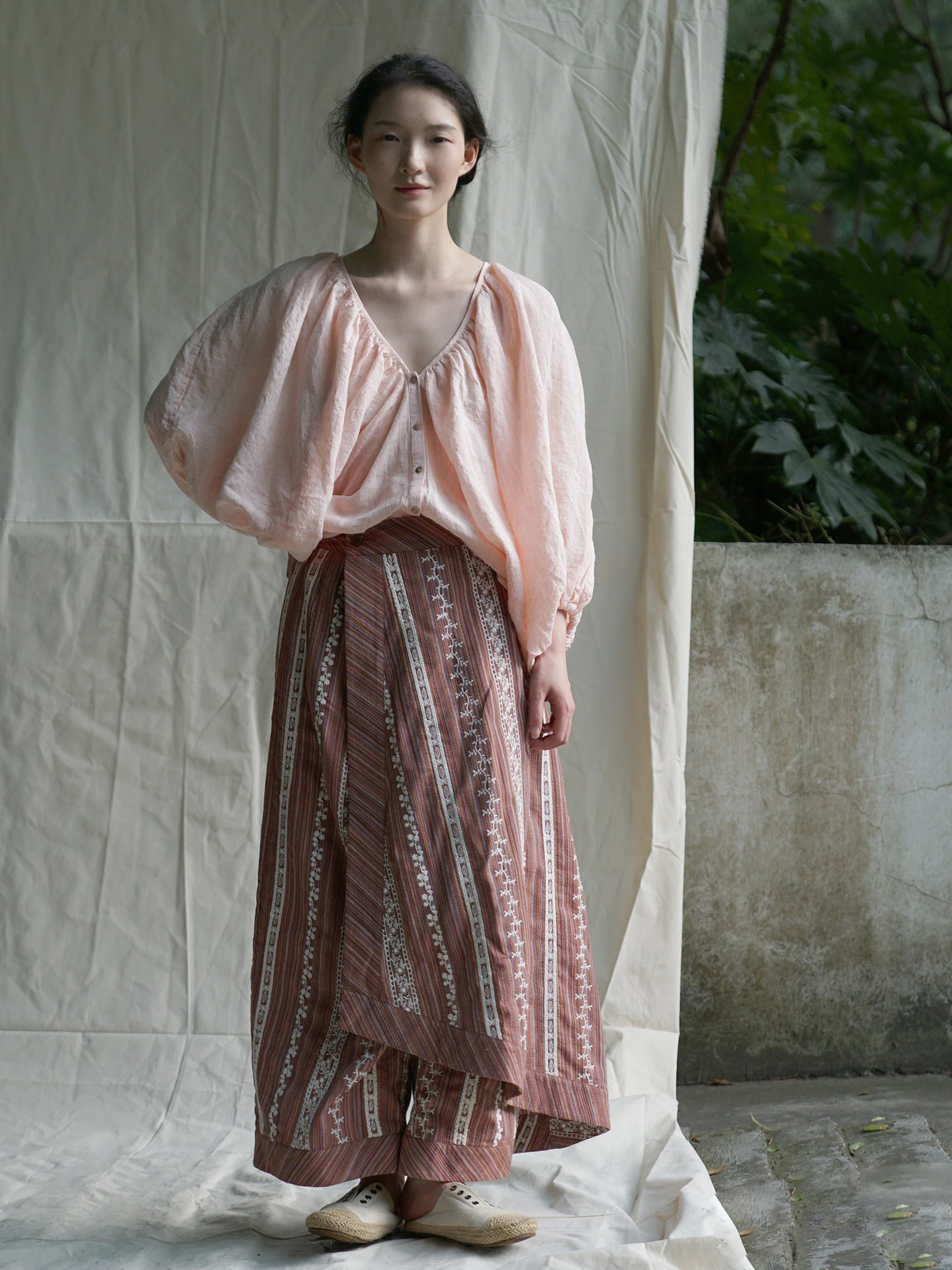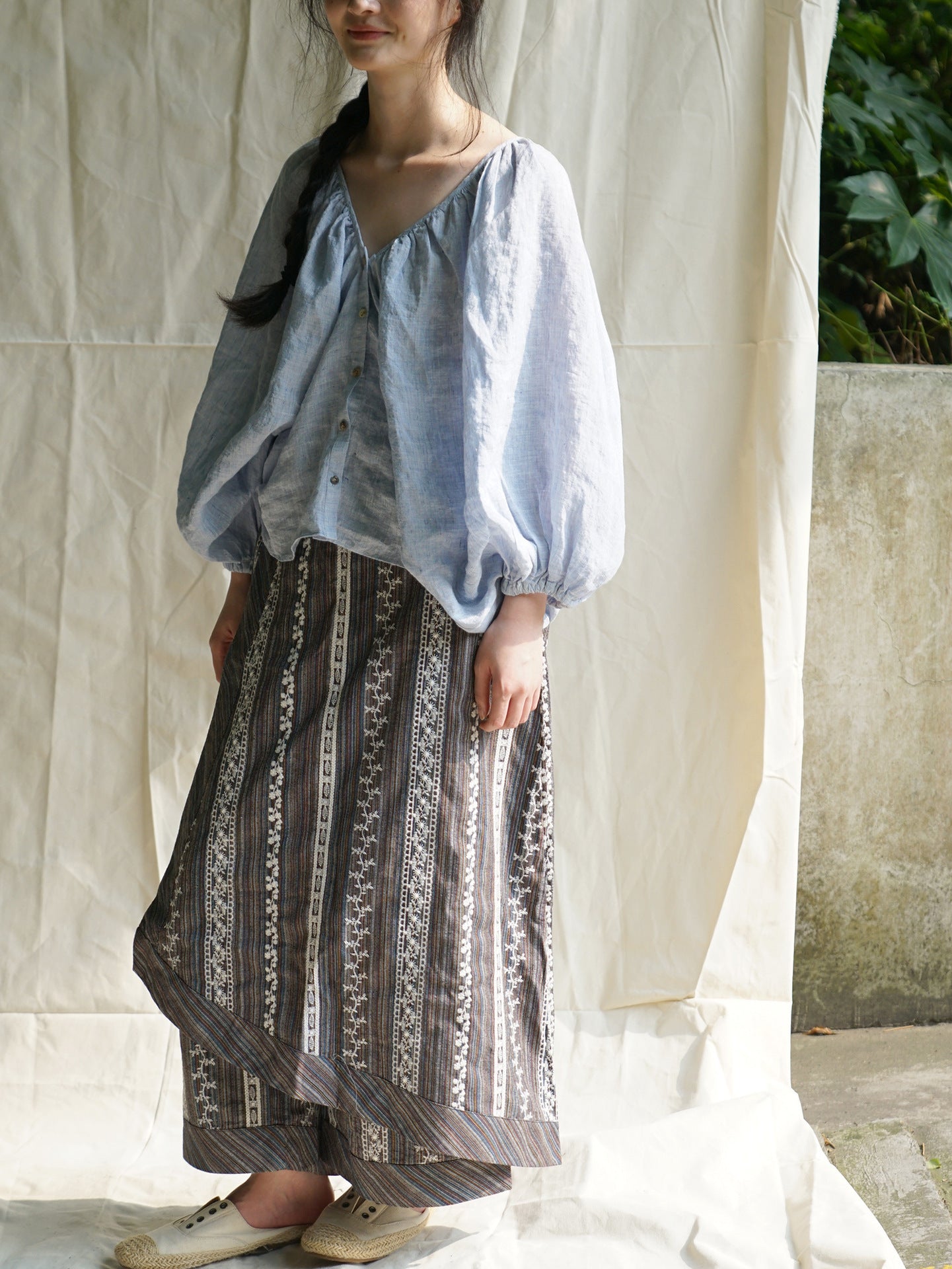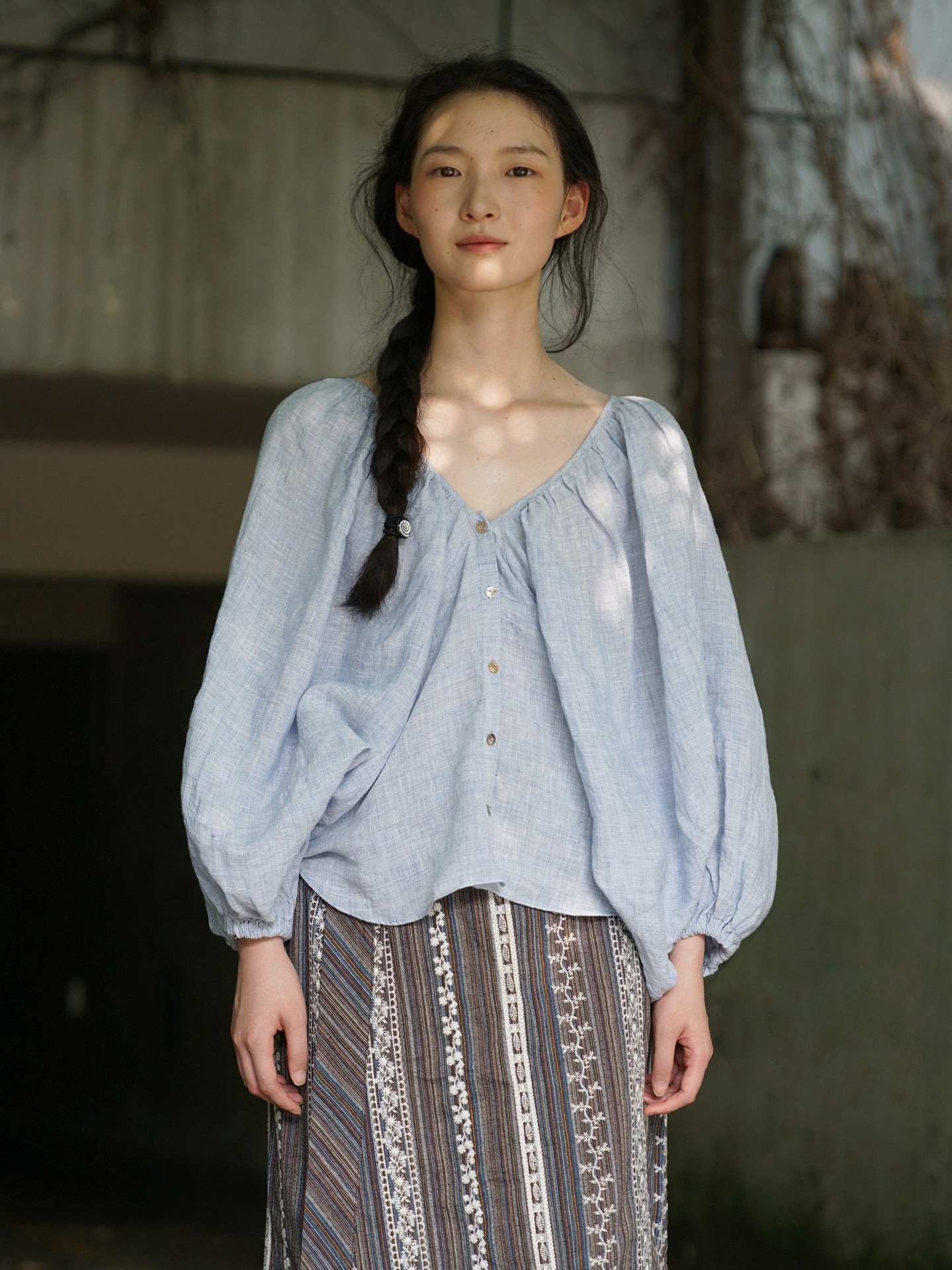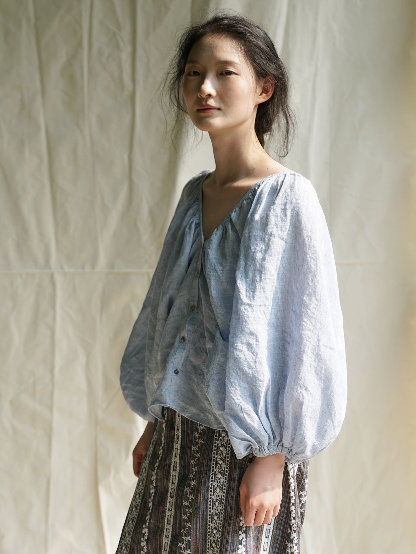 2色展開△たっぷりギャザーリネン ブラウス シャツ△