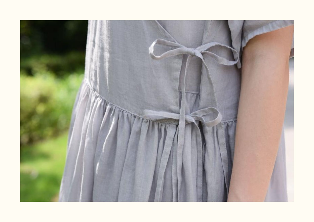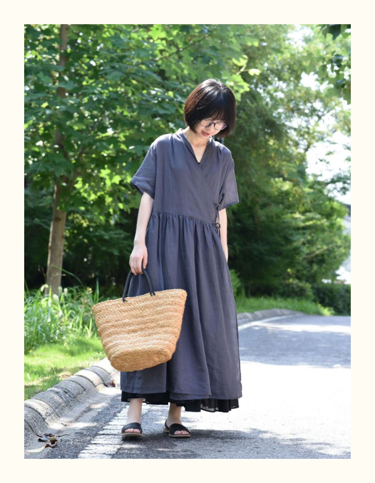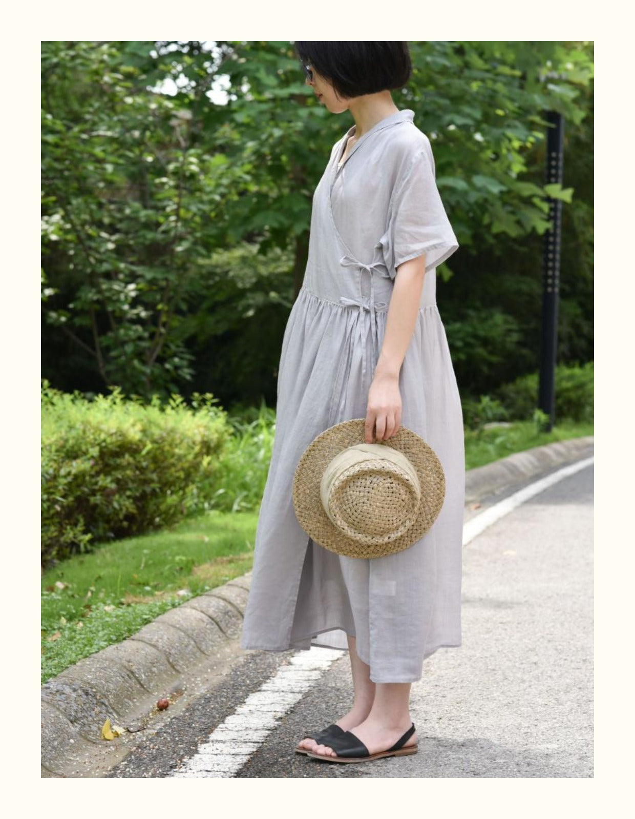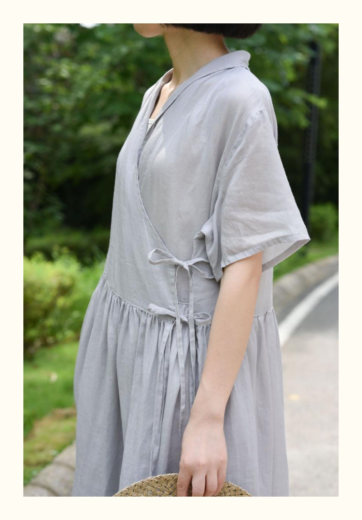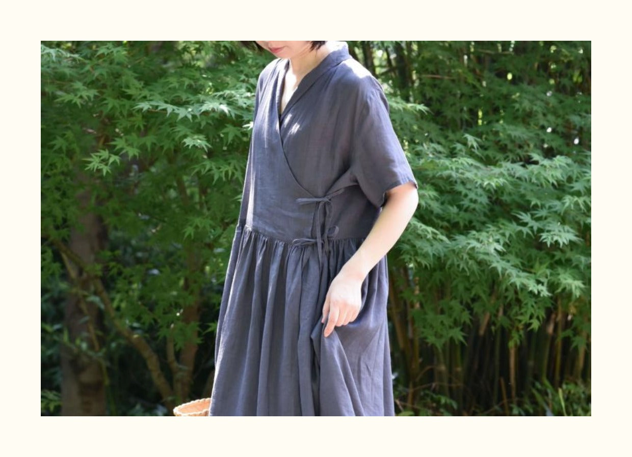 2色展開✩ショールカラー ウエストギャザー ラミー カシュクール ドレス ✩