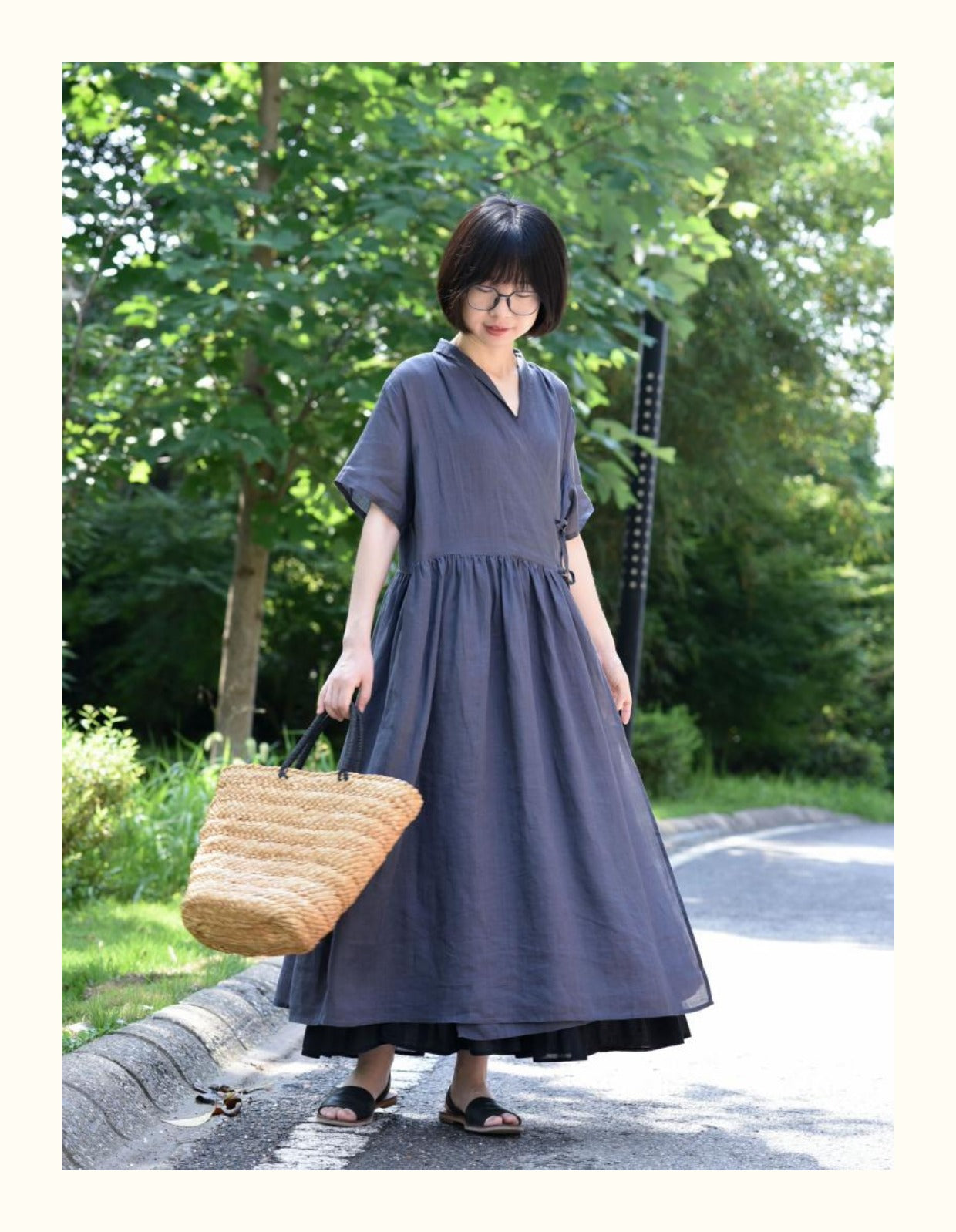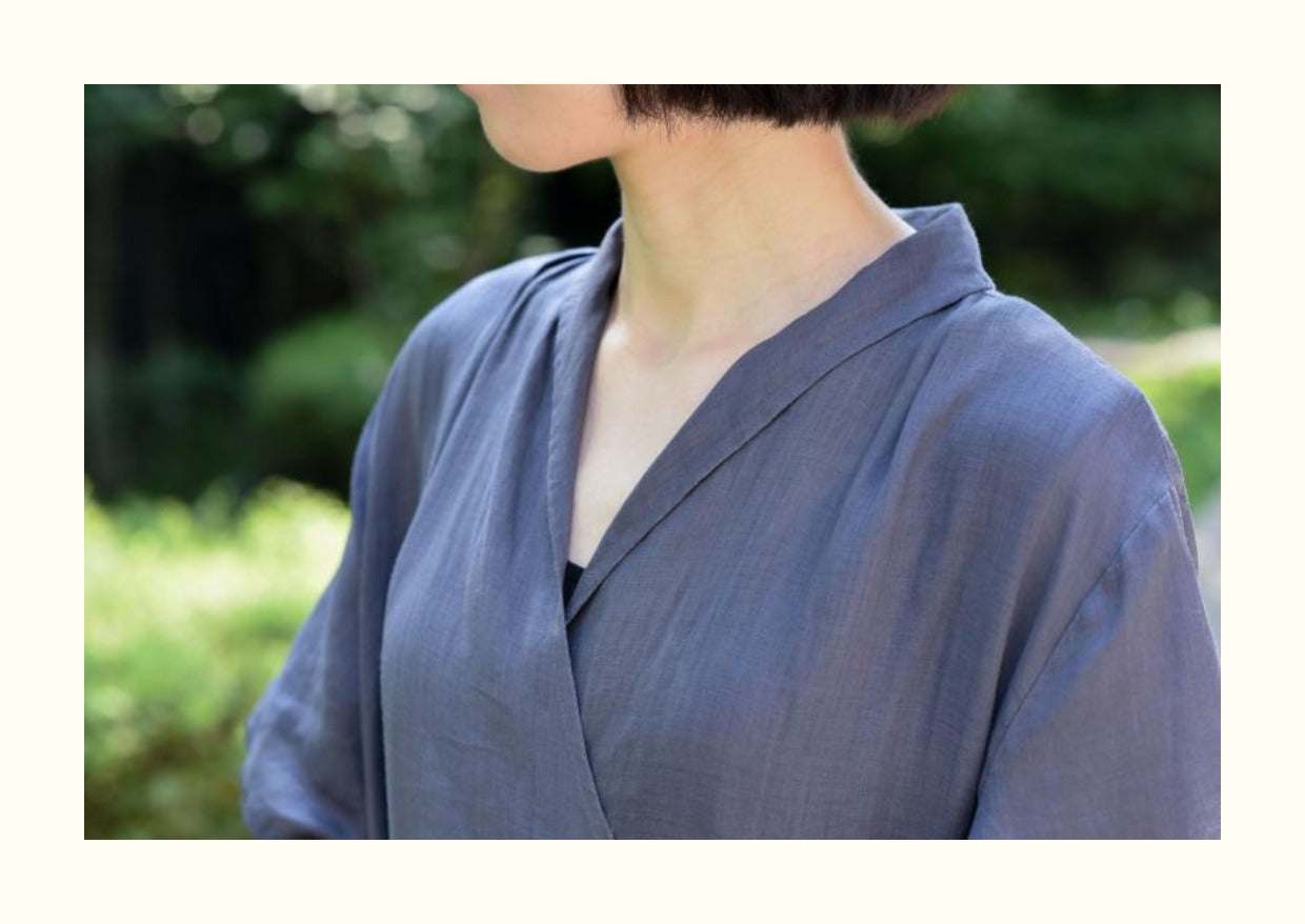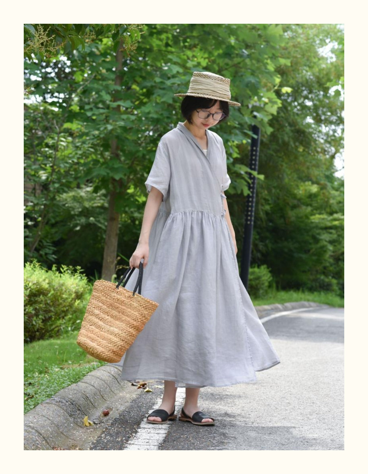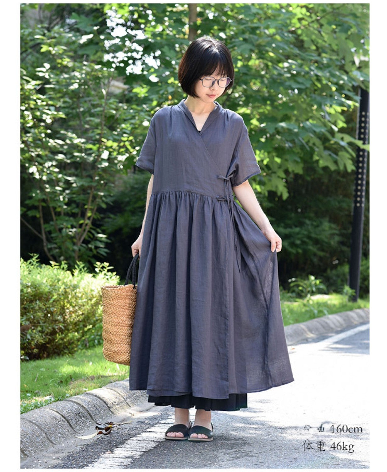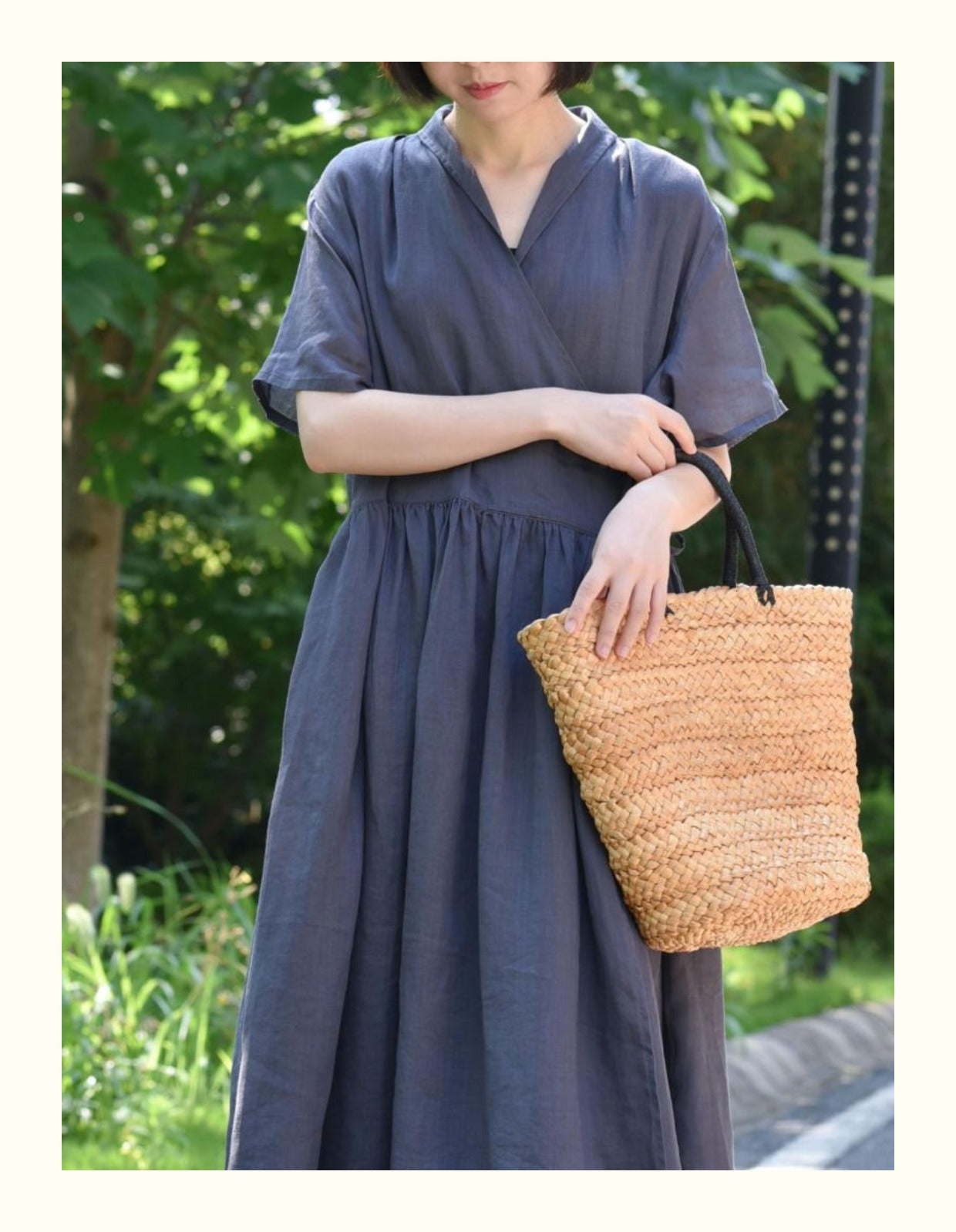 2色展開✩ショールカラー ウエストギャザー ラミー カシュクール ドレス ✩