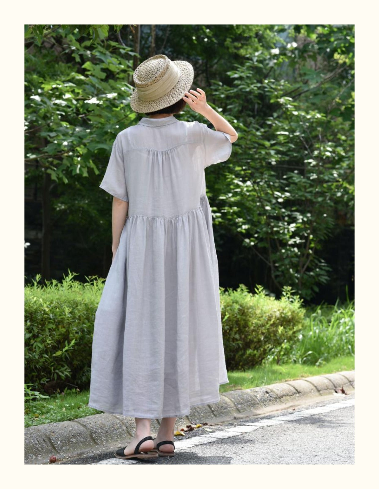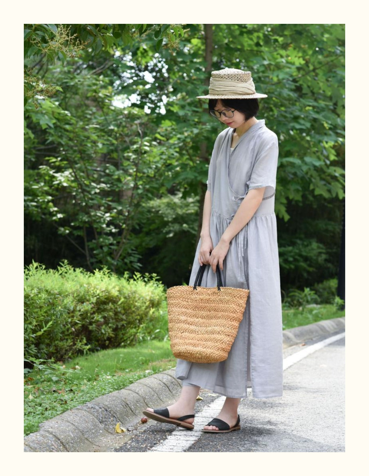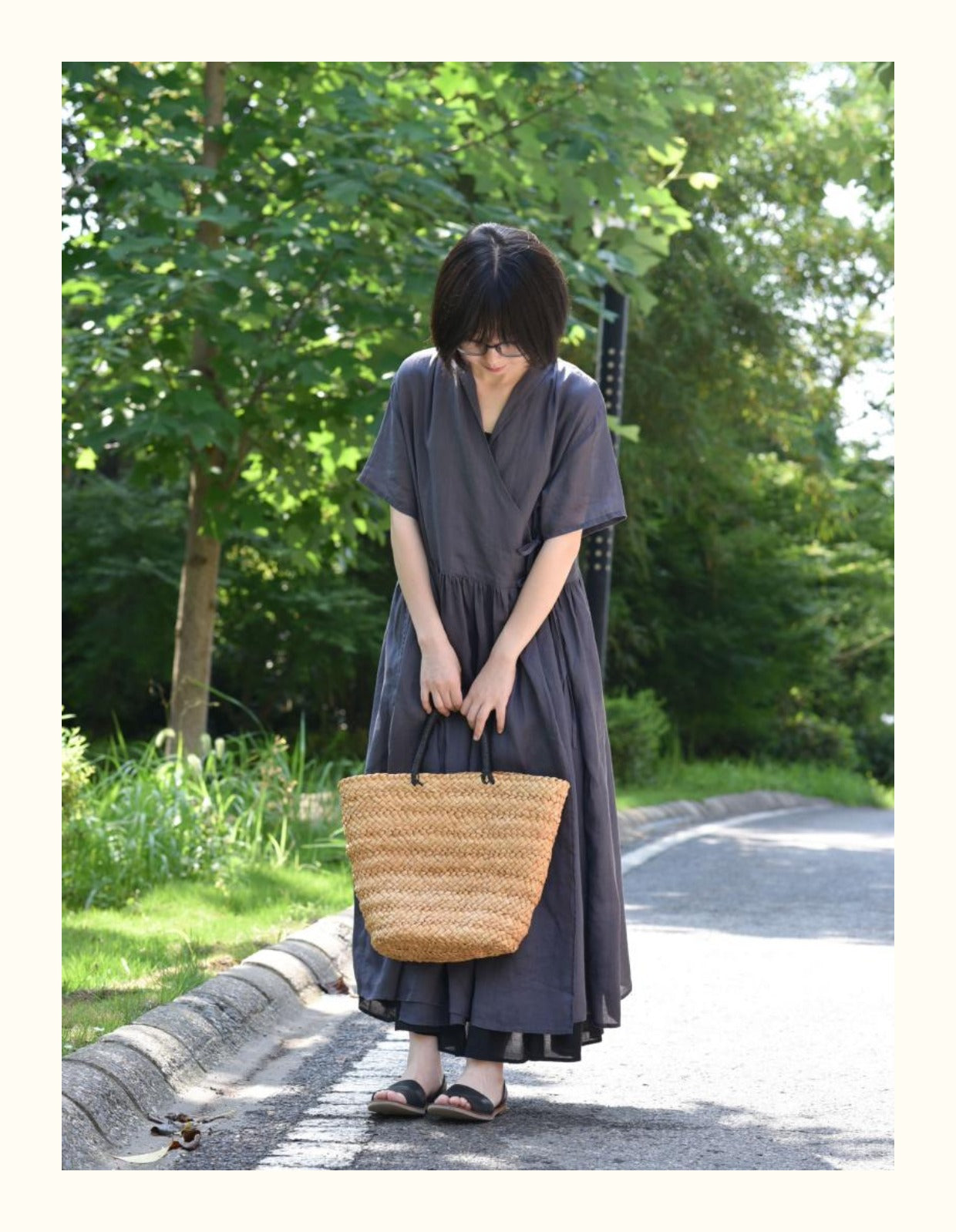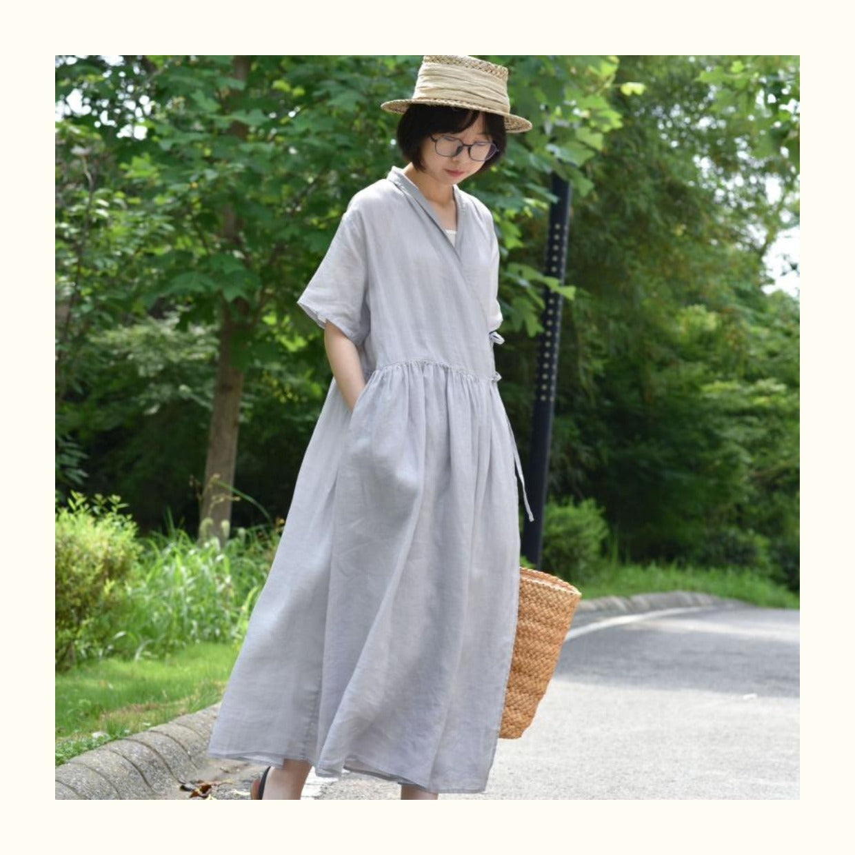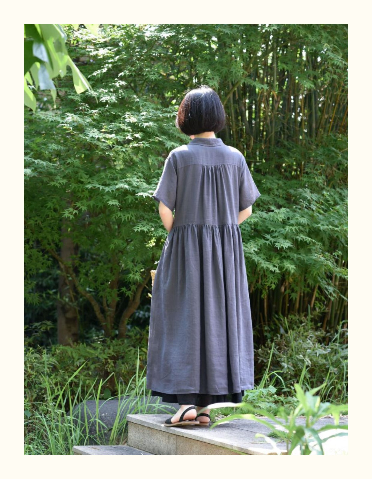 2色展開✩ショールカラー ウエストギャザー ラミー カシュクール ドレス ✩
