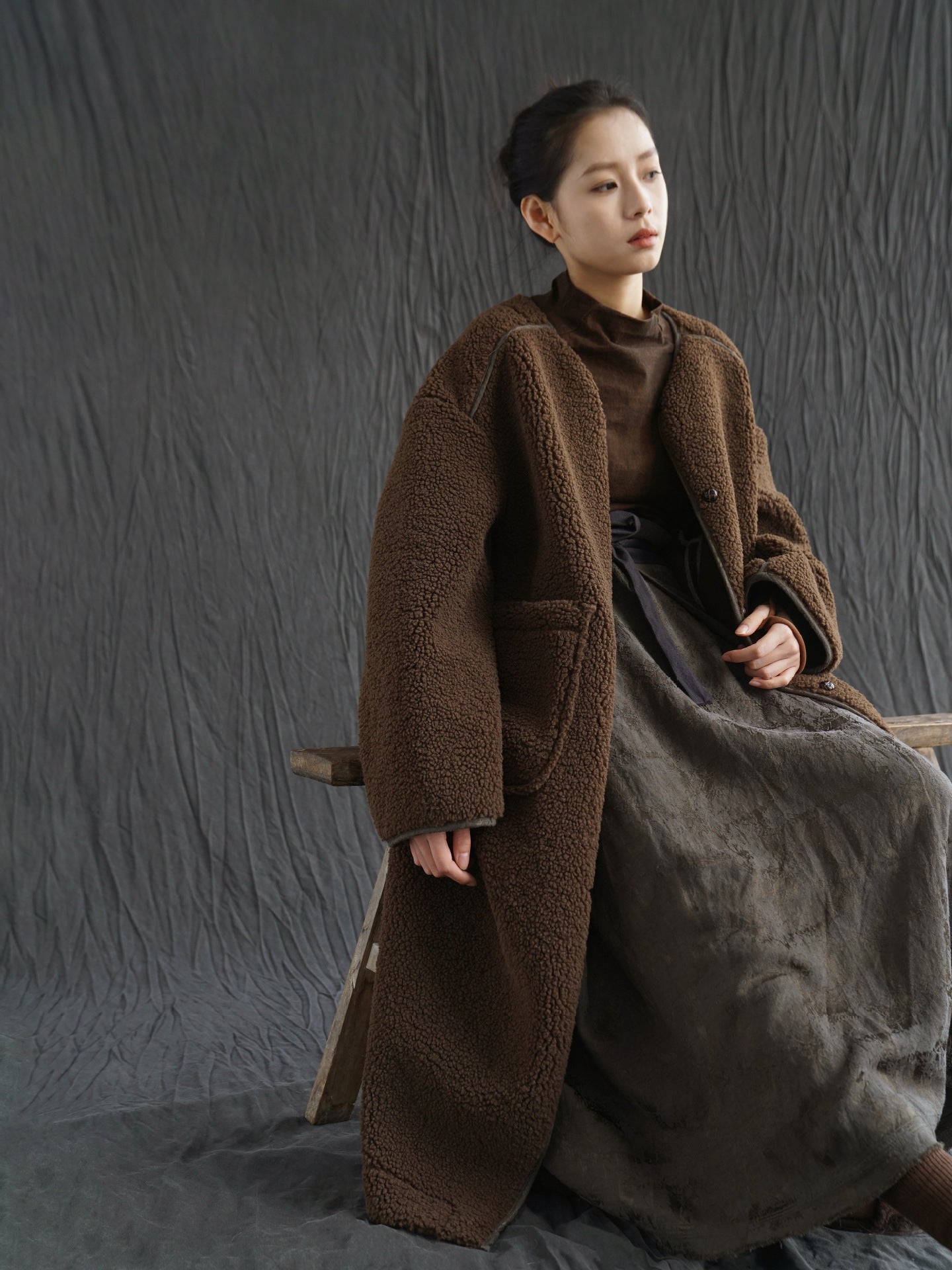 2色展開◇ドロップショルダーゆったりシルエットボアコート◇