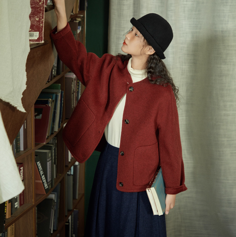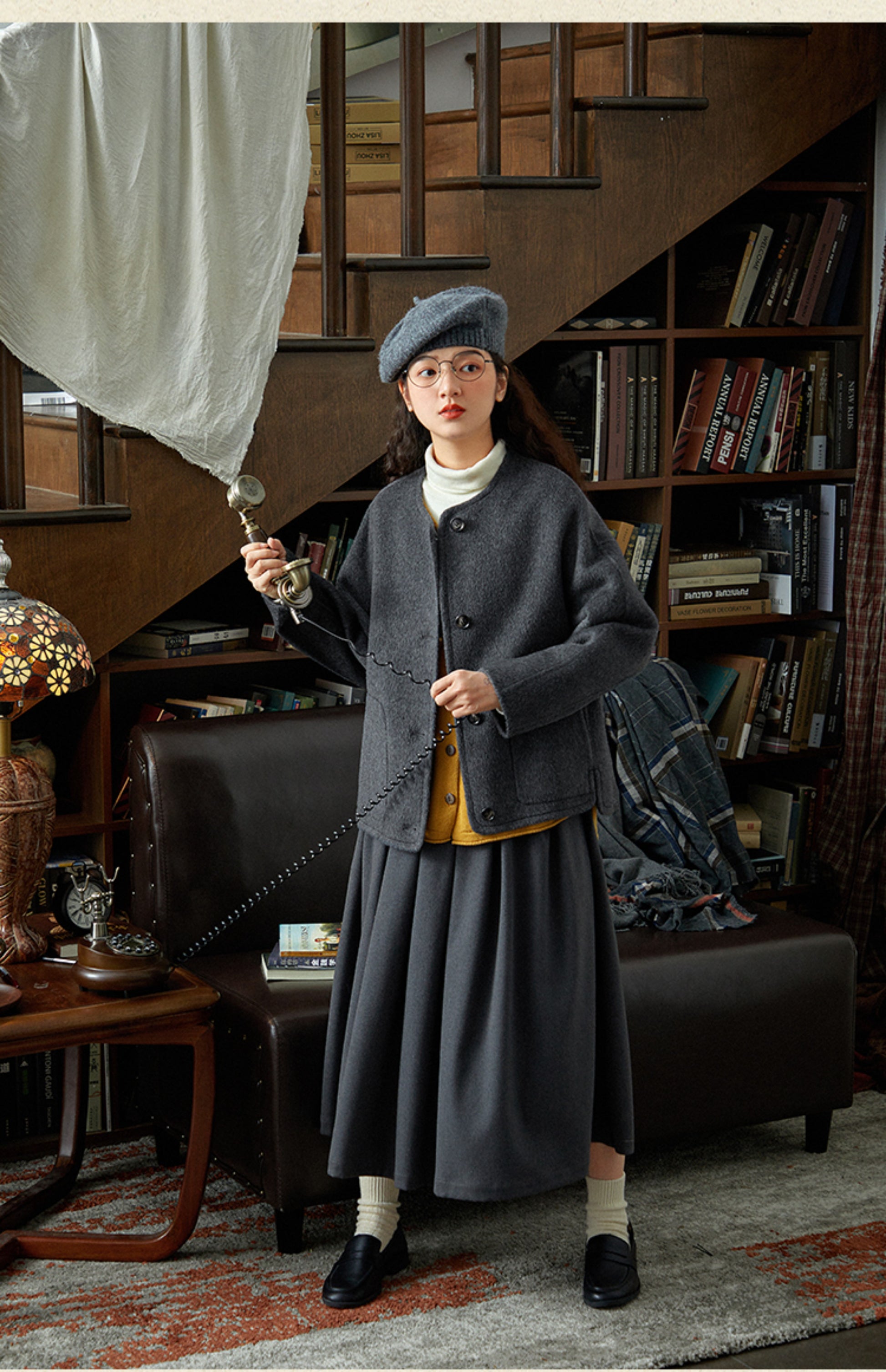 2色展開△今年も気分のノーカラー△ウール100% ノーカラー ドロップショルダージャケット△S/Mサイズ