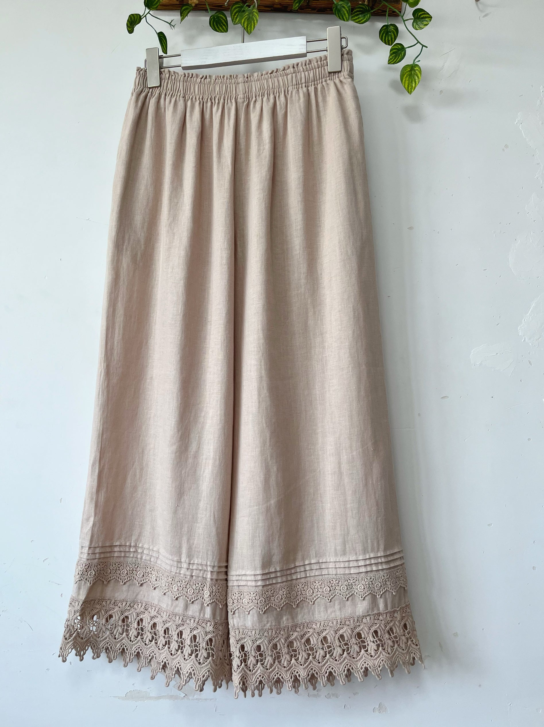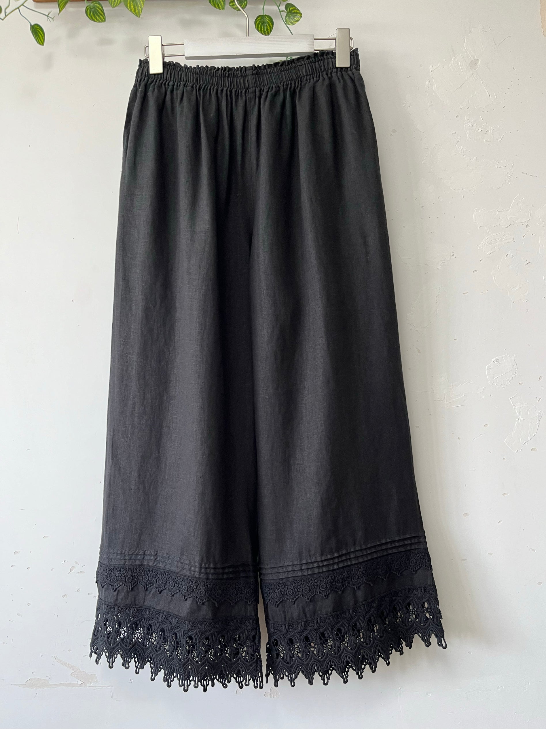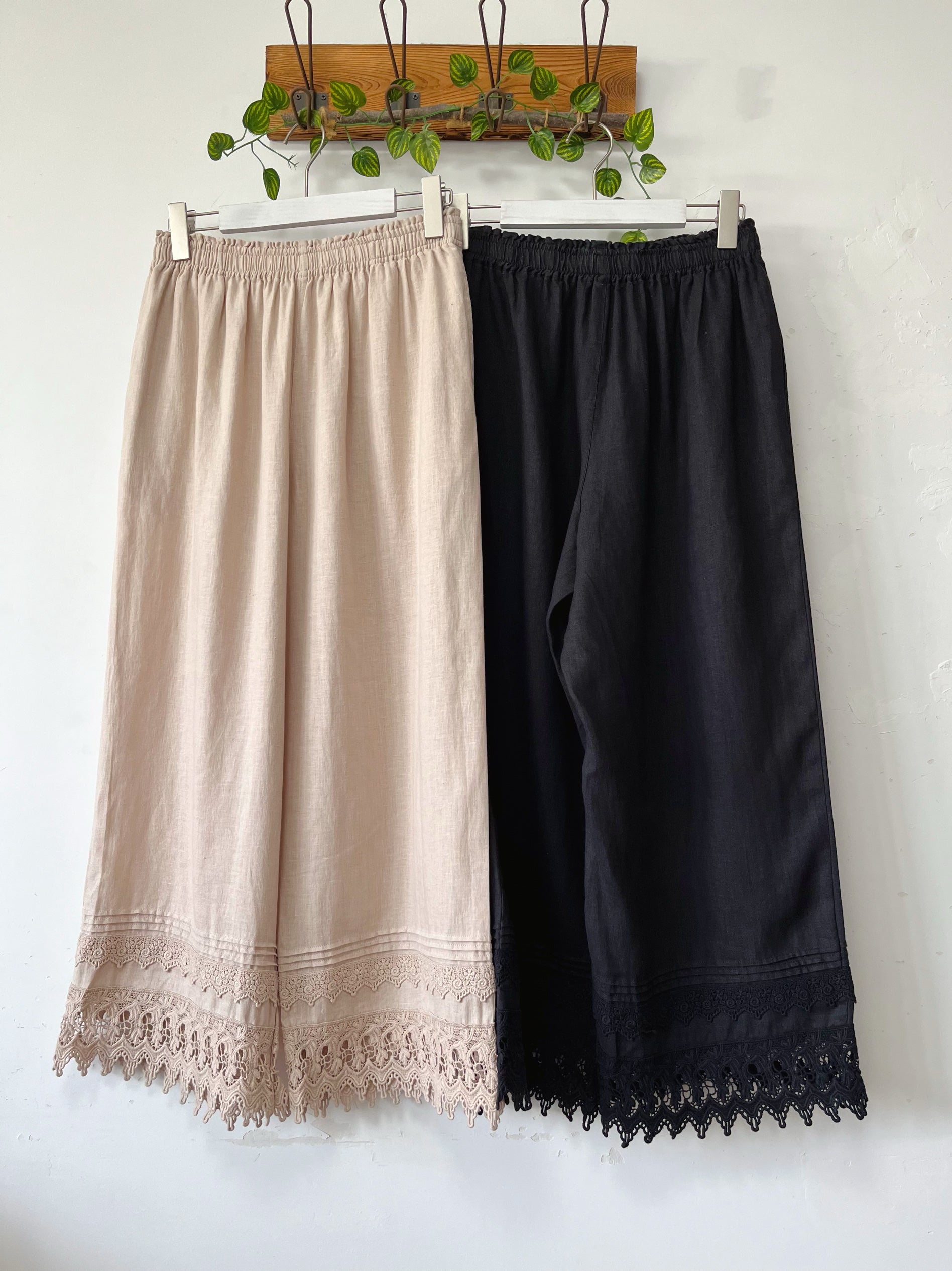 2色展開△9部丈 裾レース切替 イージーリネンパンツ▽