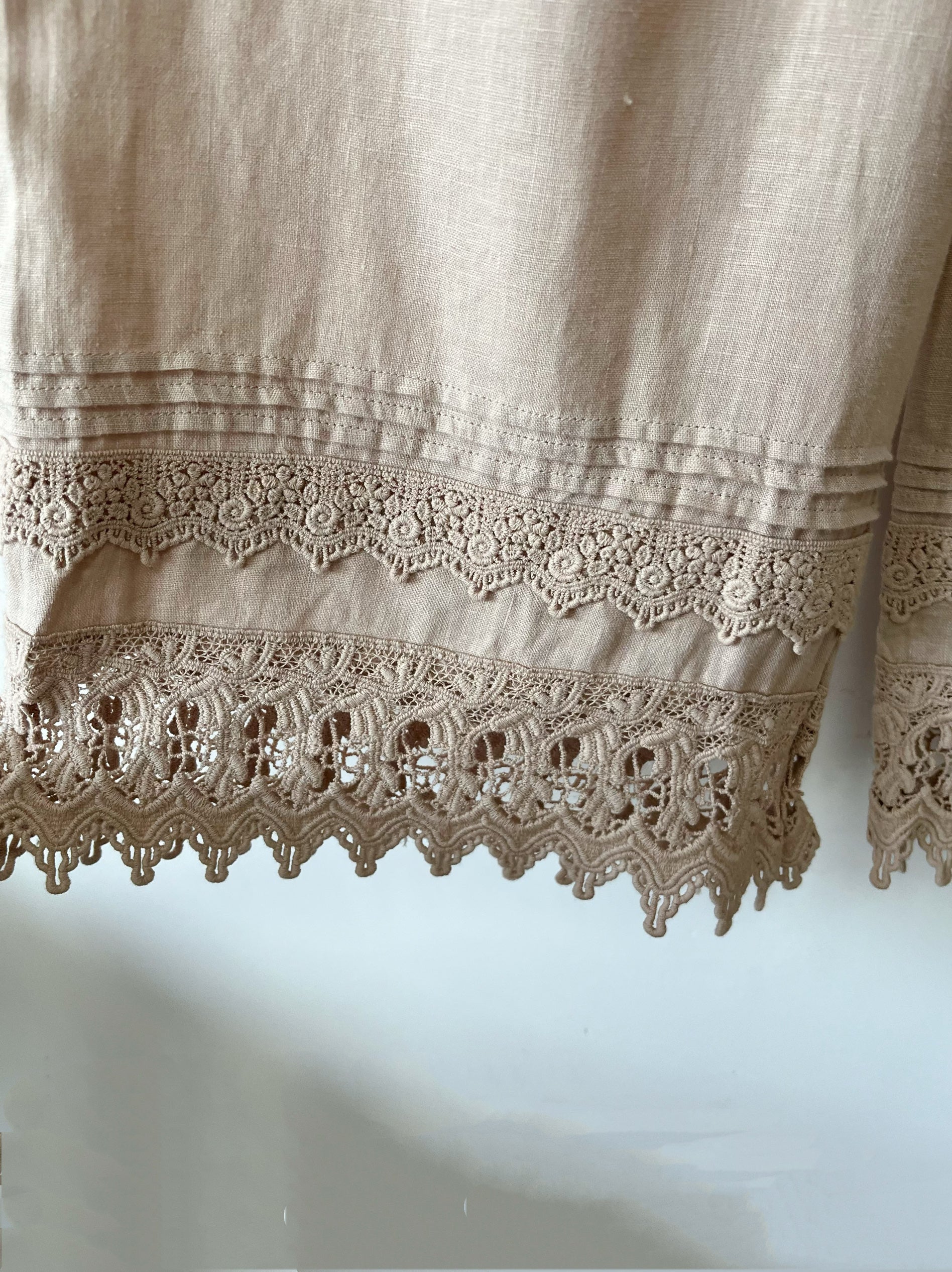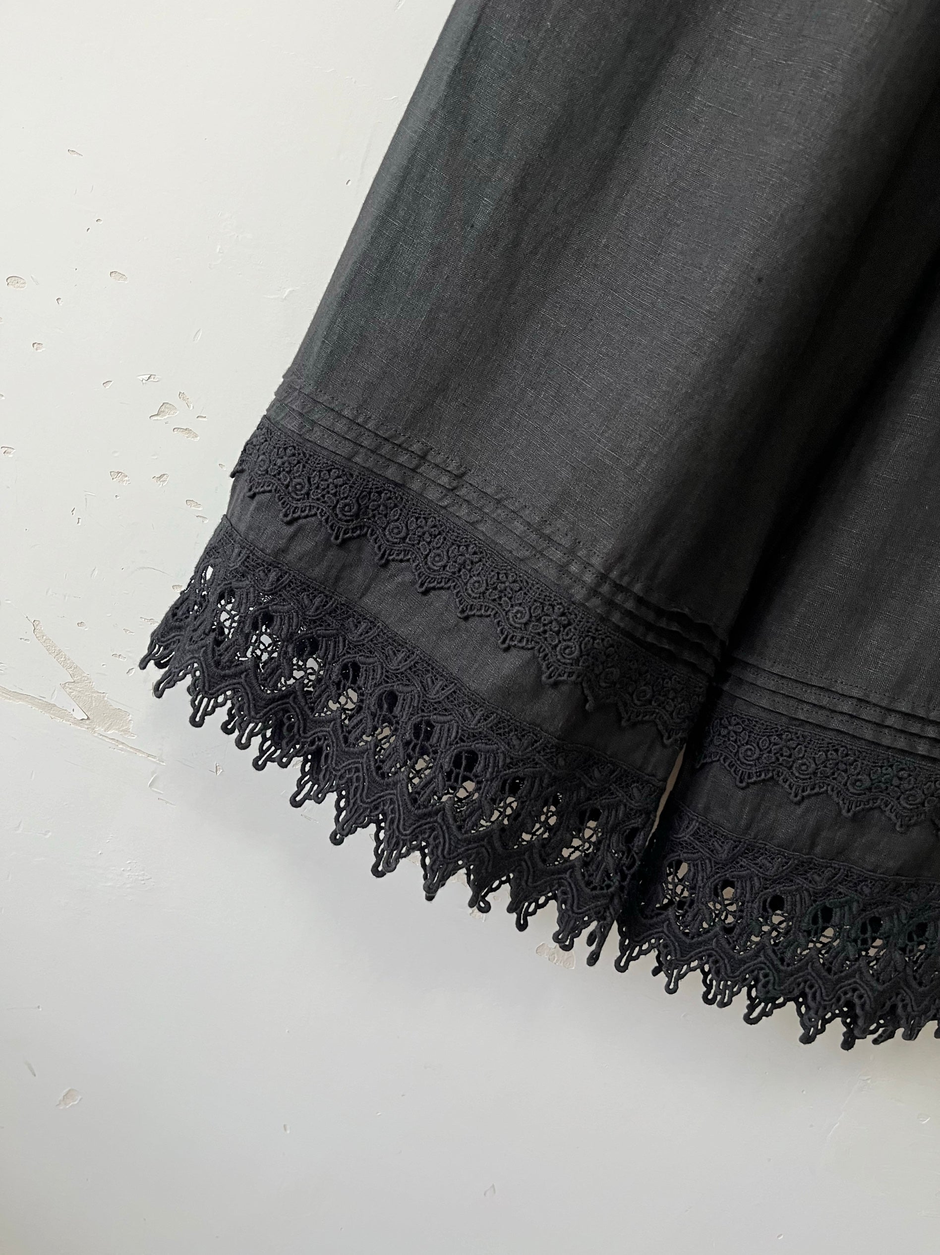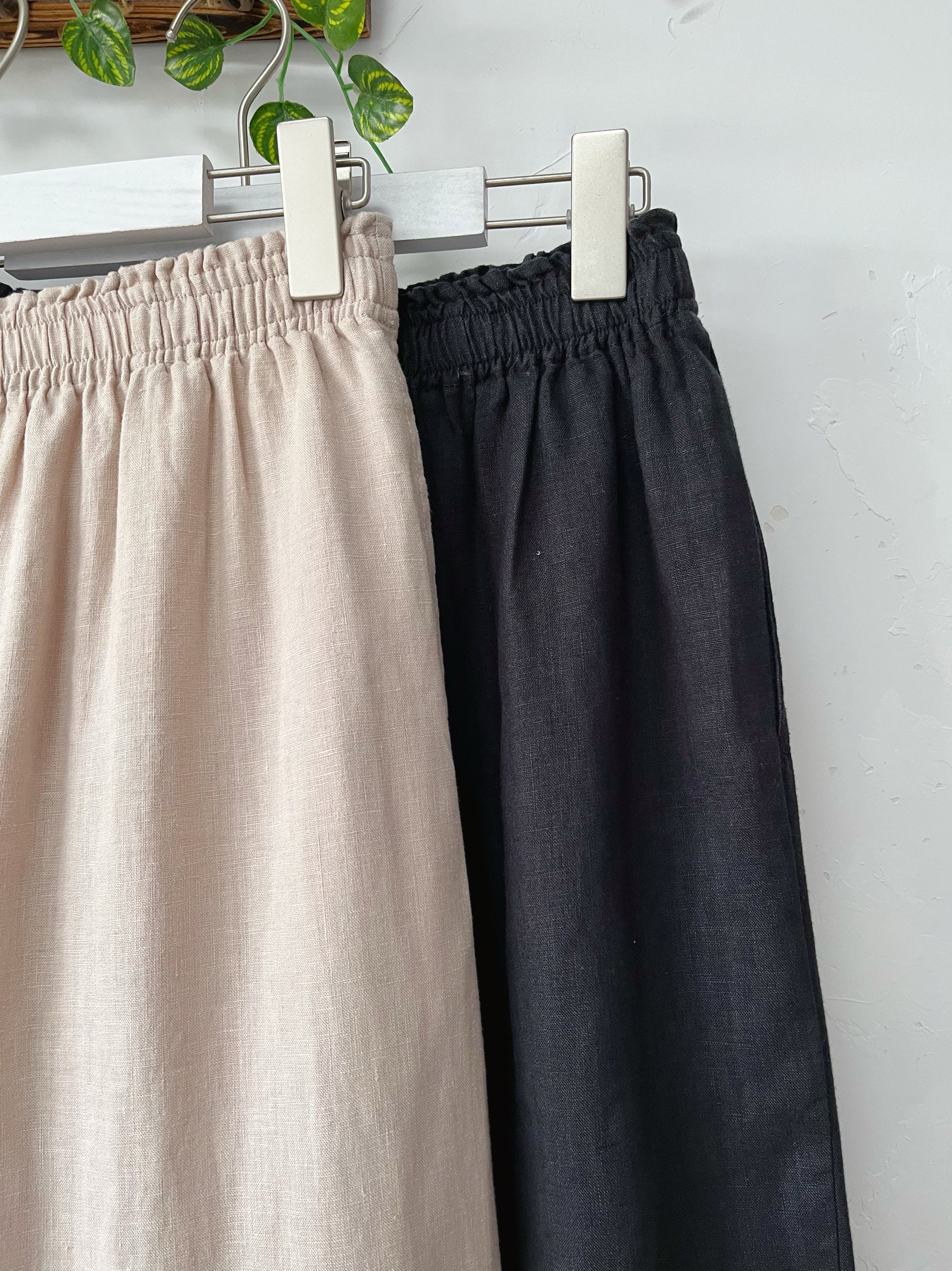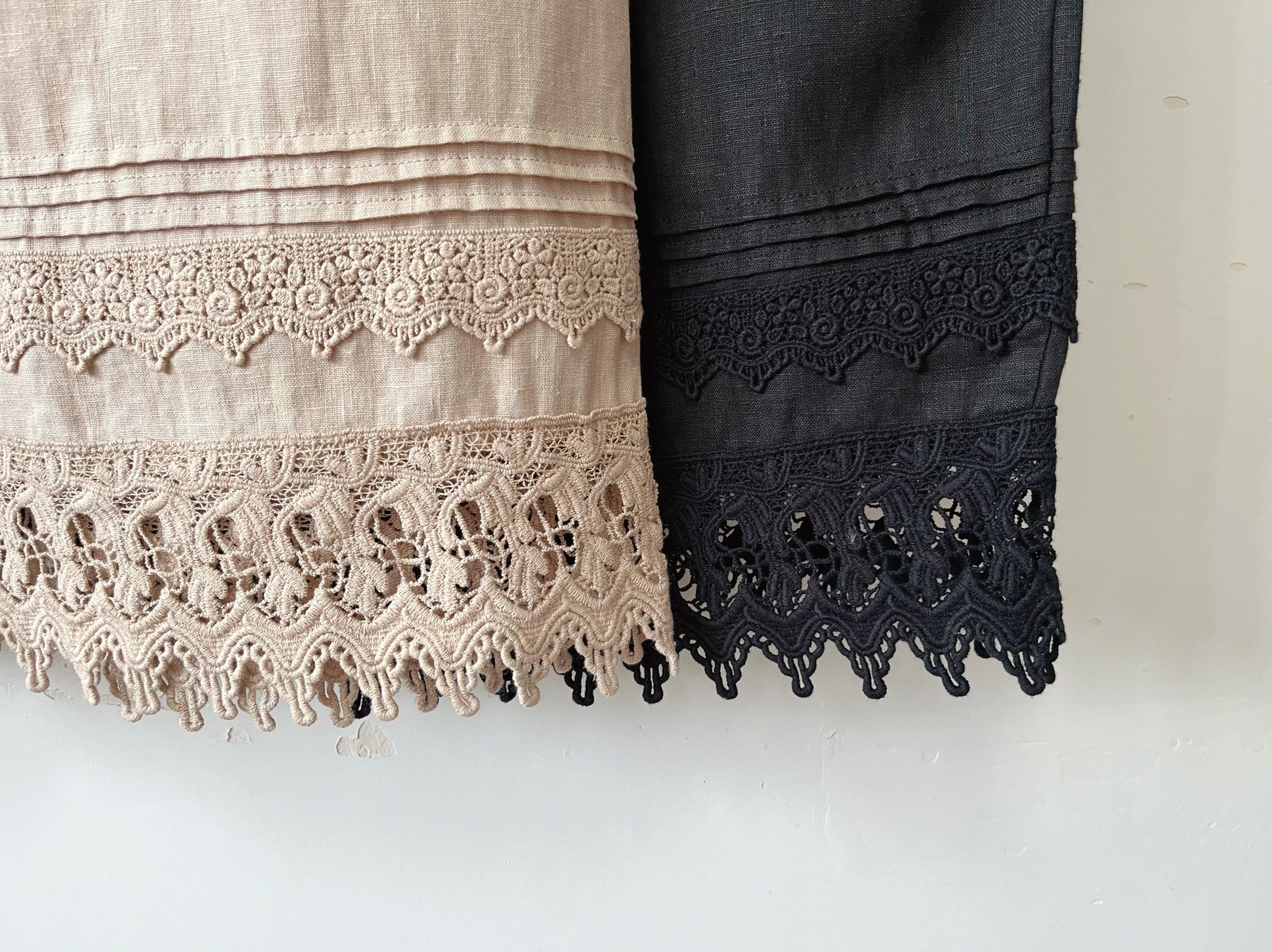 2色展開△9部丈 裾レース切替 イージーリネンパンツ▽