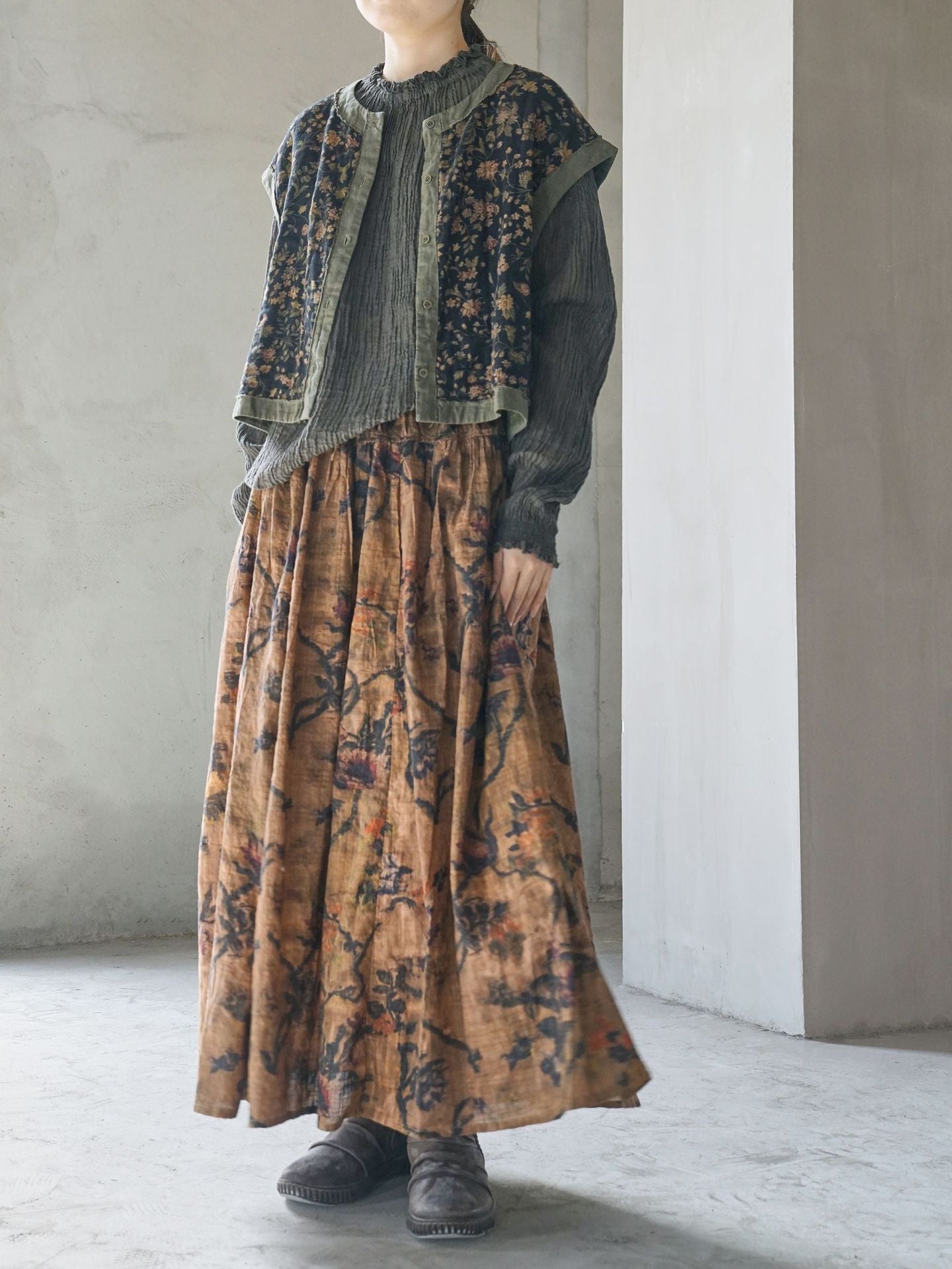 3色展開☆絶妙な色味の花柄が美しい☆切り替えデザインコットンベスト☆