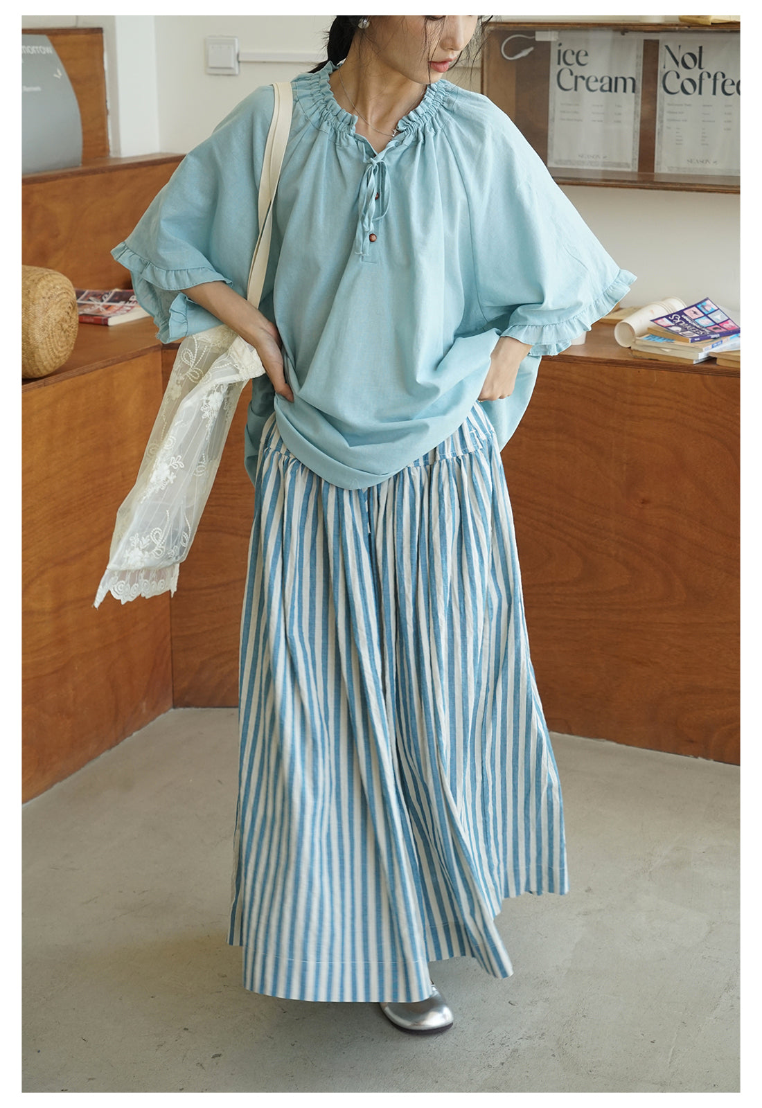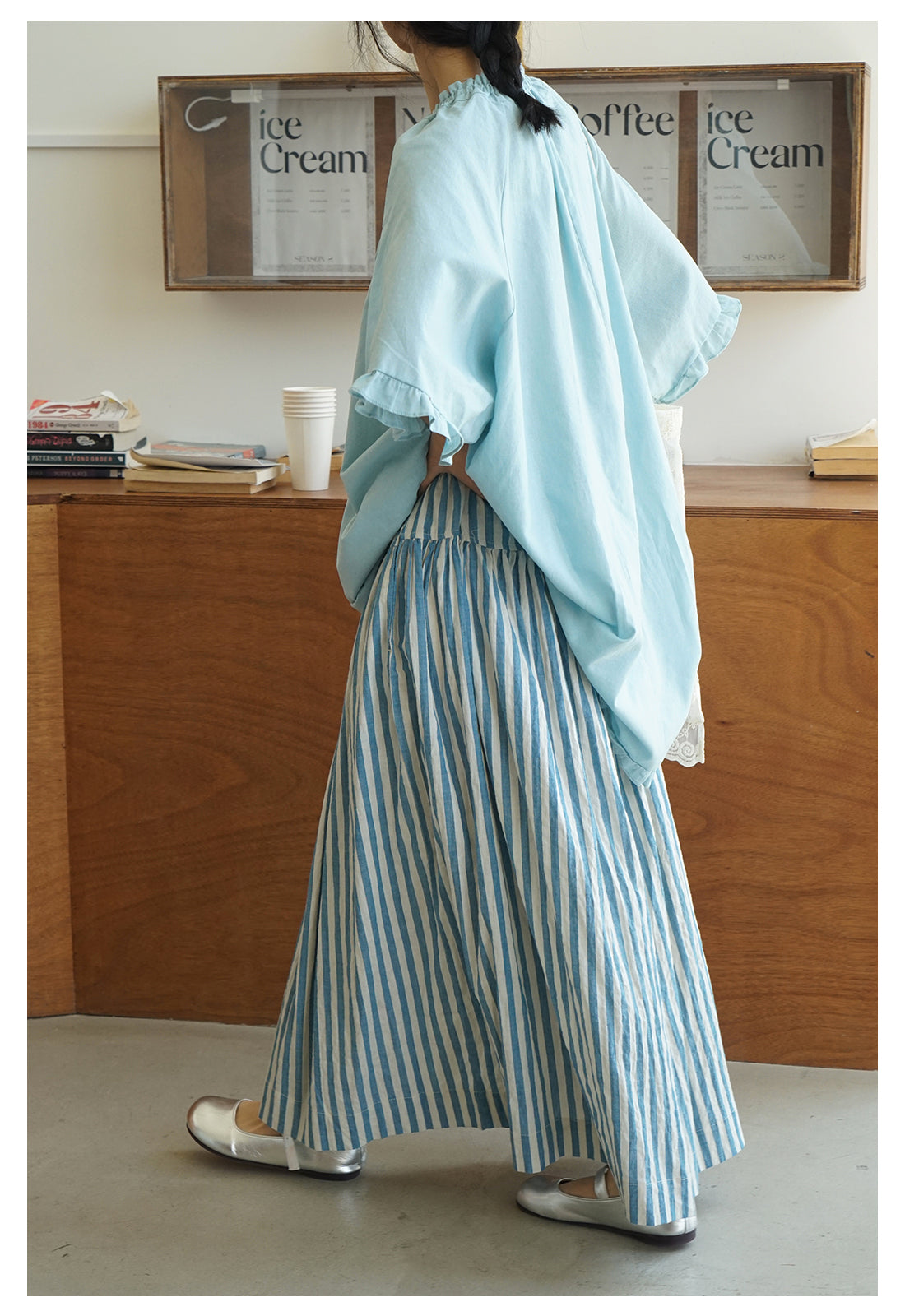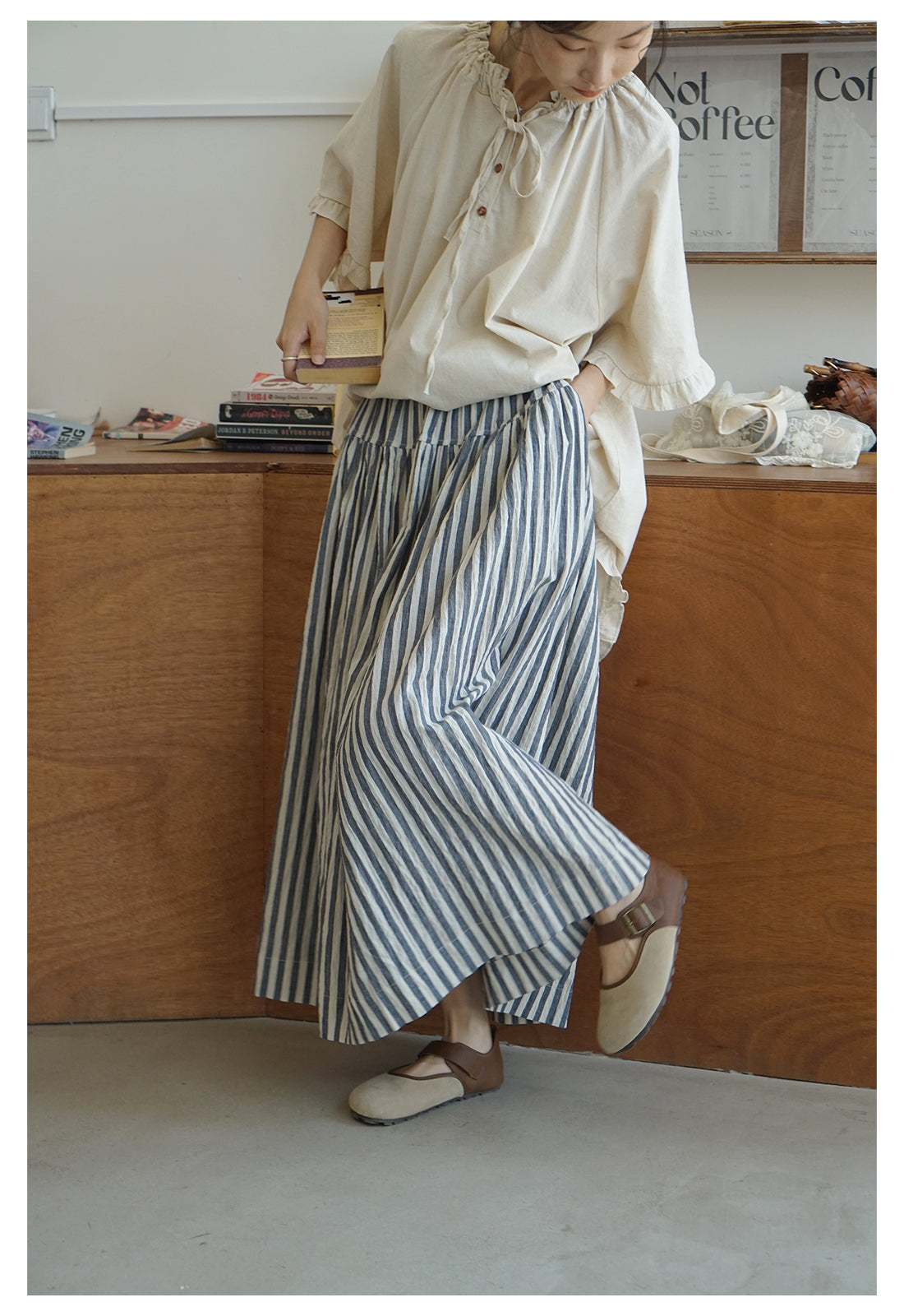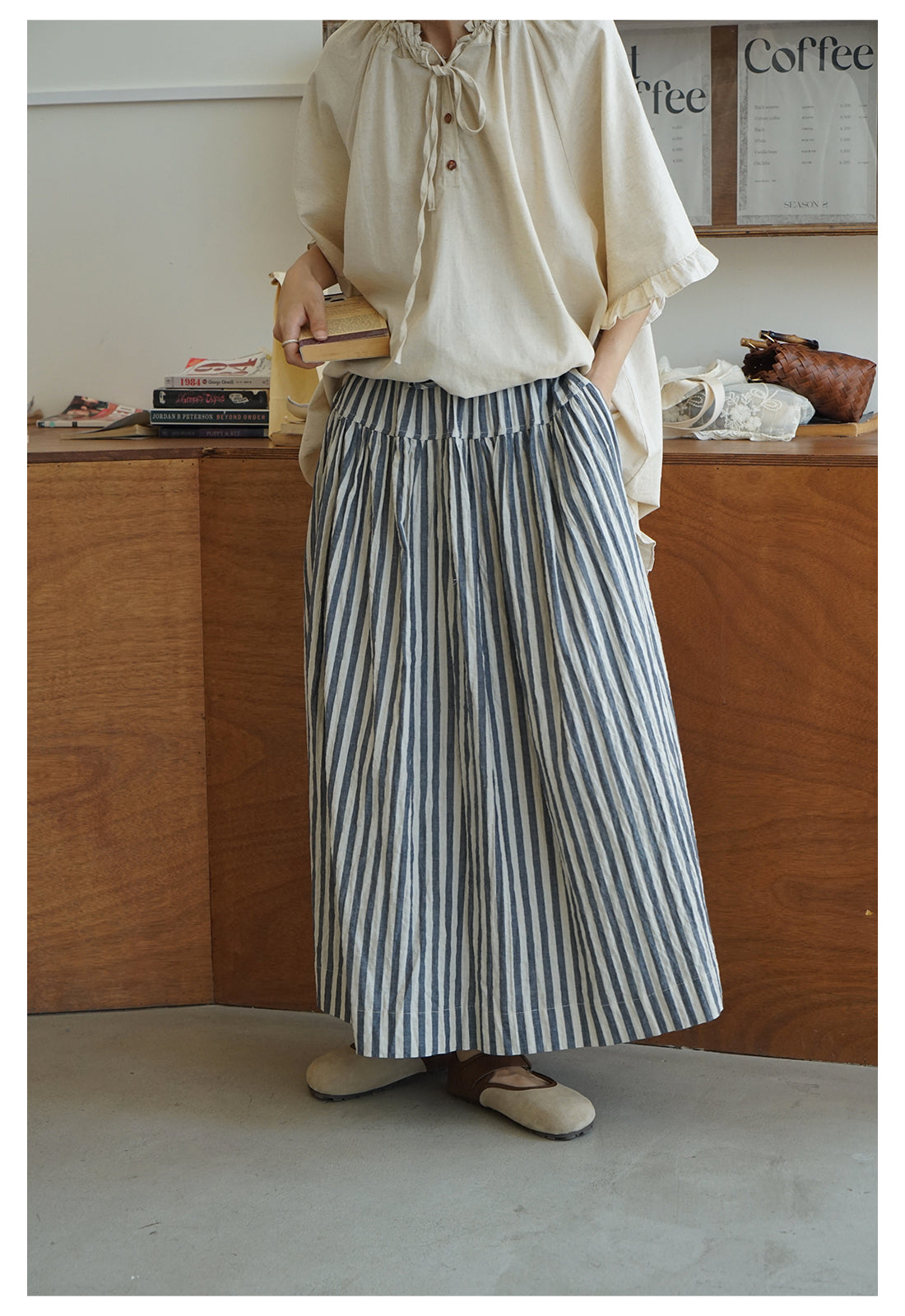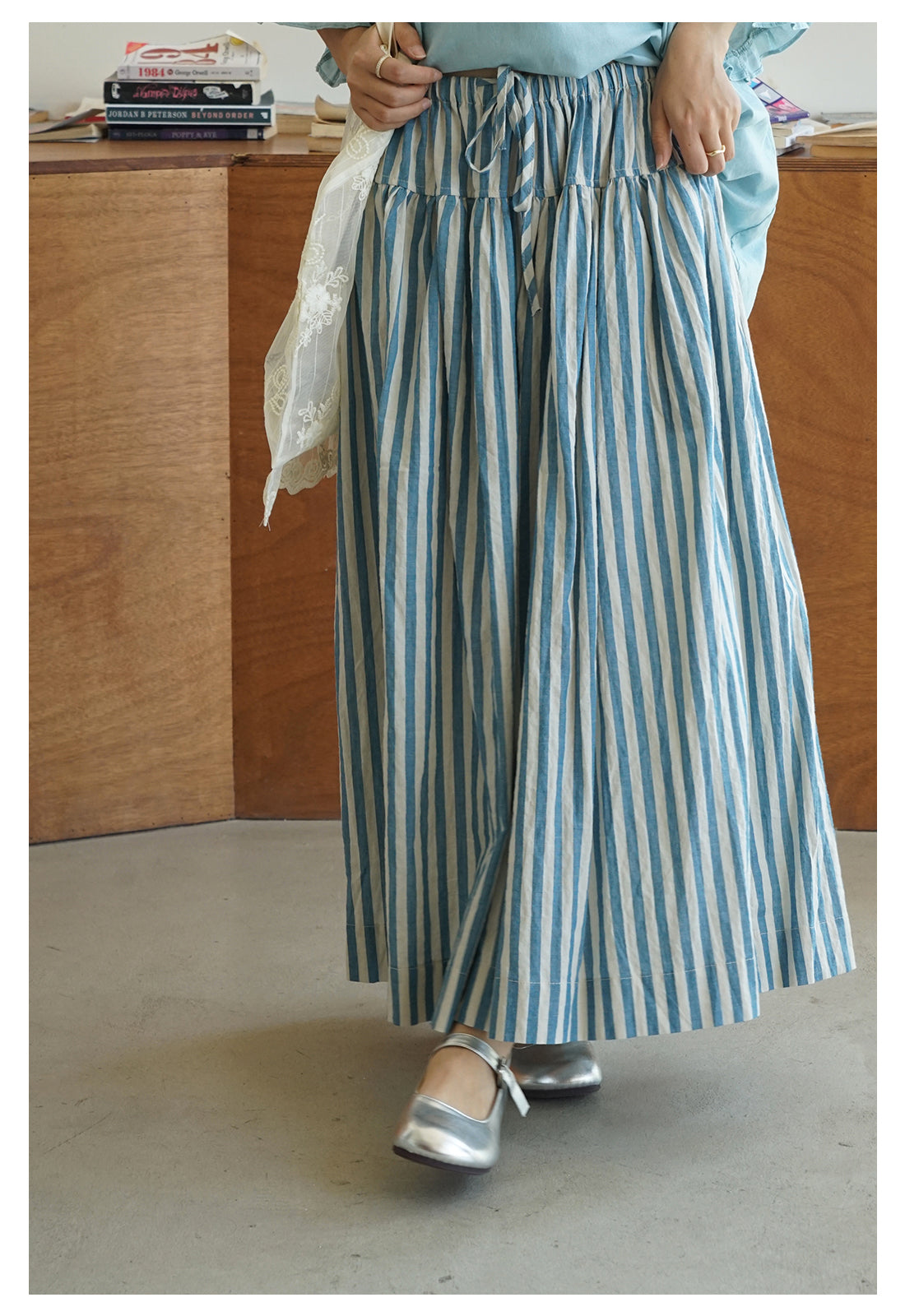 2色展開◇コットン ストライプ イージーロングスカート◇