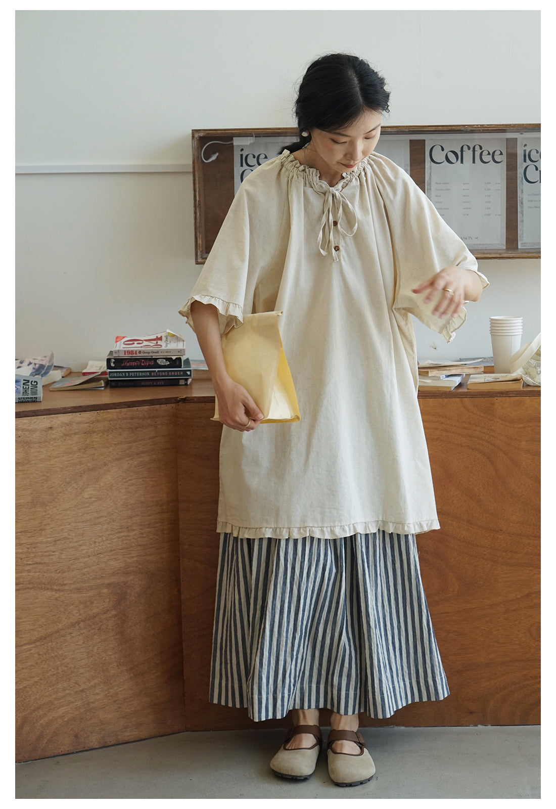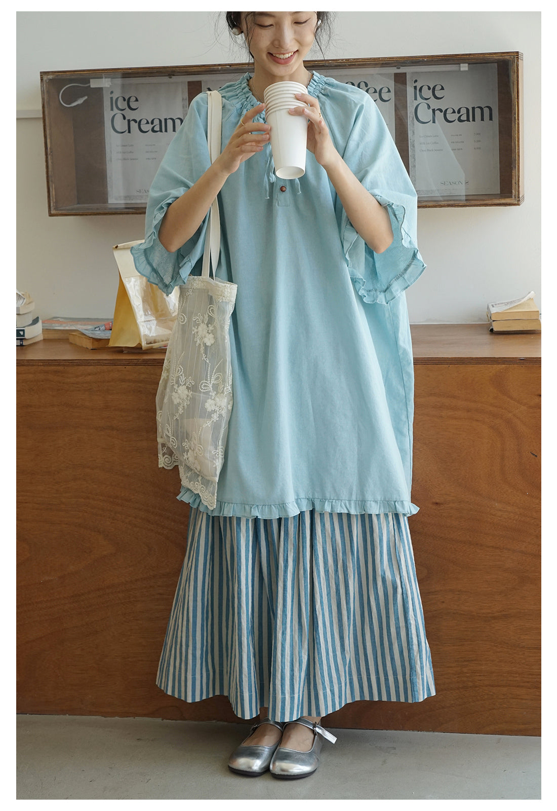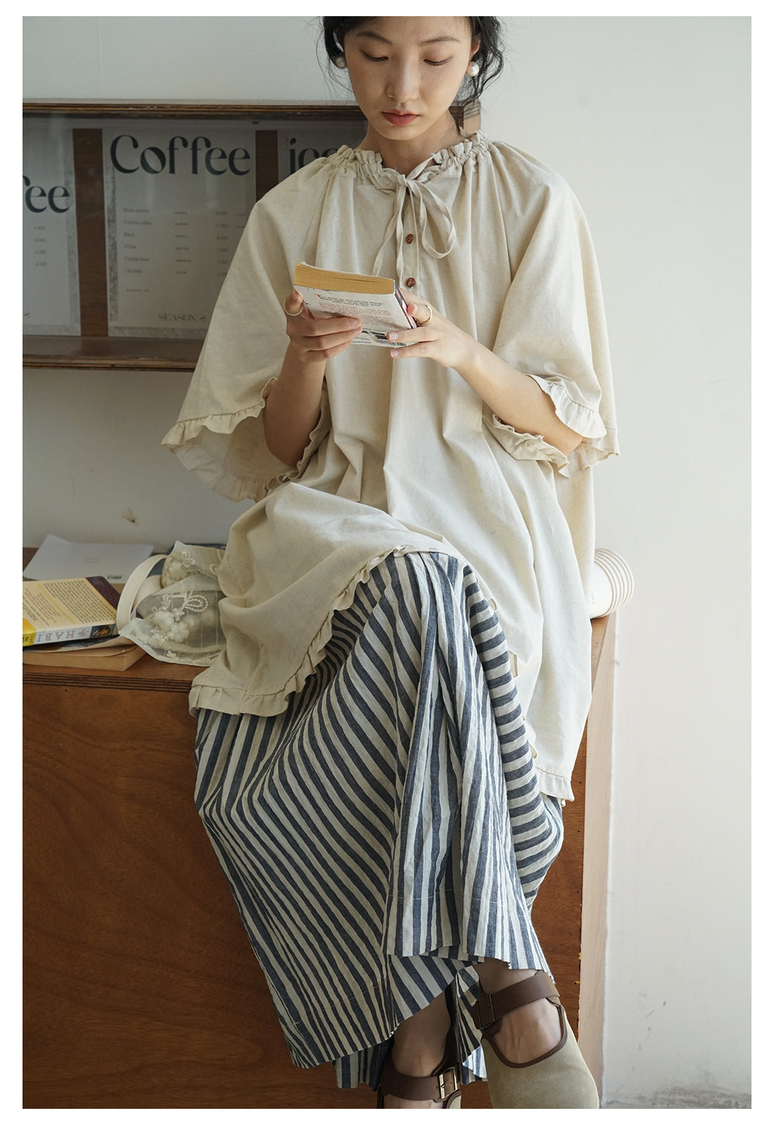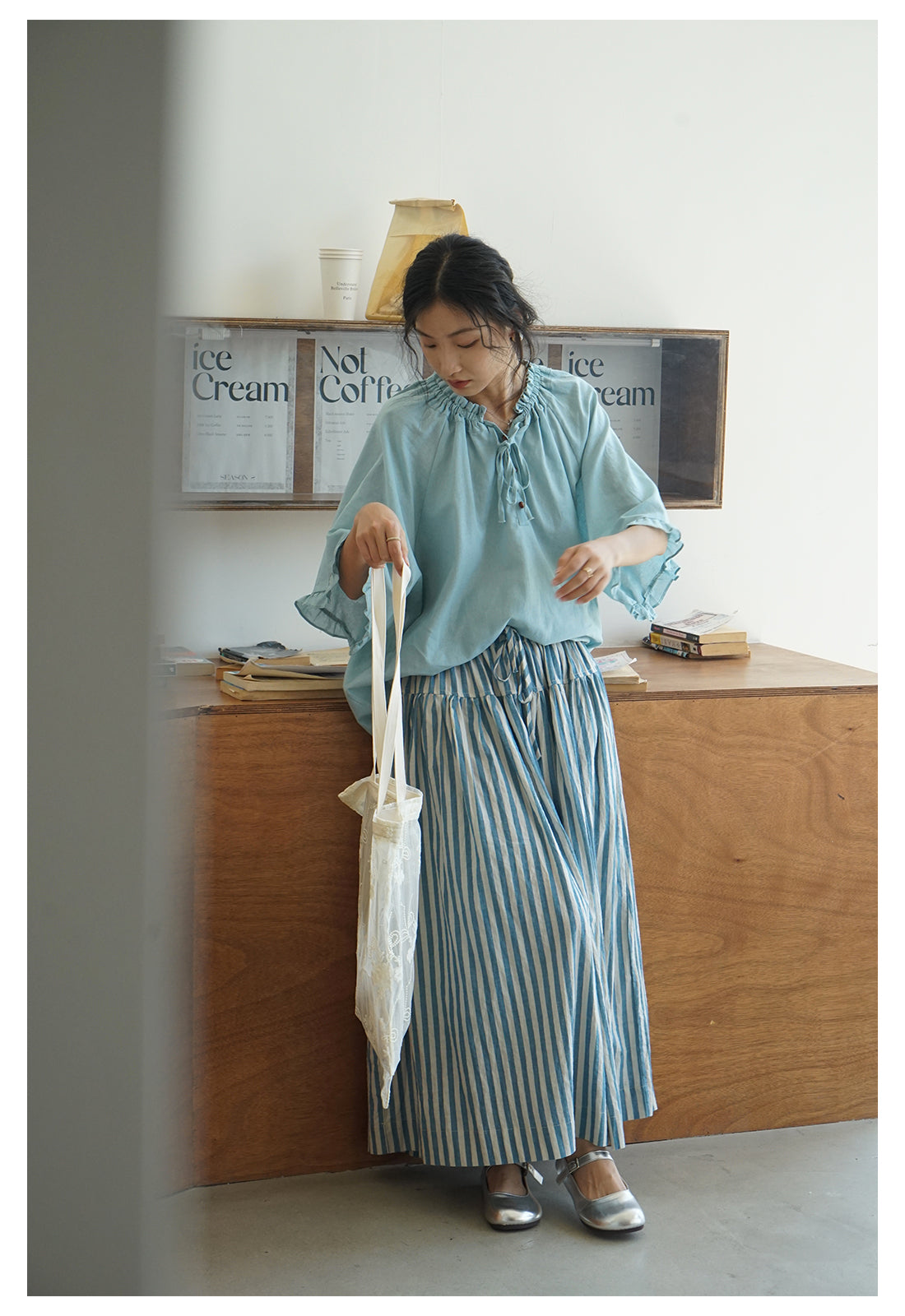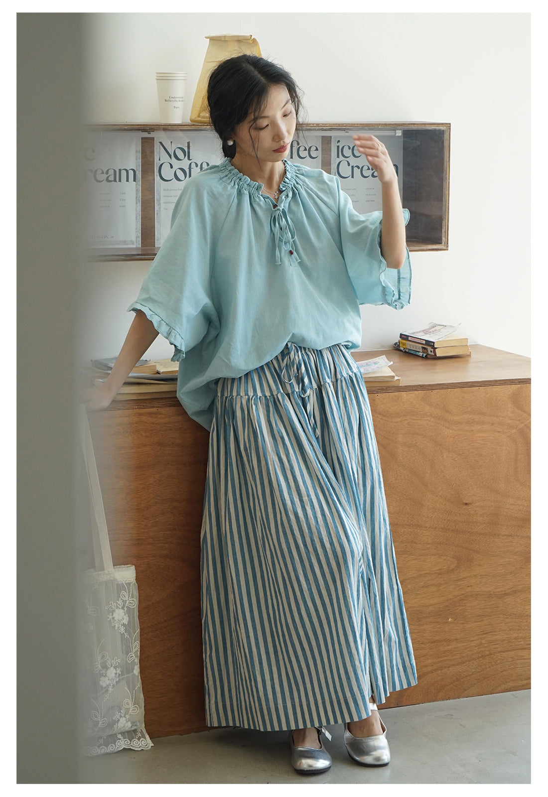 2色展開◇コットン ストライプ イージーロングスカート◇