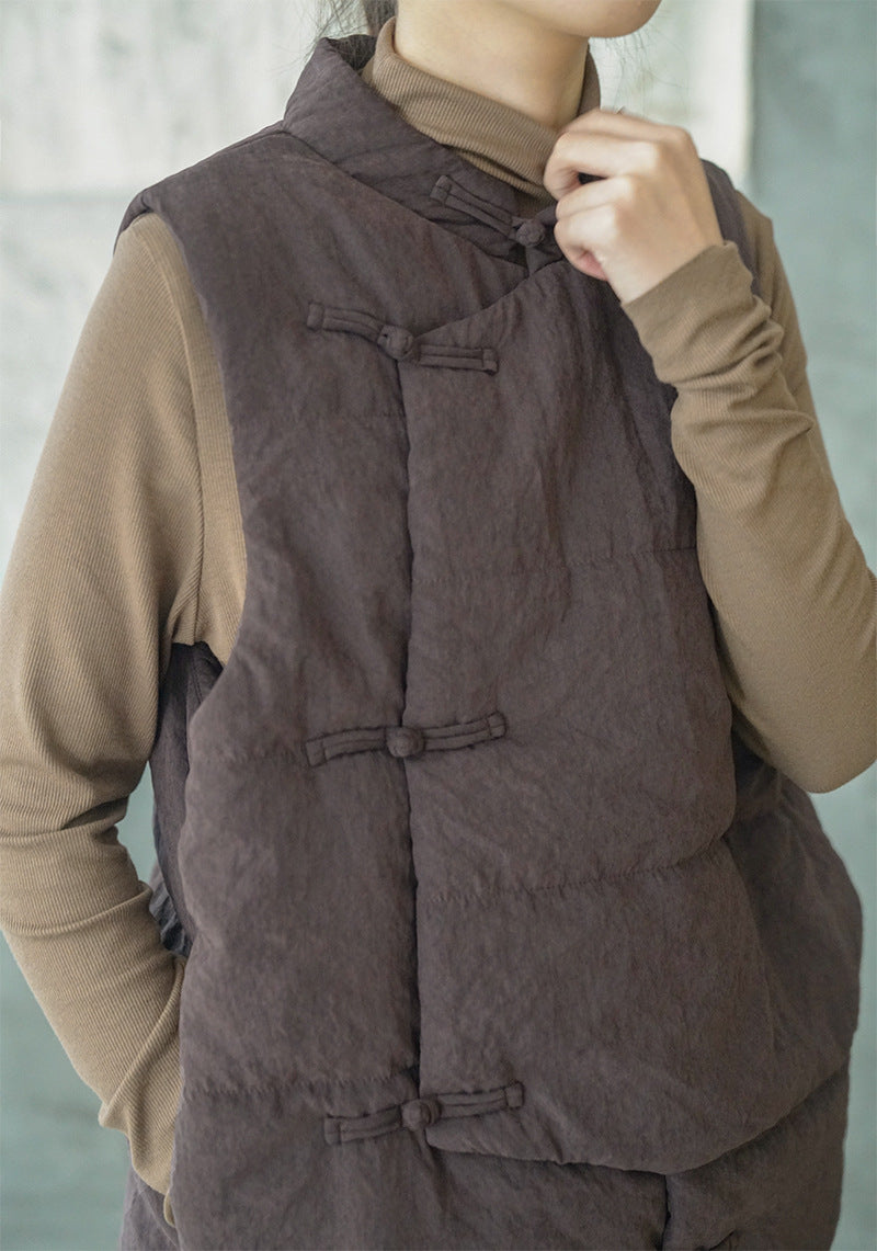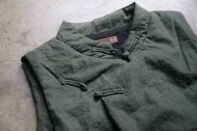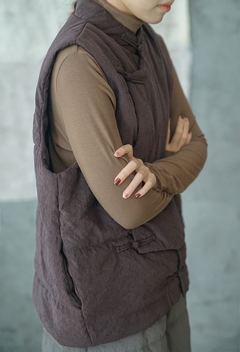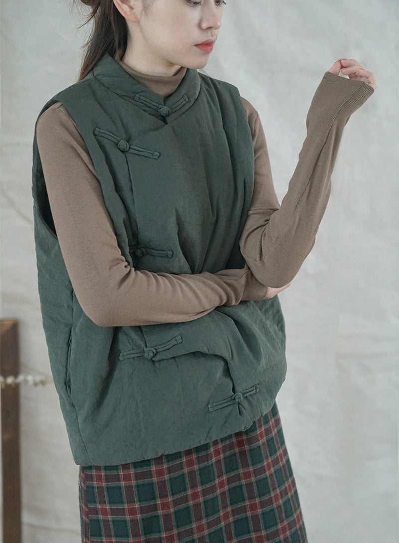 4色展開◇軽量暖か◎オリエンタルデザイン コットン中綿入りスタンドカラーベスト◇
