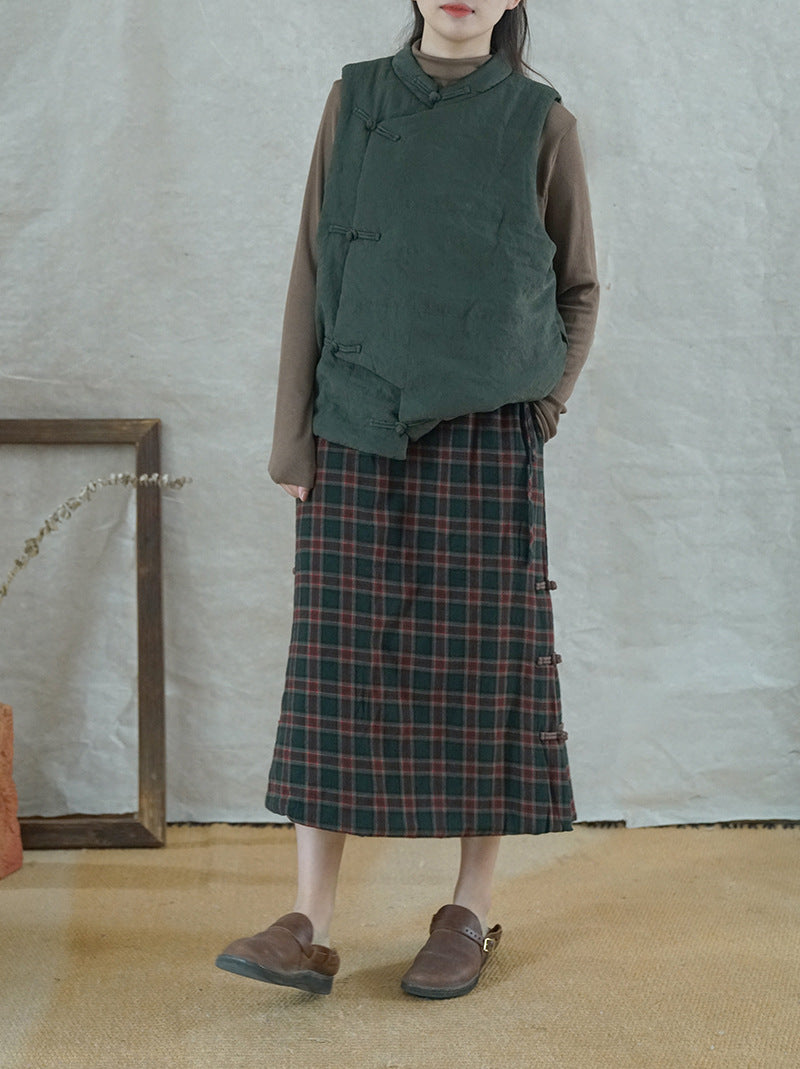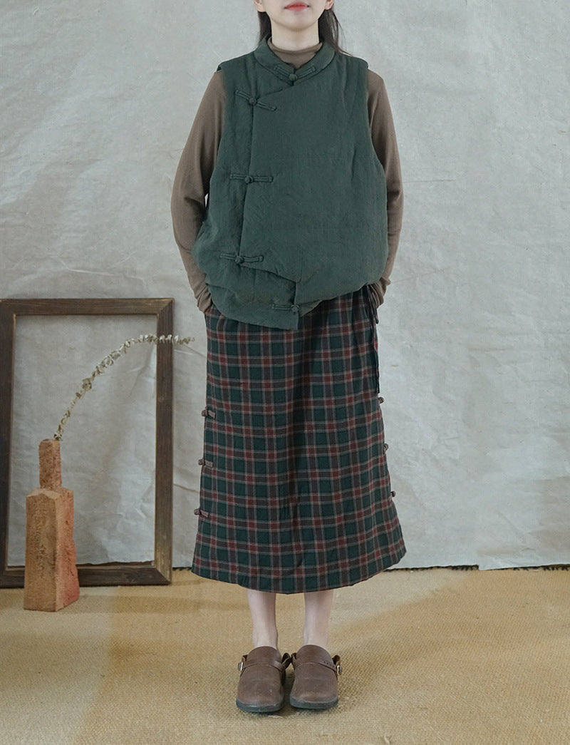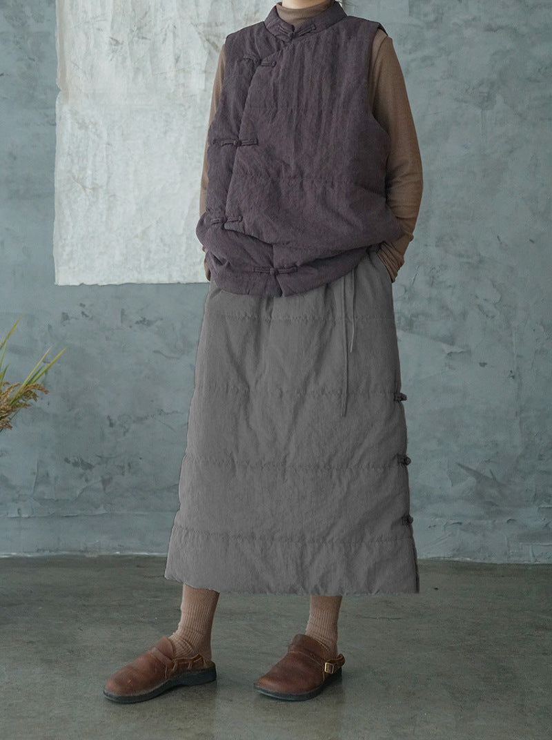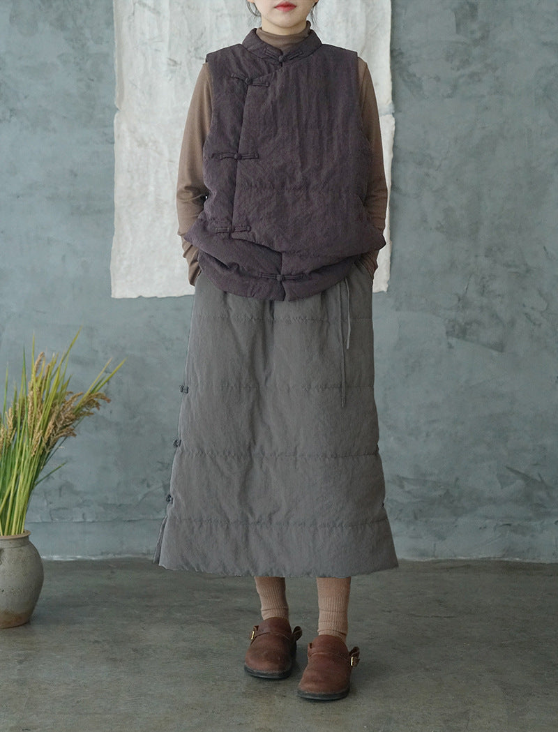 4色展開◇軽量暖か◎オリエンタルデザイン コットン中綿入りスタンドカラーベスト◇