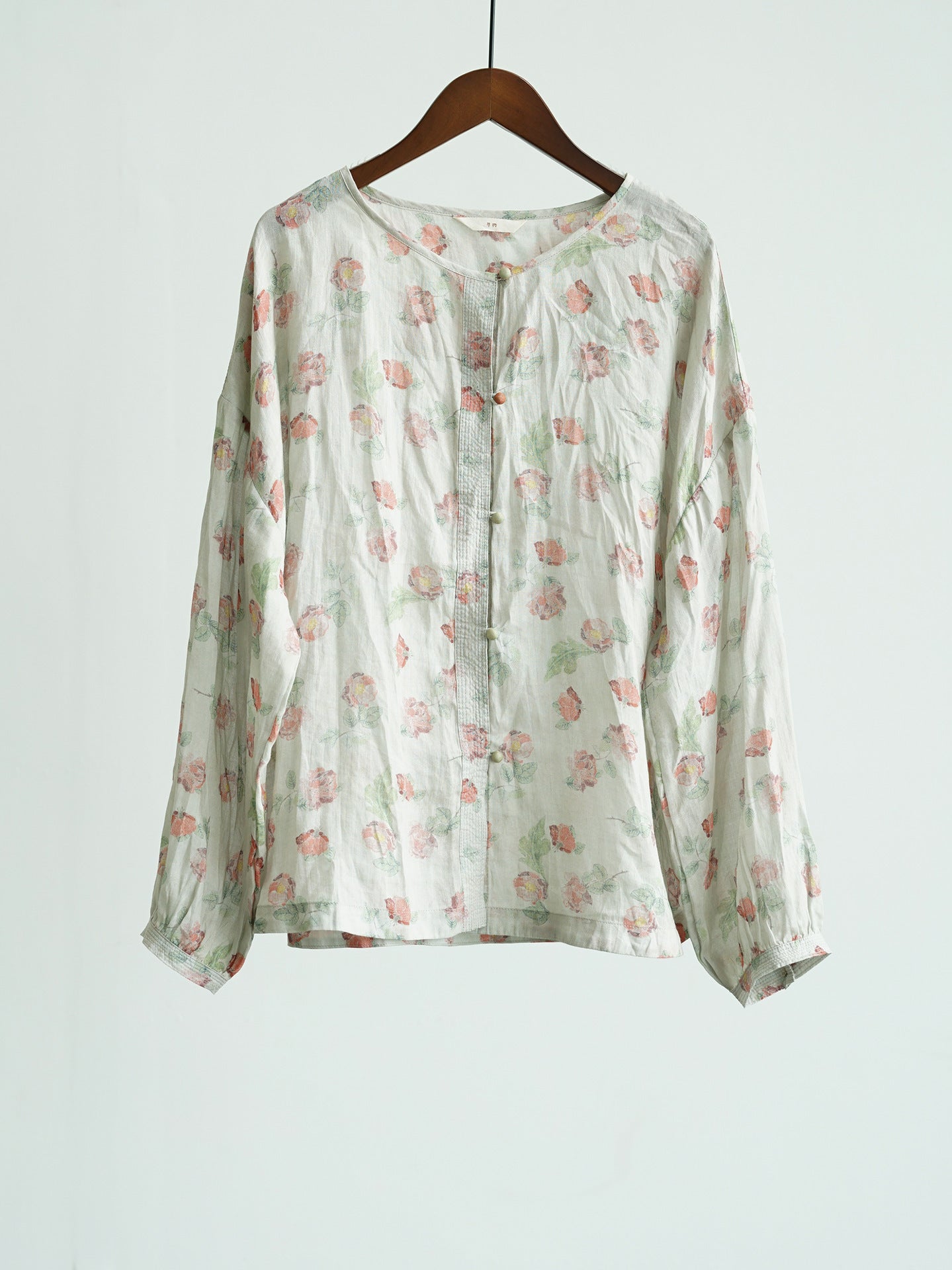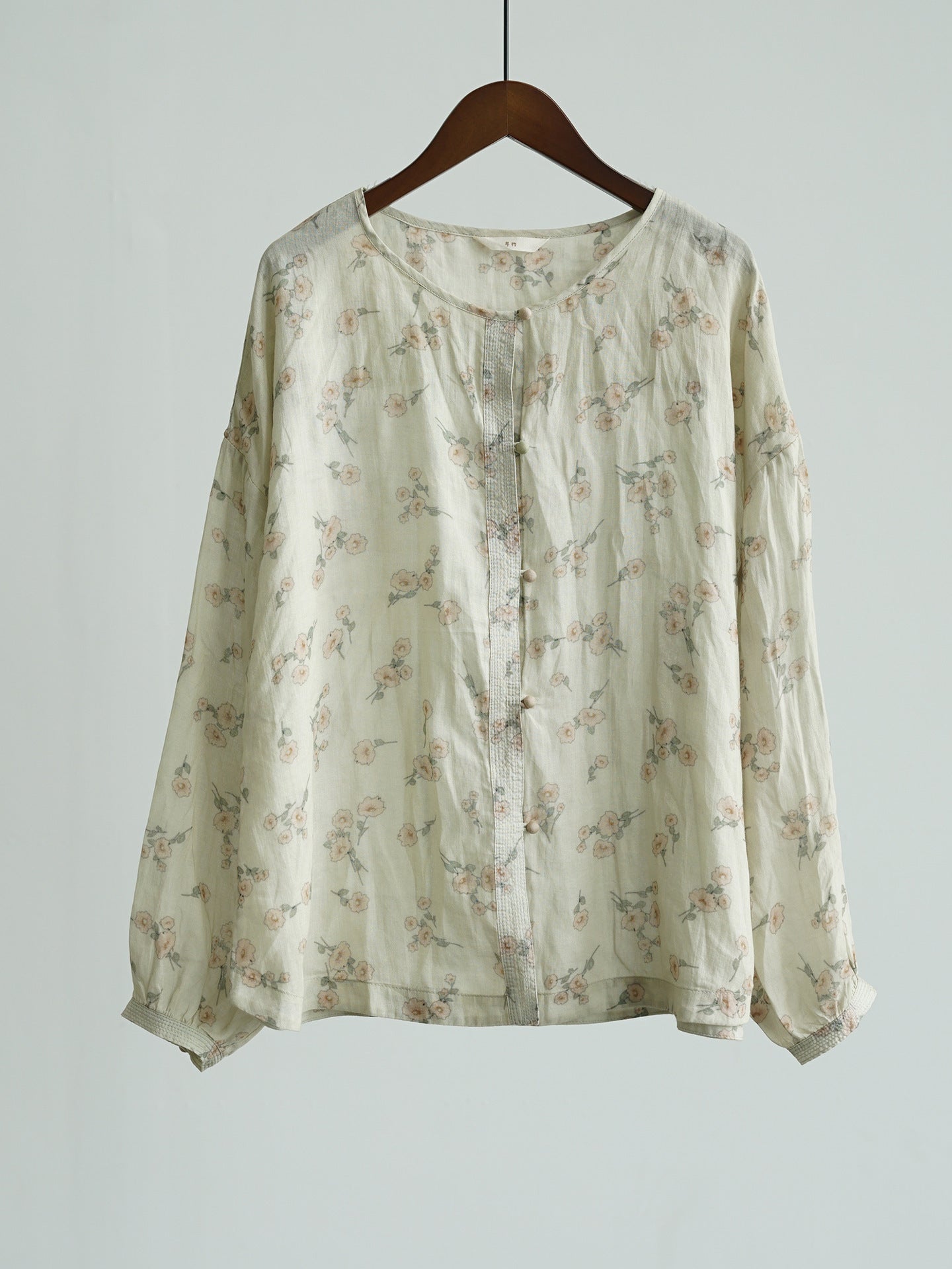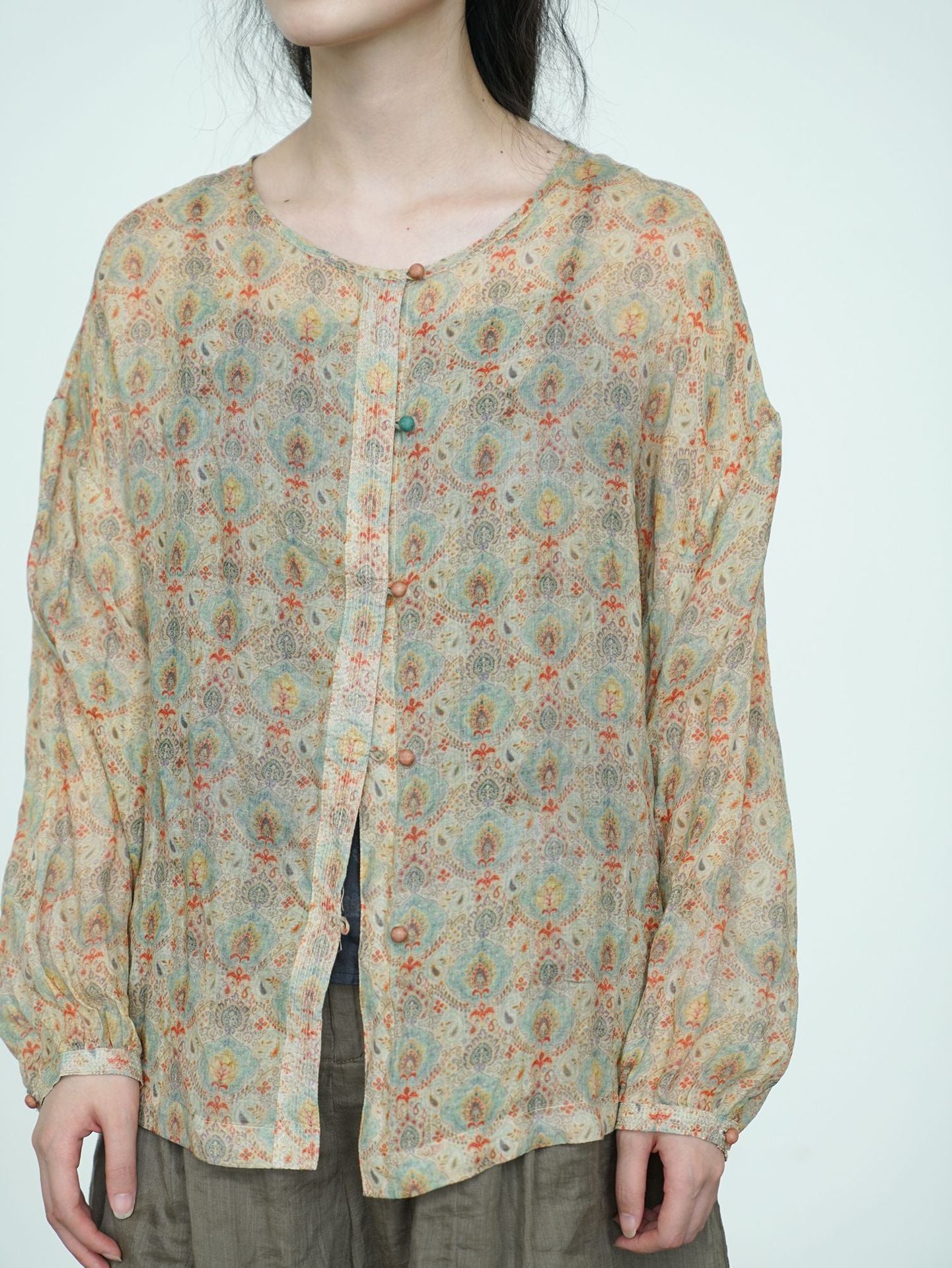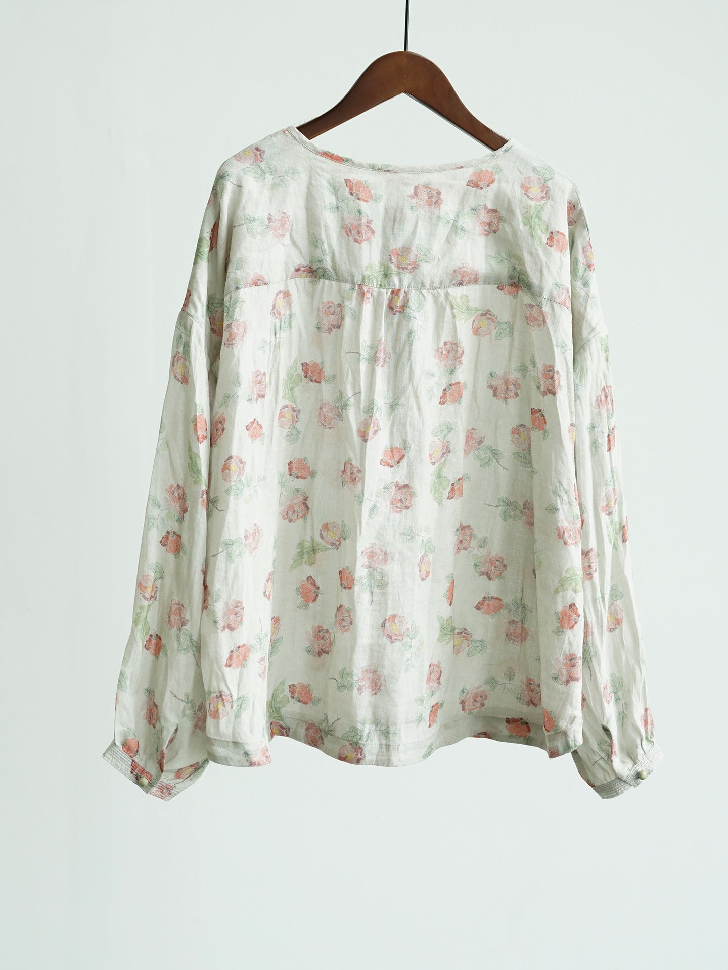 4色展開◇絶妙な色味のボタニックプリント◇ラミー ゆったりブラウス シャツ◇