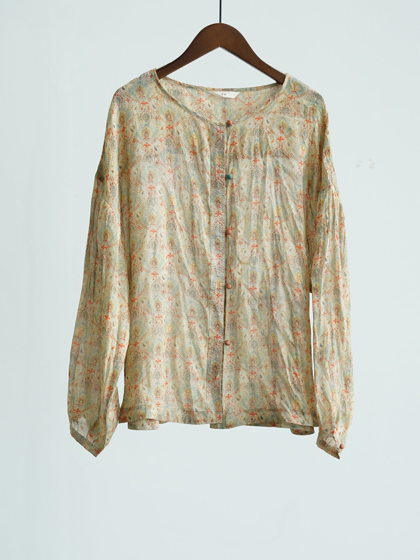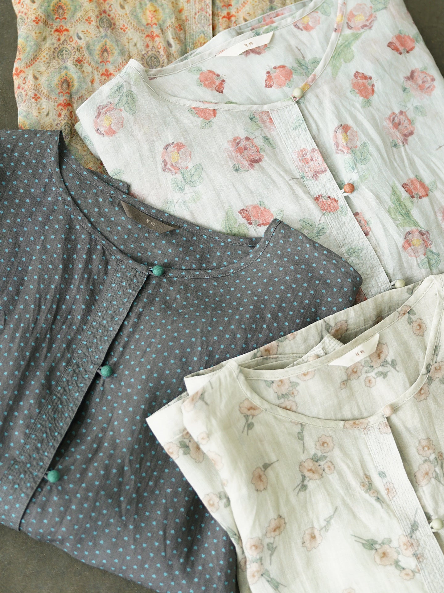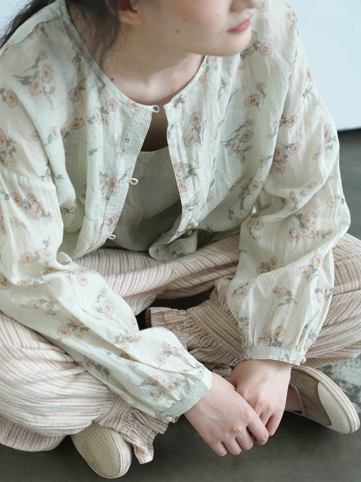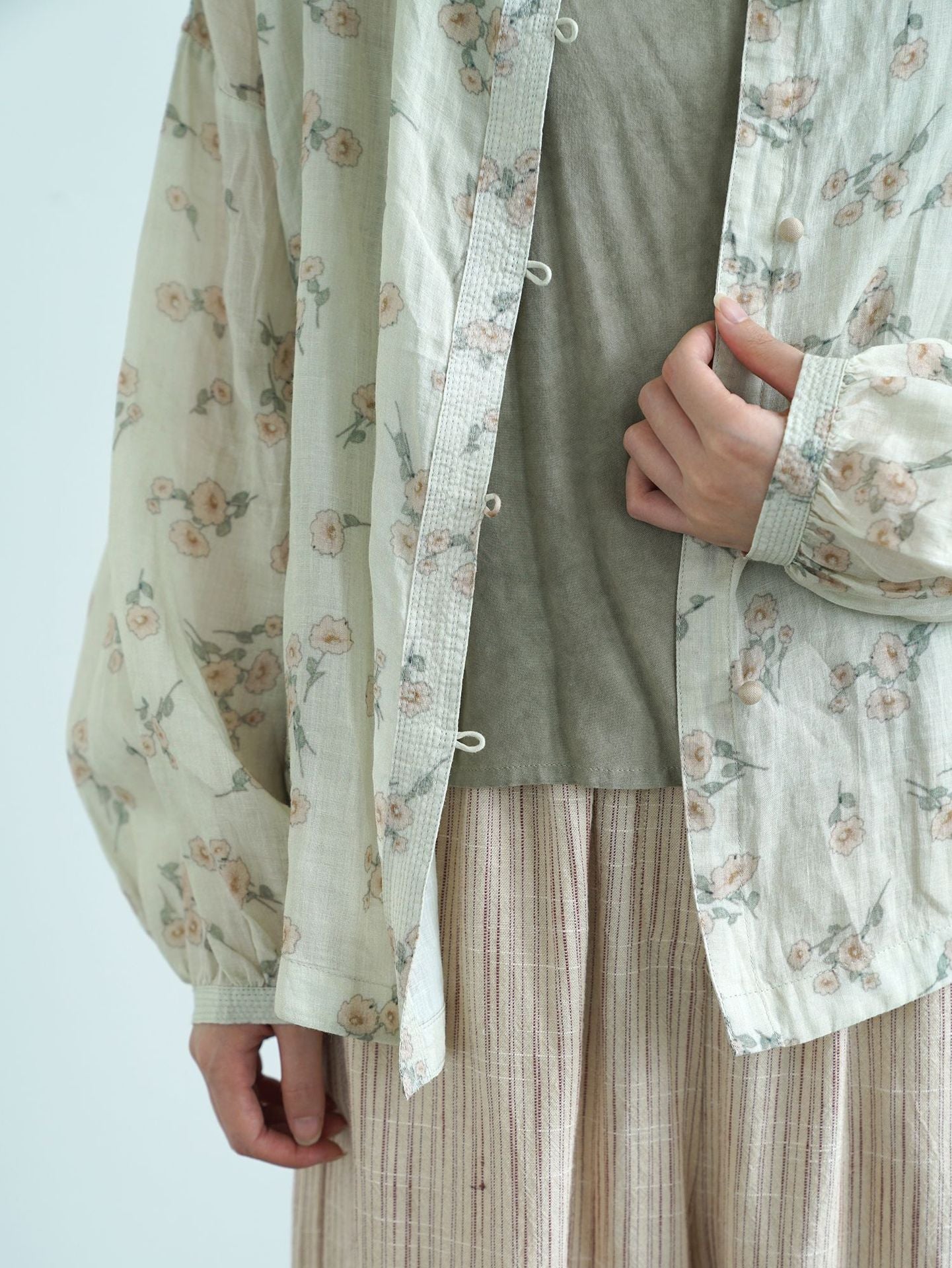4色展開◇絶妙な色味のボタニックプリント◇ラミー ゆったりブラウス シャツ◇