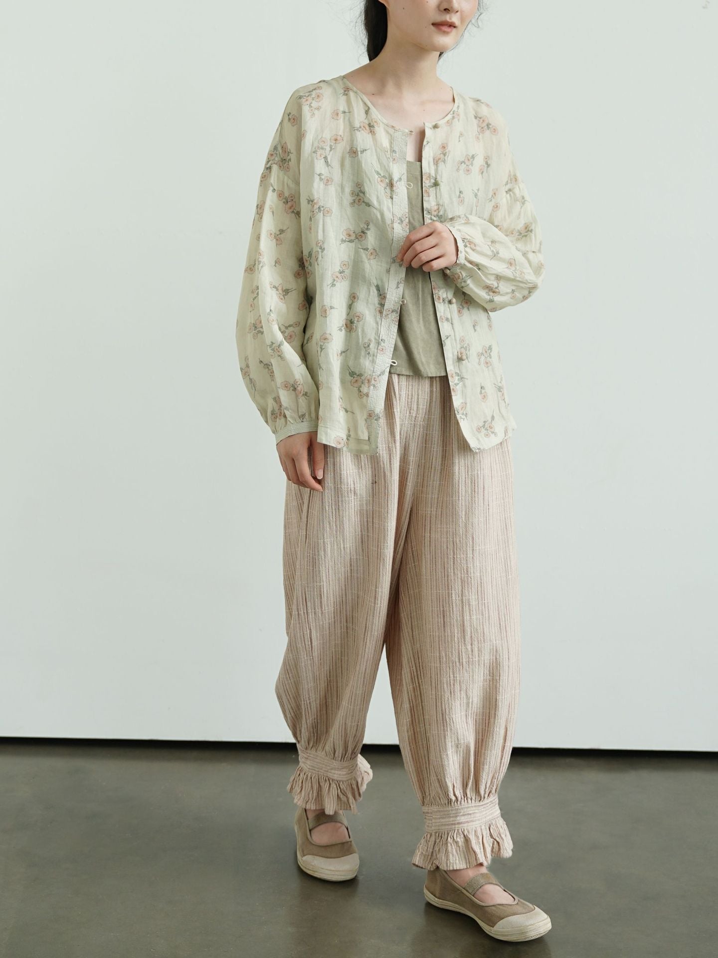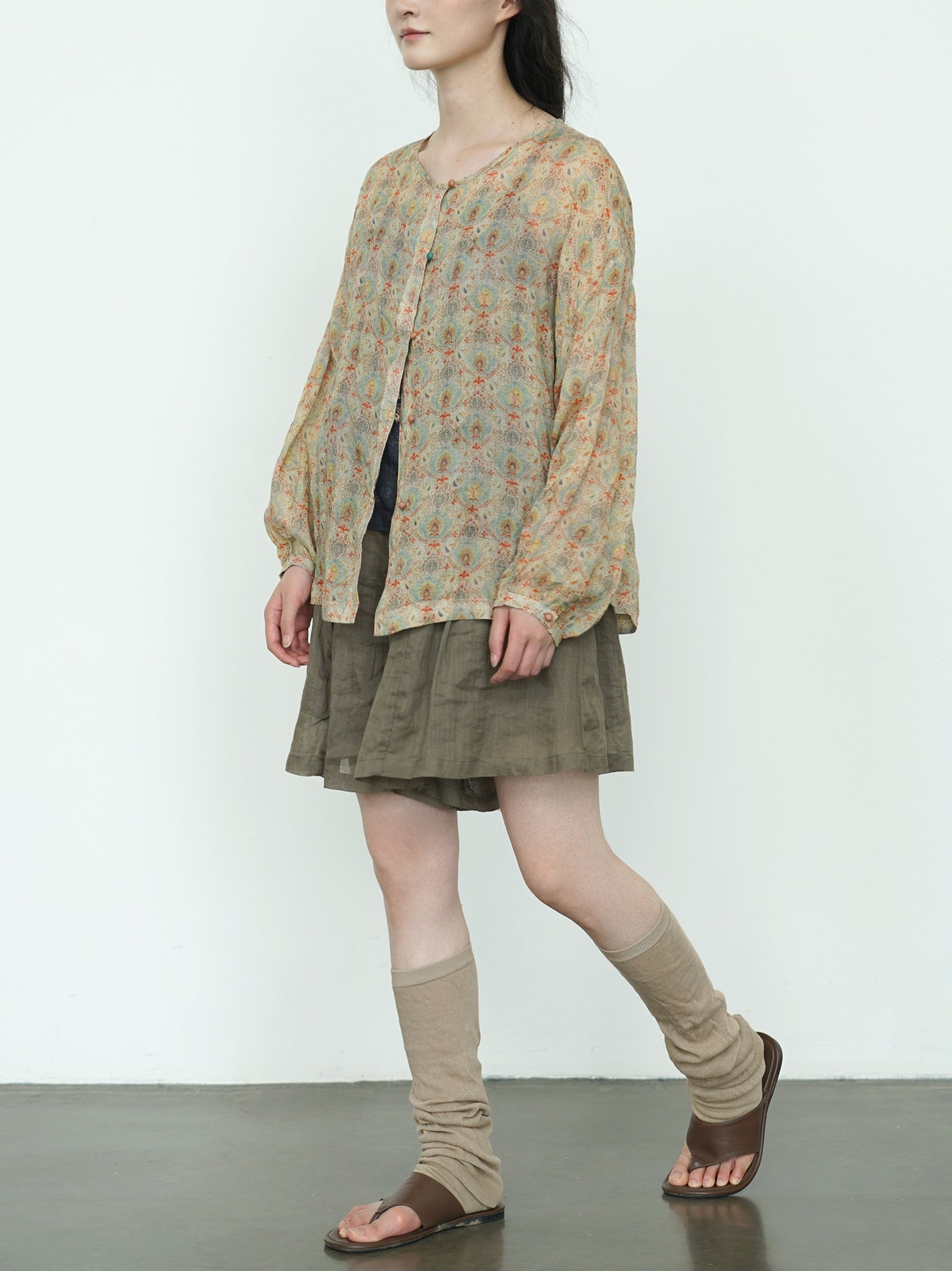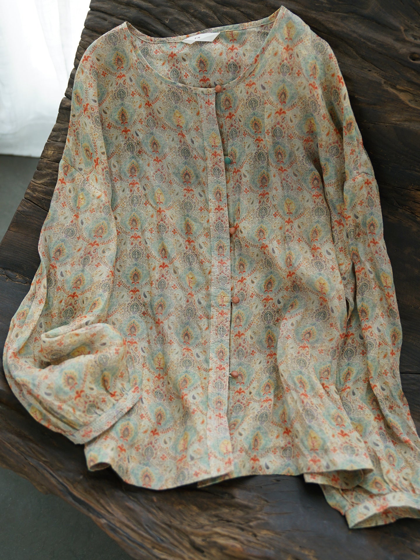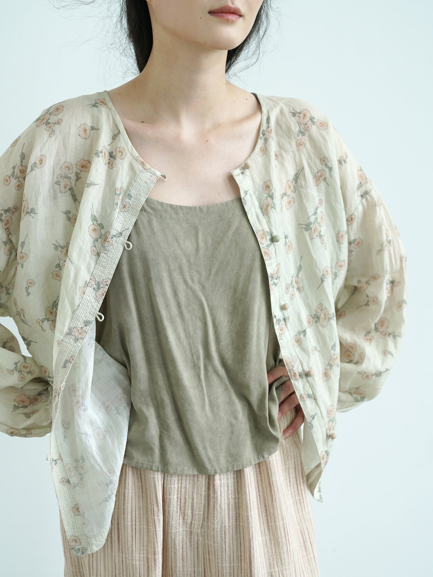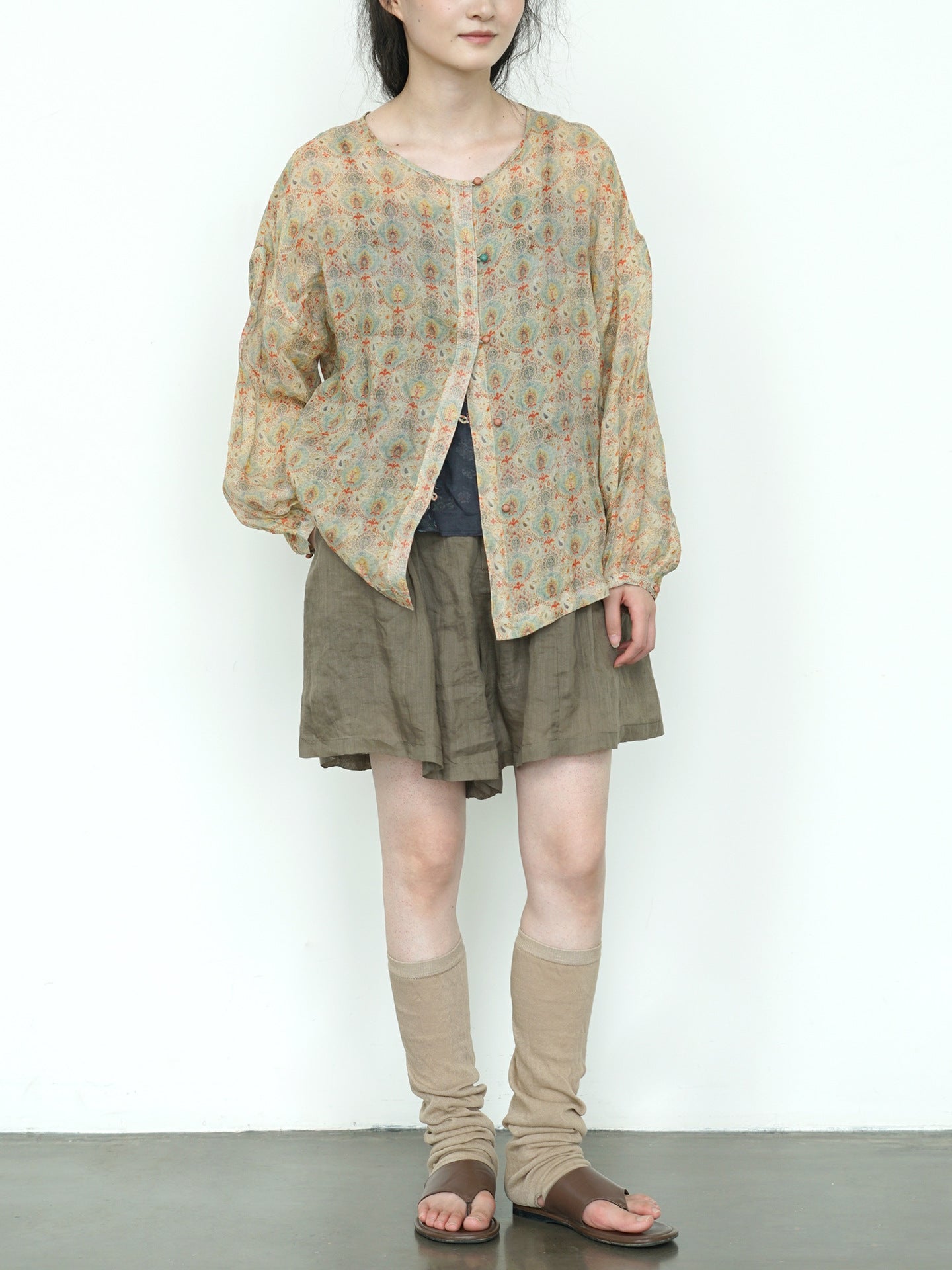 4色展開◇絶妙な色味のボタニックプリント◇ラミー ゆったりブラウス シャツ◇