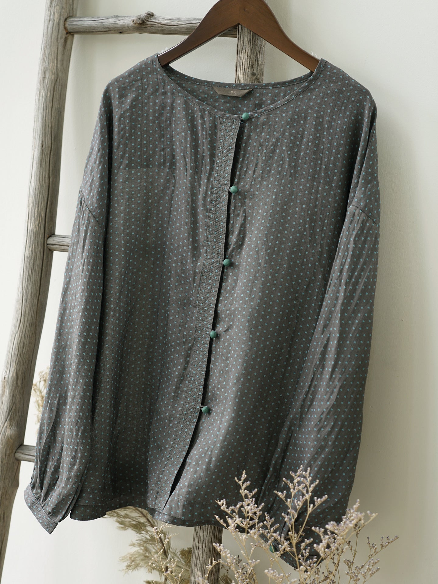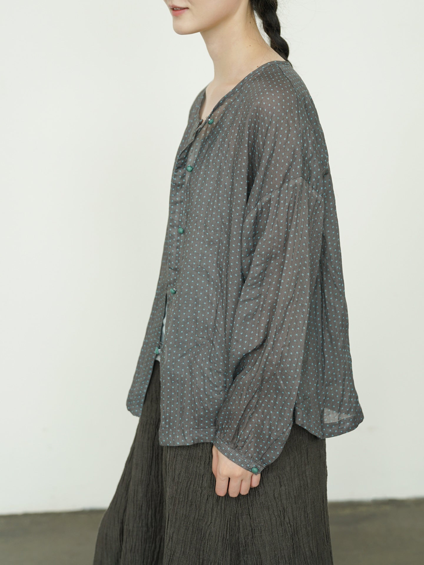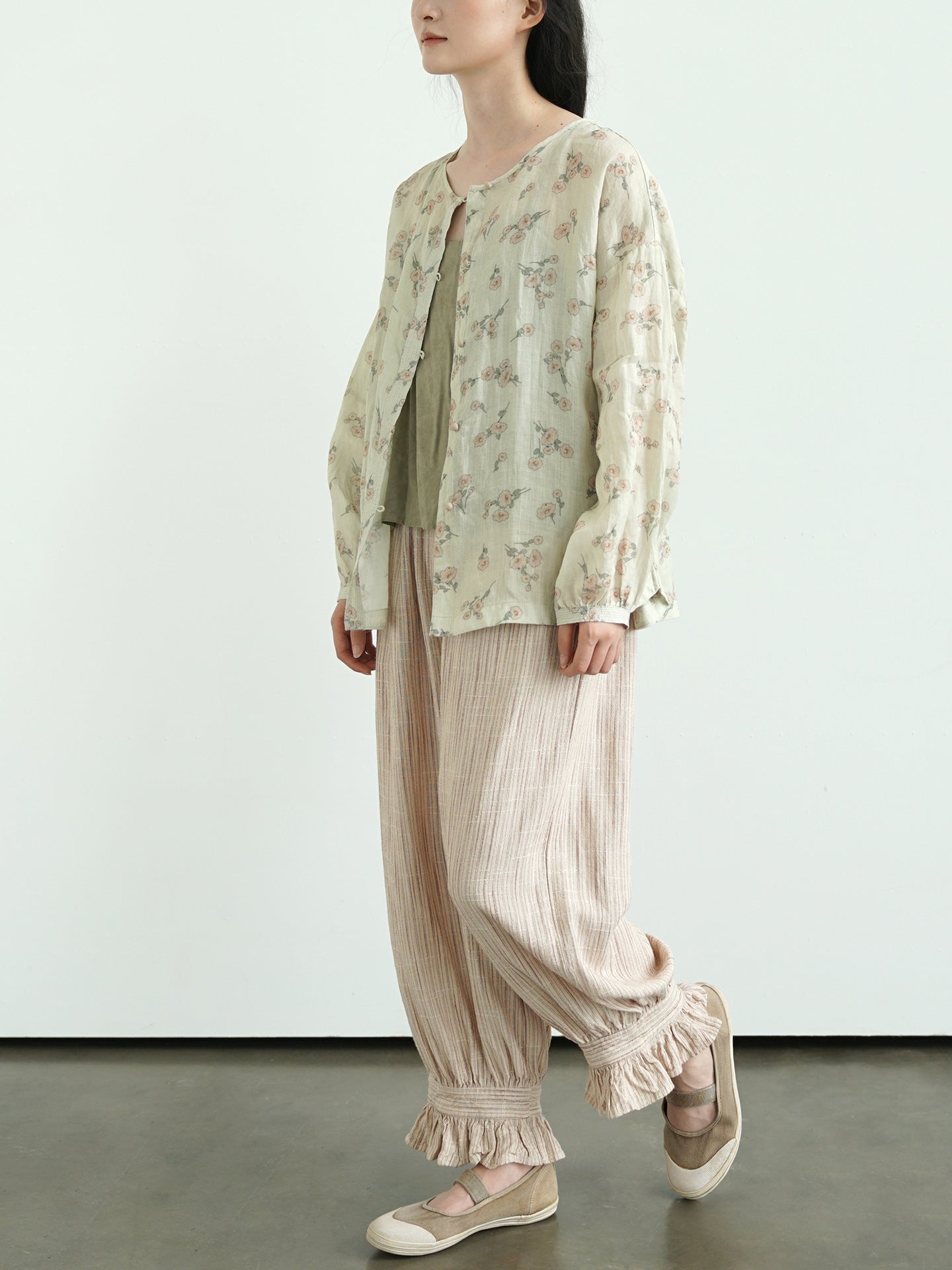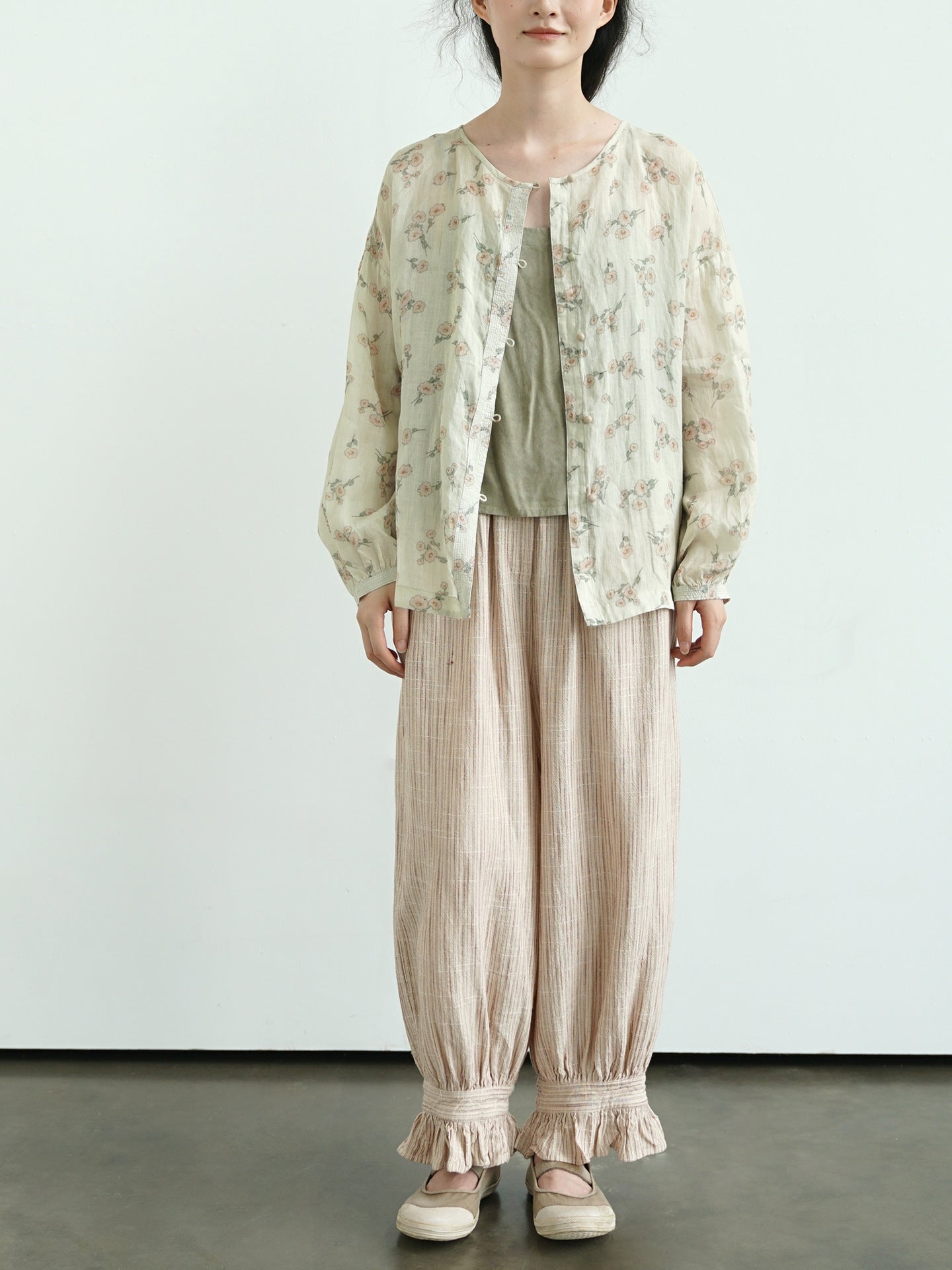 4色展開◇絶妙な色味のボタニックプリント◇ラミー ゆったりブラウス シャツ◇