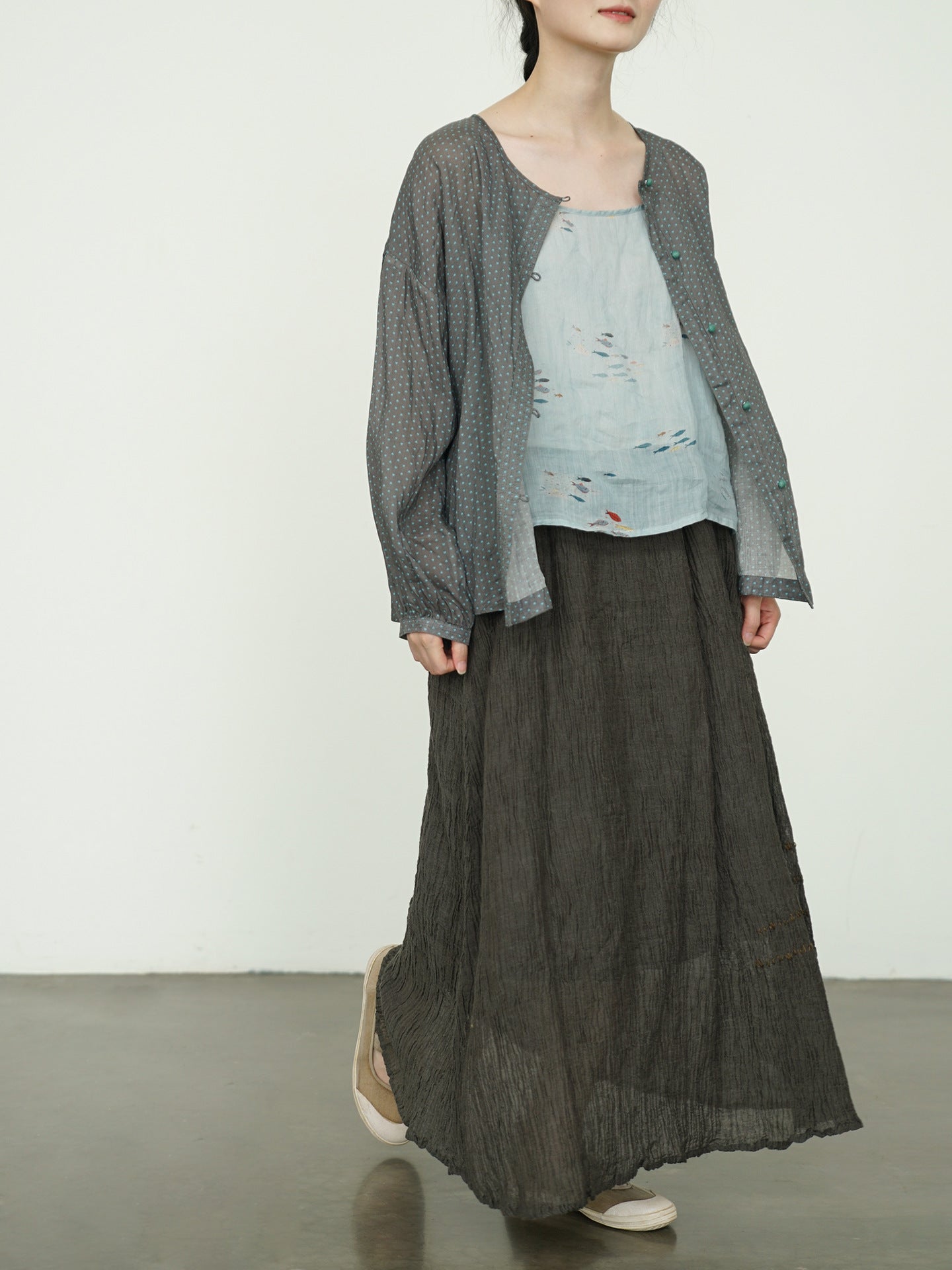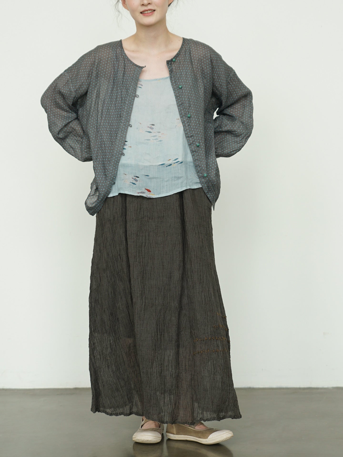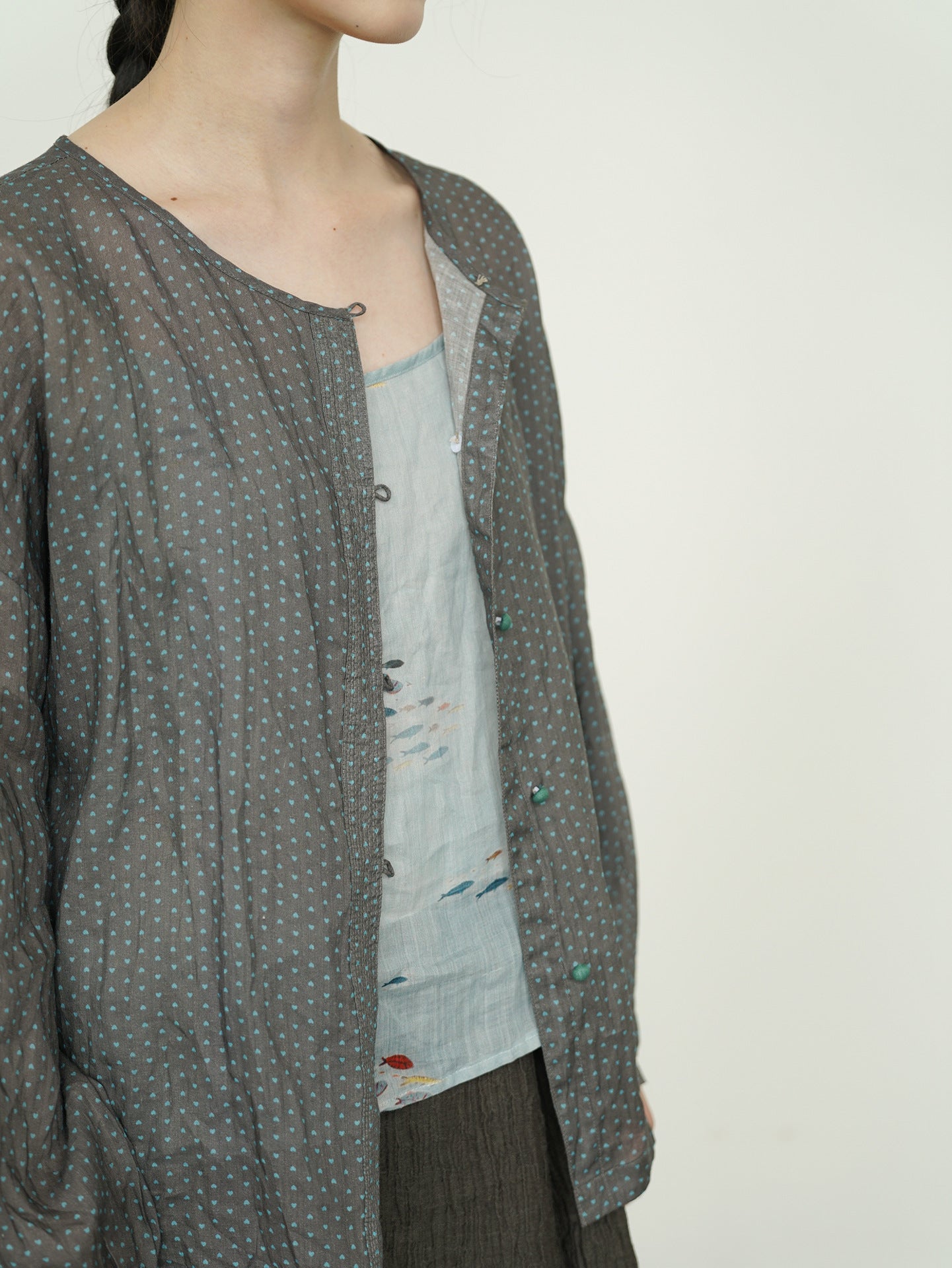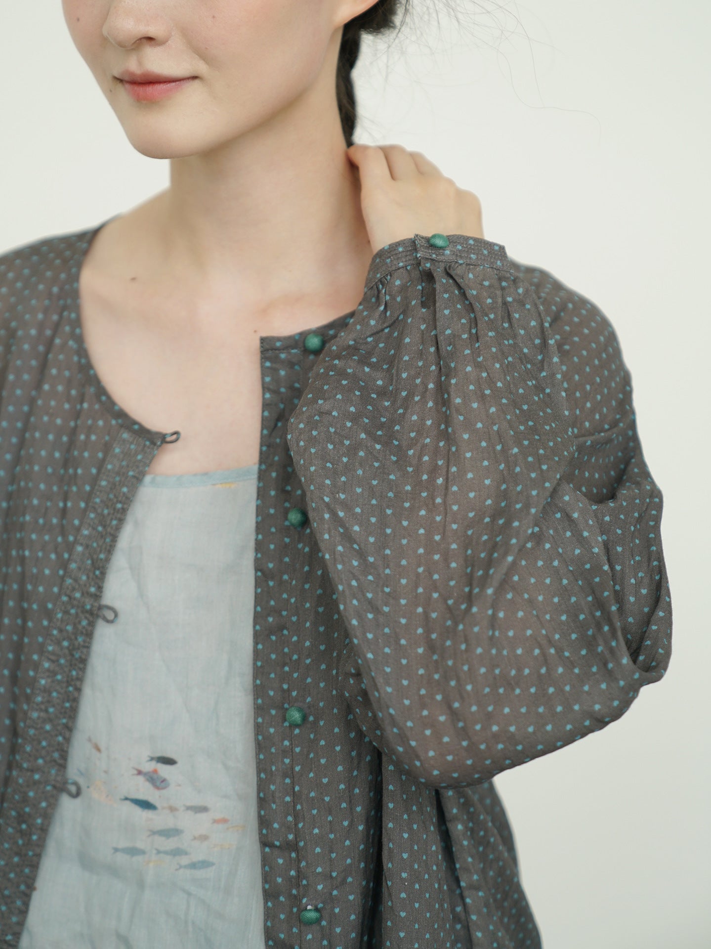 4色展開◇絶妙な色味のボタニックプリント◇ラミー ゆったりブラウス シャツ◇